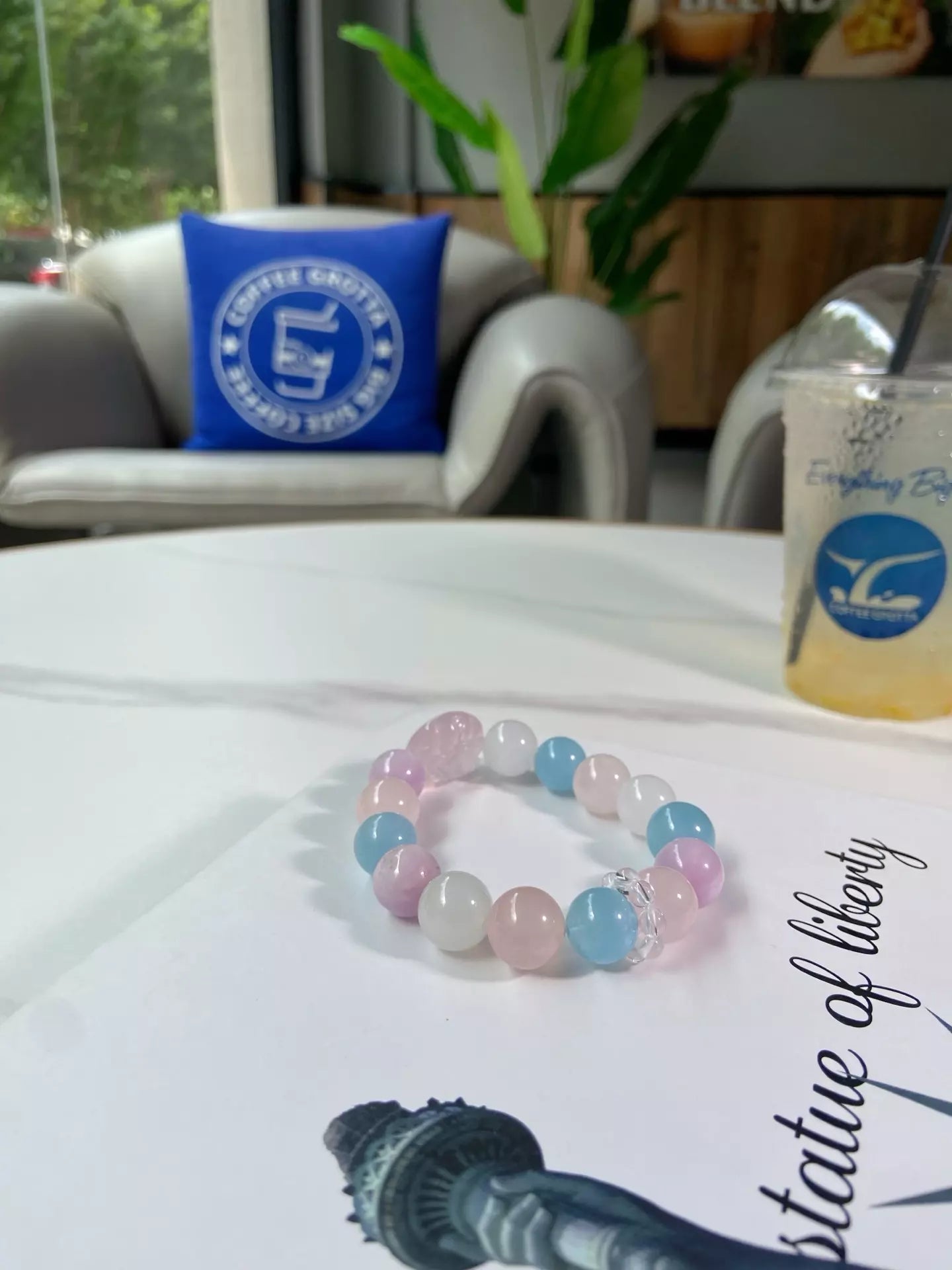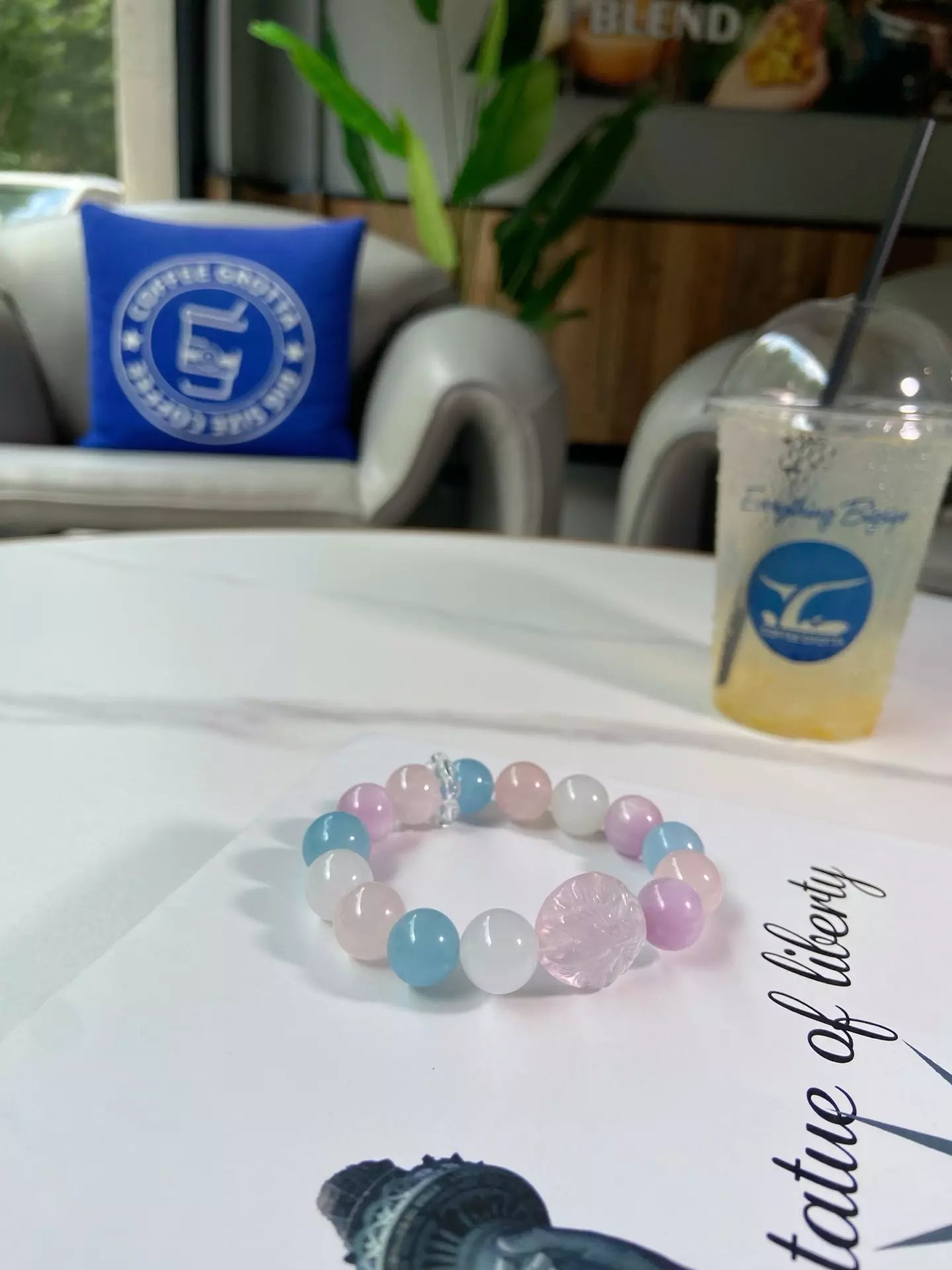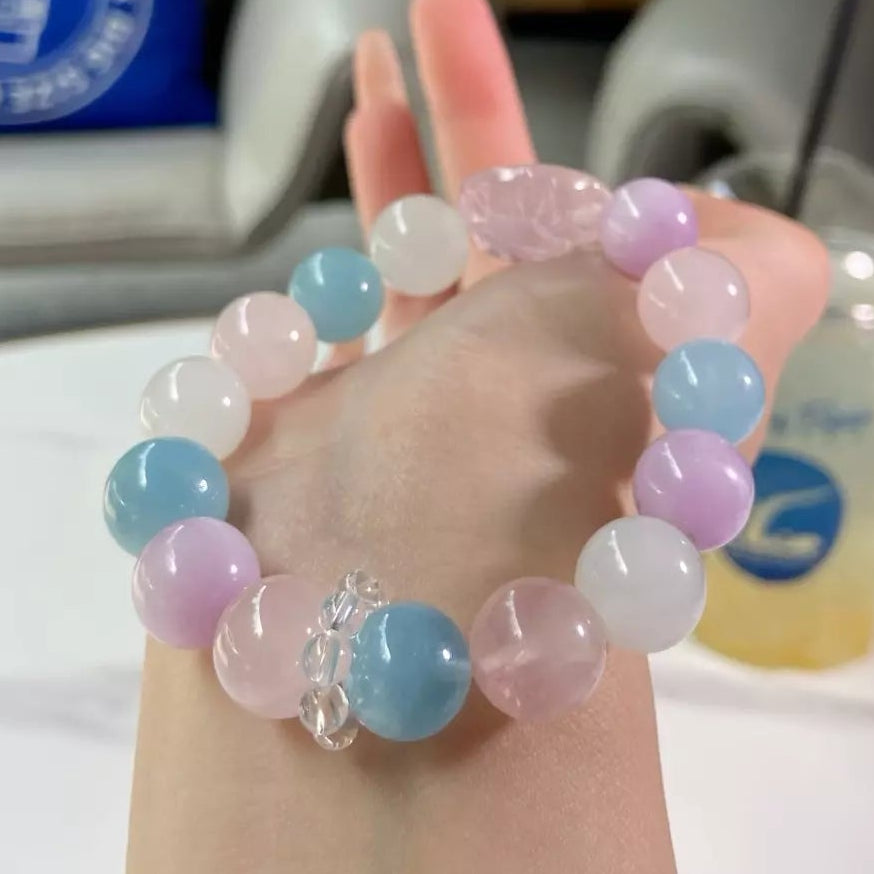 Experience profound healing with this serene crystal quartet🔮💙! Aquamarine’s calming blue offers safe protection🛡️ and eases discomfort, while Rose Quartz’s soft pink nurtures love, intimacy, and self-acceptance💖. White Phantom Quartz purifies energy with transparent clarity, and Kunzite amplifies confidence & gentle healing🤍. Blending white’s purity, pink’s warmth, blue’s tranquility, and crystal brightness, it shimmers like a deep, healing gaze—soothing, empowering, and transformative. Wear daily to feel protected, confident, and deeply connected to love & inner peace💎✨!