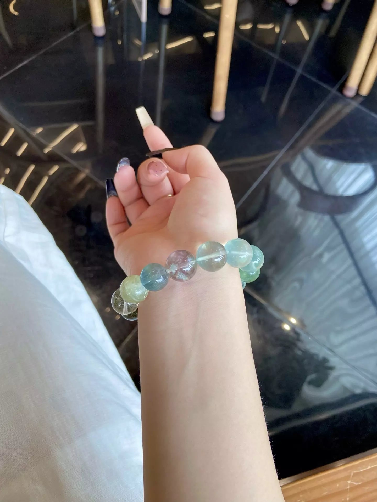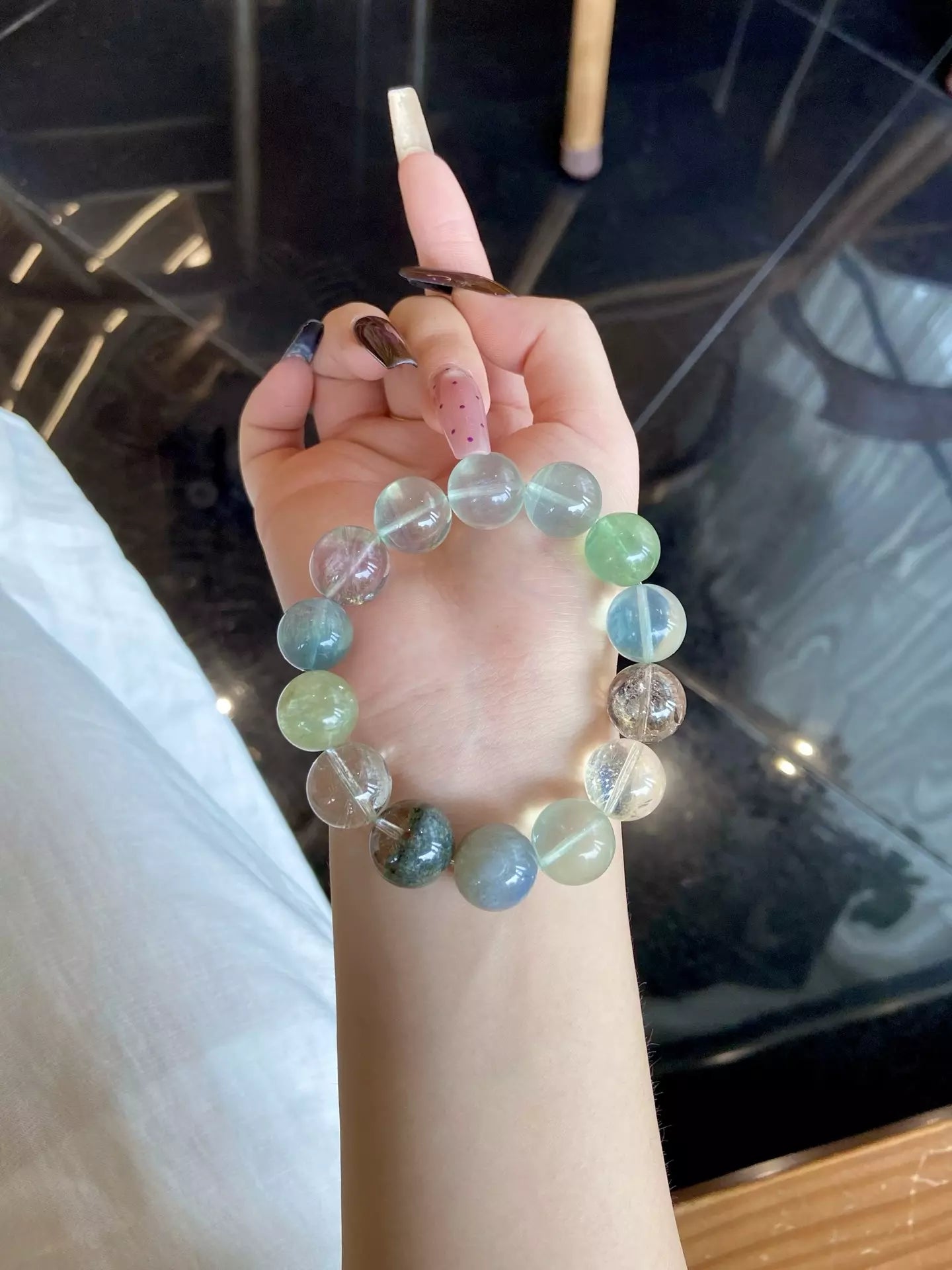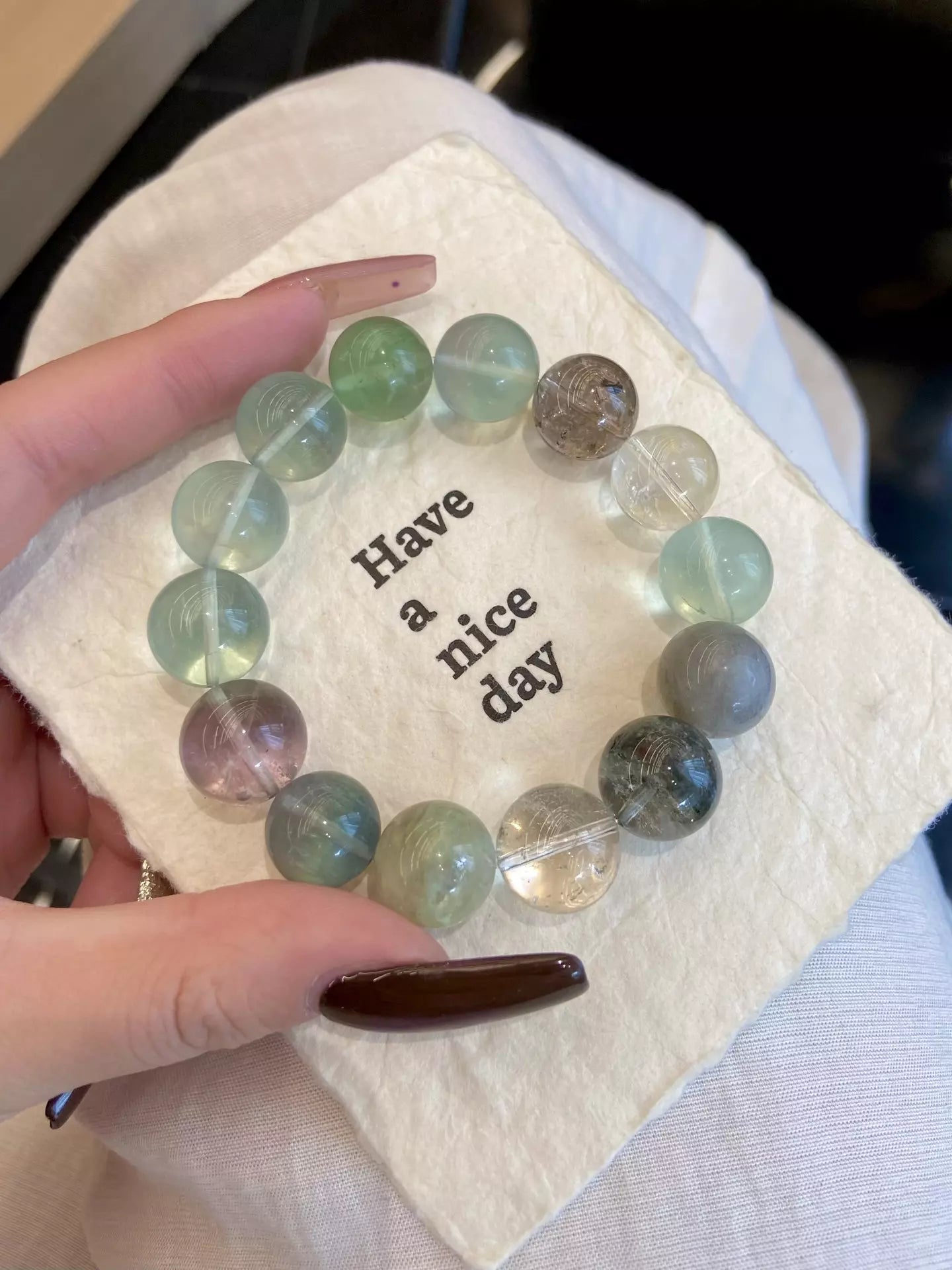 Immerse in serene crystal tranquility💎! Green Fluorite & Green Phantom Quartz💚🌿 purify messy vibes and harmonize your space. Smoky Aztec Gold Quartz🪵 shields from stress, Gray Moonstone🌙 calms restless emotions. Yellow Rutilated Quartz☀️ infuses gentle positivity, Rainbow Fluorite🌈 adds cheerful balance. This earthy blend wraps you in calm—wear daily to stay grounded, balanced, and free from overwhelm amid chaos🌟!
