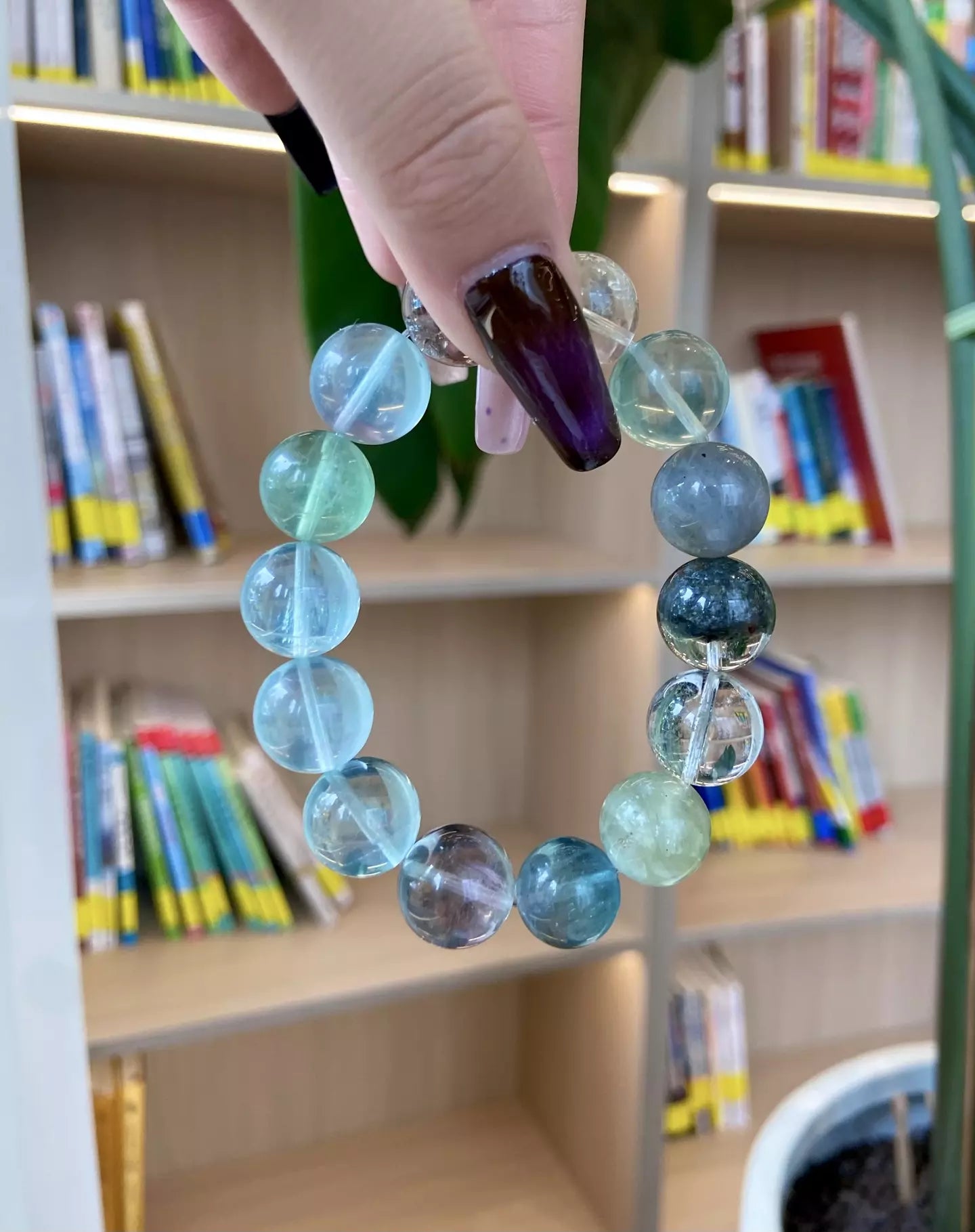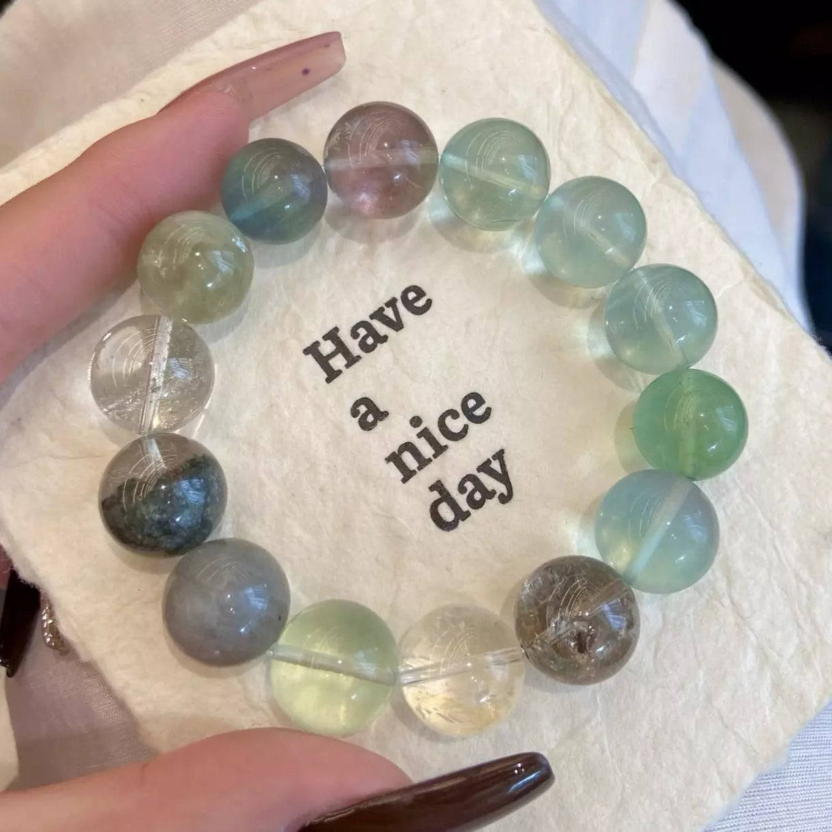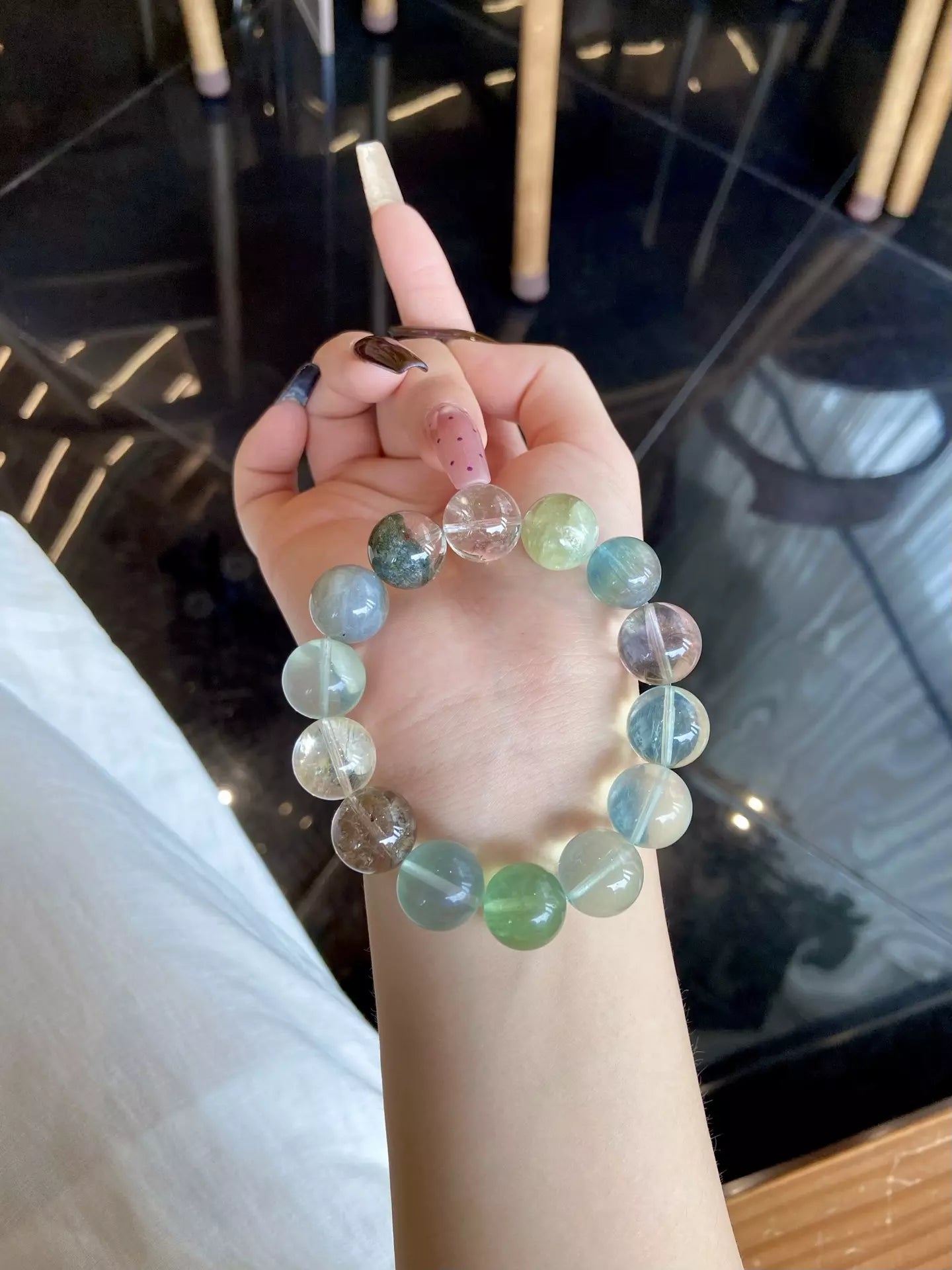 Immerse in serene crystal tranquility💎! Green Fluorite & Green Phantom Quartz💚🌿 purify messy vibes and harmonize your space. Smoky Aztec Gold Quartz🪵 shields from stress, Gray Moonstone🌙 calms restless emotions. Yellow Rutilated Quartz☀️ infuses gentle positivity, Rainbow Fluorite🌈 adds cheerful balance. This earthy blend wraps you in calm—wear daily to stay grounded, balanced, and free from overwhelm amid chaos🌟!