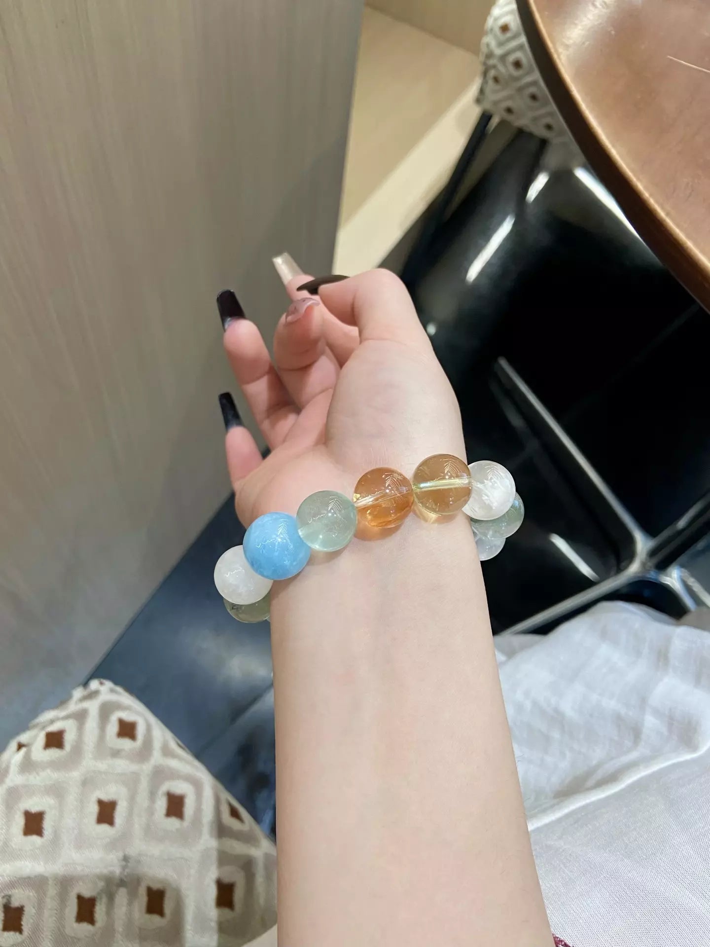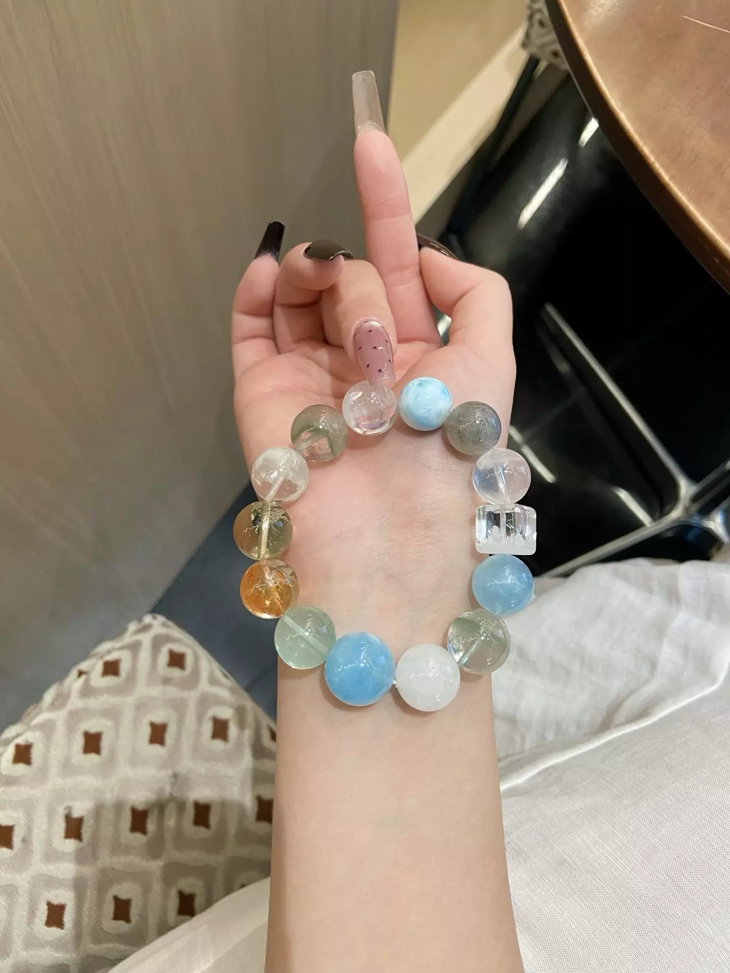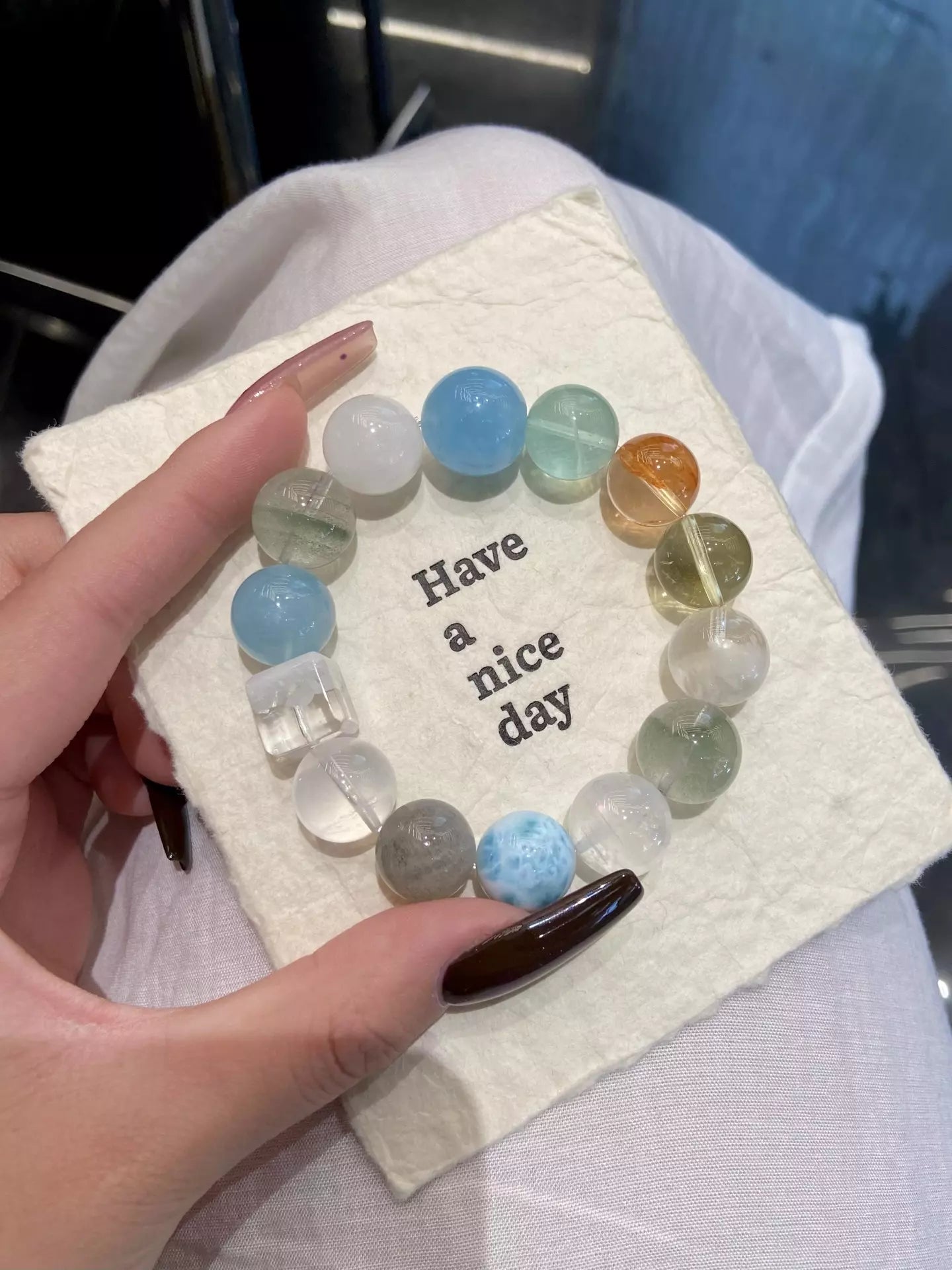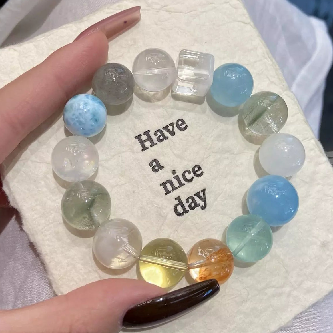 Dive into a vibrant crystal wonderland💎🌈! Aquamarine + Green Fluorite soothe the mind for holistic wellness😌, while Milky White Quartz + Snow Phantom Quartz nurture skin for a radiant glow✨. Citrine boosts vitality⚡, Red Rutilated Quartz ignites energy❤️, and Green/White Phantom Quartz purify negative vibes🧹. Gray Moonstone calms mood, Larimar adds serenity—all blended in vivid multicolor hues. Wear daily to embrace wellness, beauty, and joyful energy!