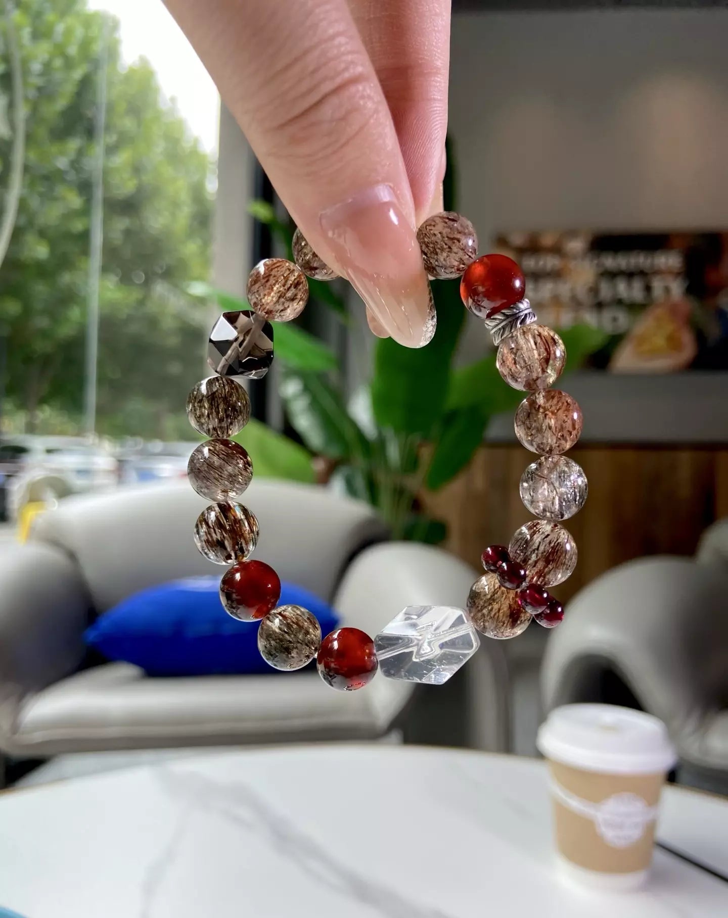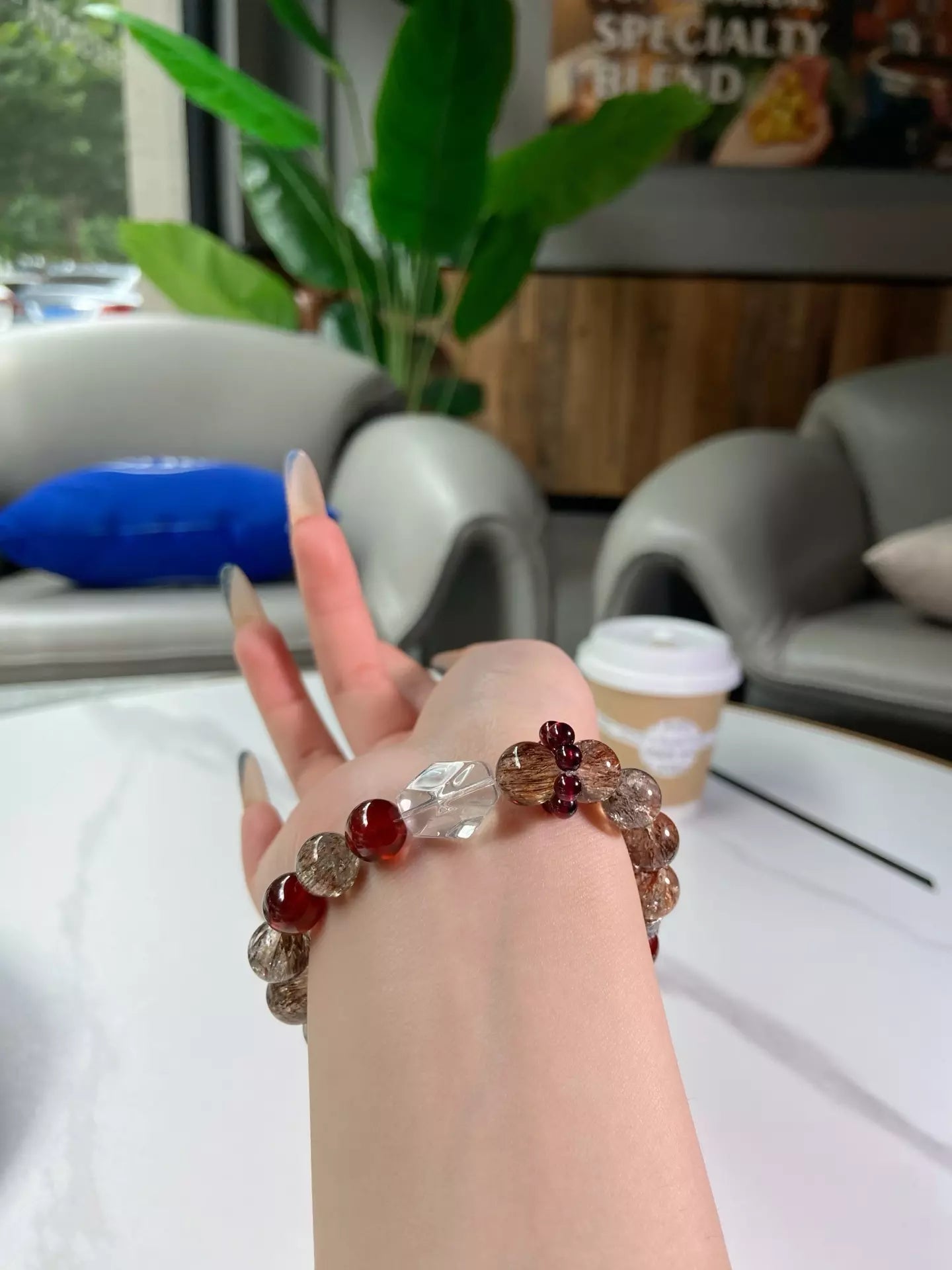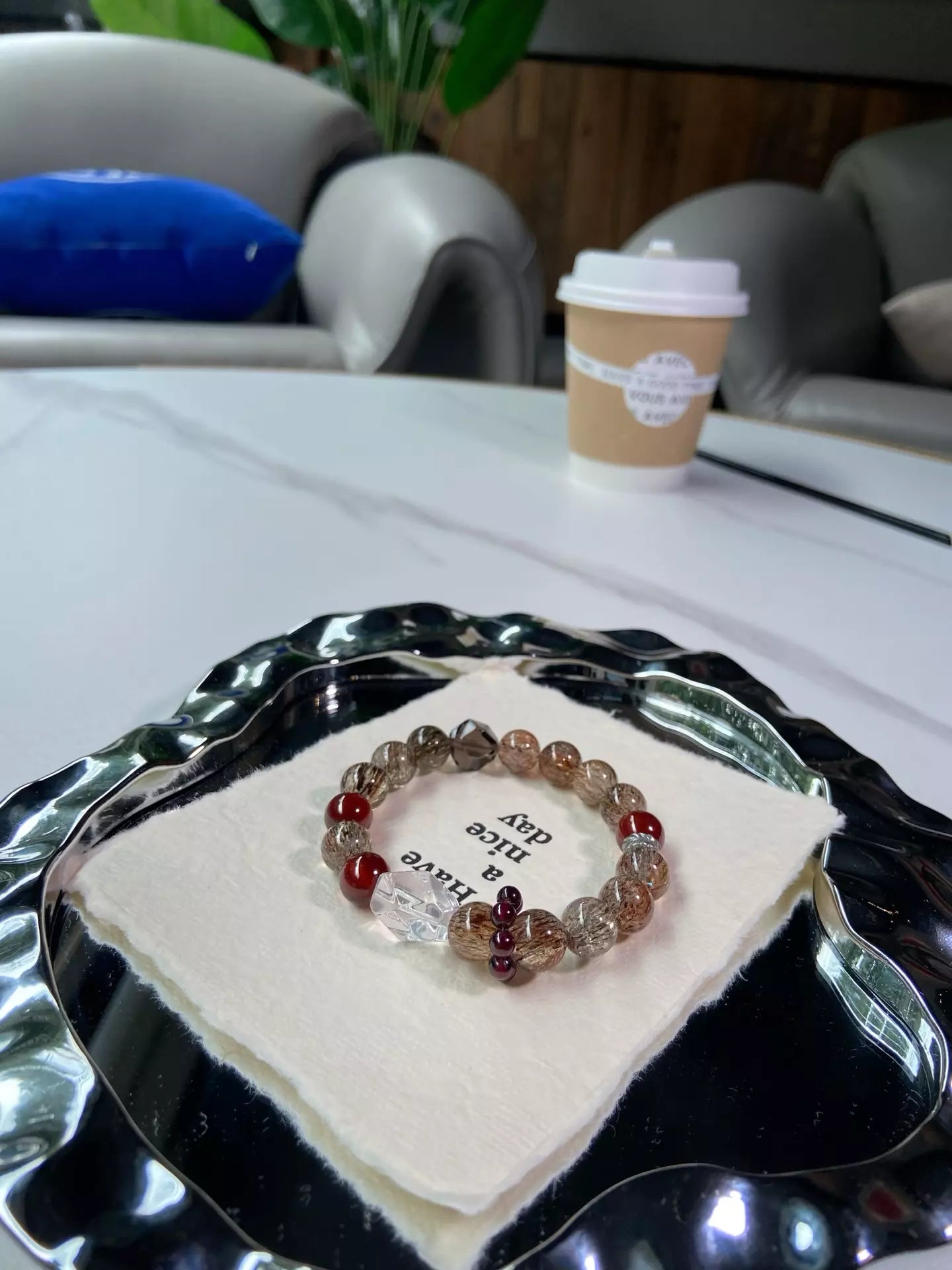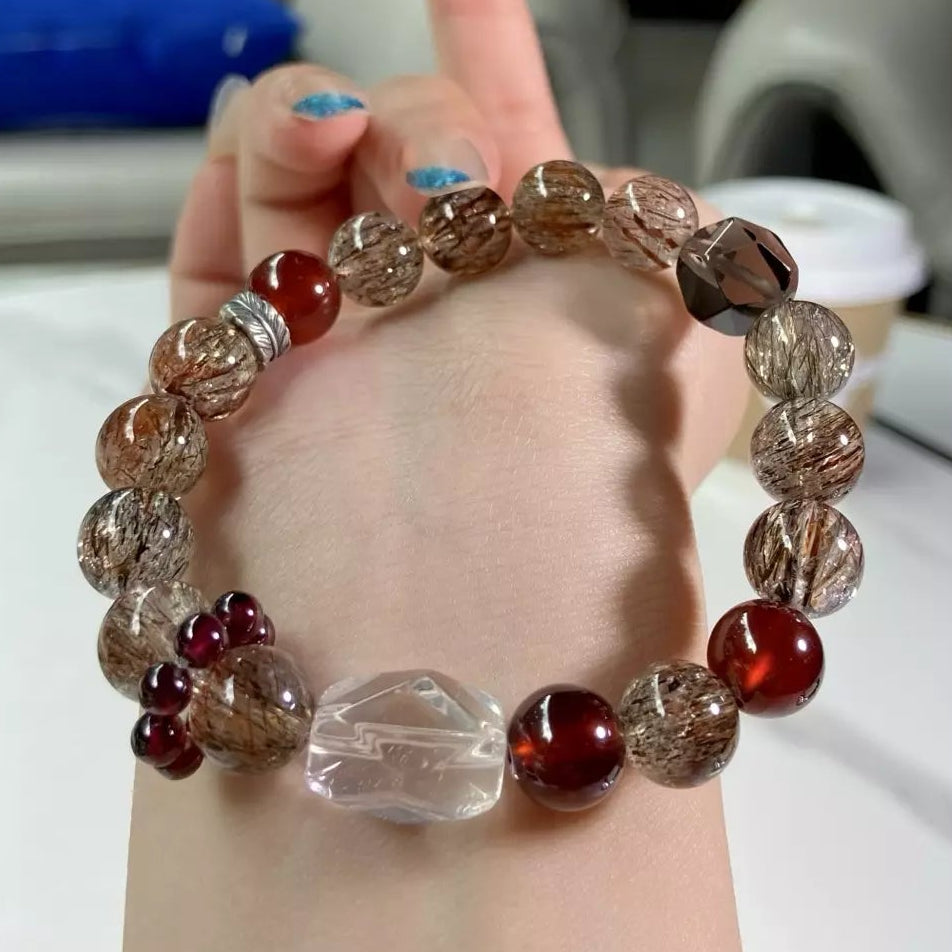 Immerse in the powerful, revitalizing energy of this crystal duo💎! Black Gold Super Seven boosts blood microcirculation 🩸, awakening your inner vitality to fight off tiredness. Garnet fires up your physical strength ⚡, calms fluctuating moods and helps you slip into deep, restful sleep 🌙. Its bold black-red-clear palette exudes mysterious charm—edgy and empowering. Wear daily to stay energized ✨, balanced and full of unstoppable vigor!