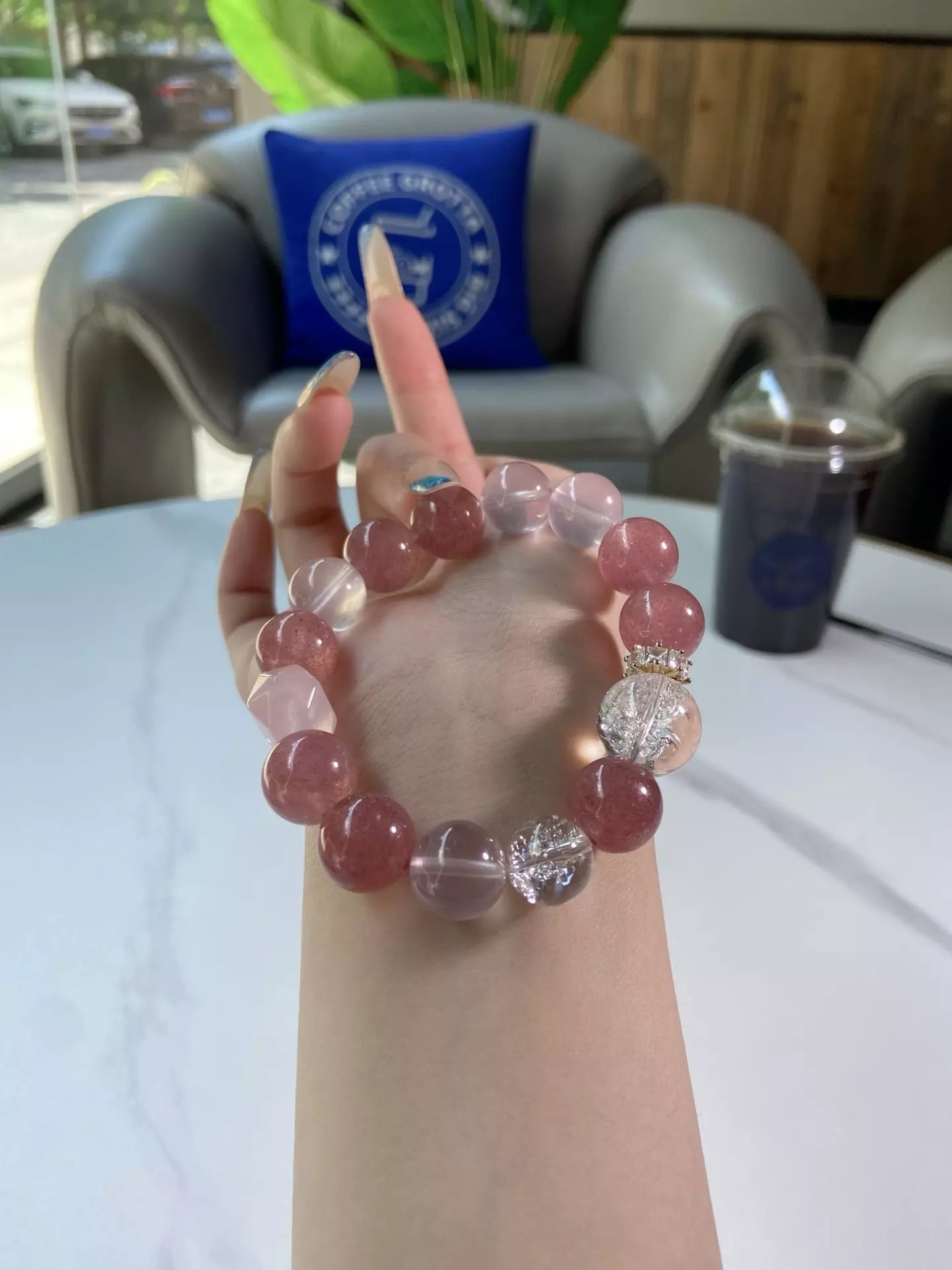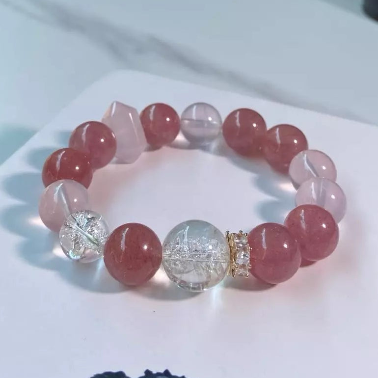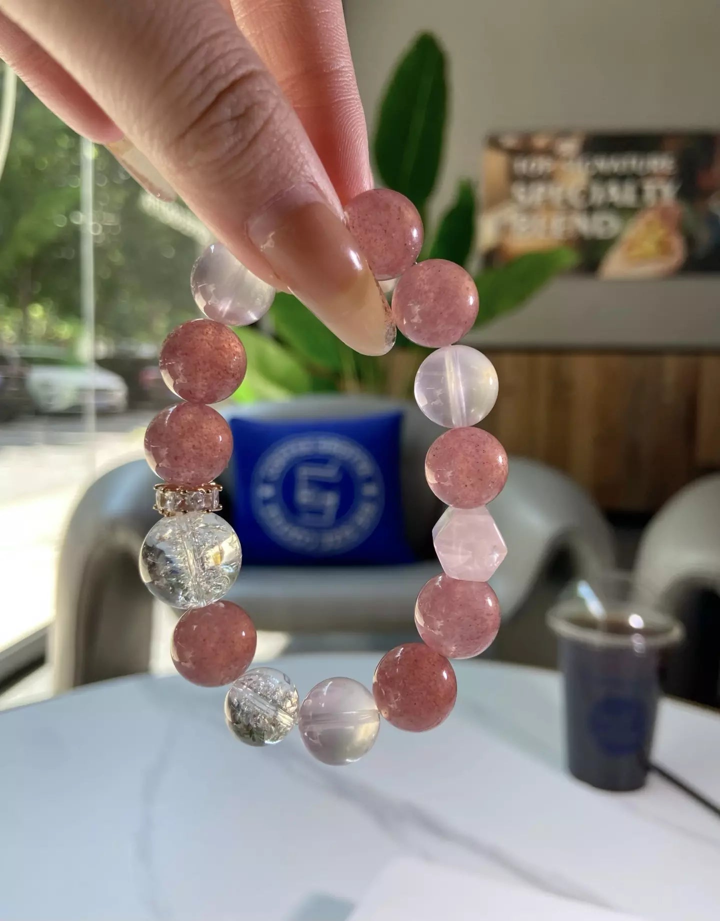 Immerse in the tender, healing energy of this bracelet💎✨! Rose Quartz wraps you in warm emotional care, mending inner unease and drawing sweet romance💞. Strawberry Quartz amplifies love luck and smooths interpersonal connections, while Himalayan Crystal purifies aura and boosts your confidence. Its soft pink-clear palette glows like cherry blossom dew, adding gentle charm to every look. Wear daily to embrace joyful vibes and harmonious relationships💫!