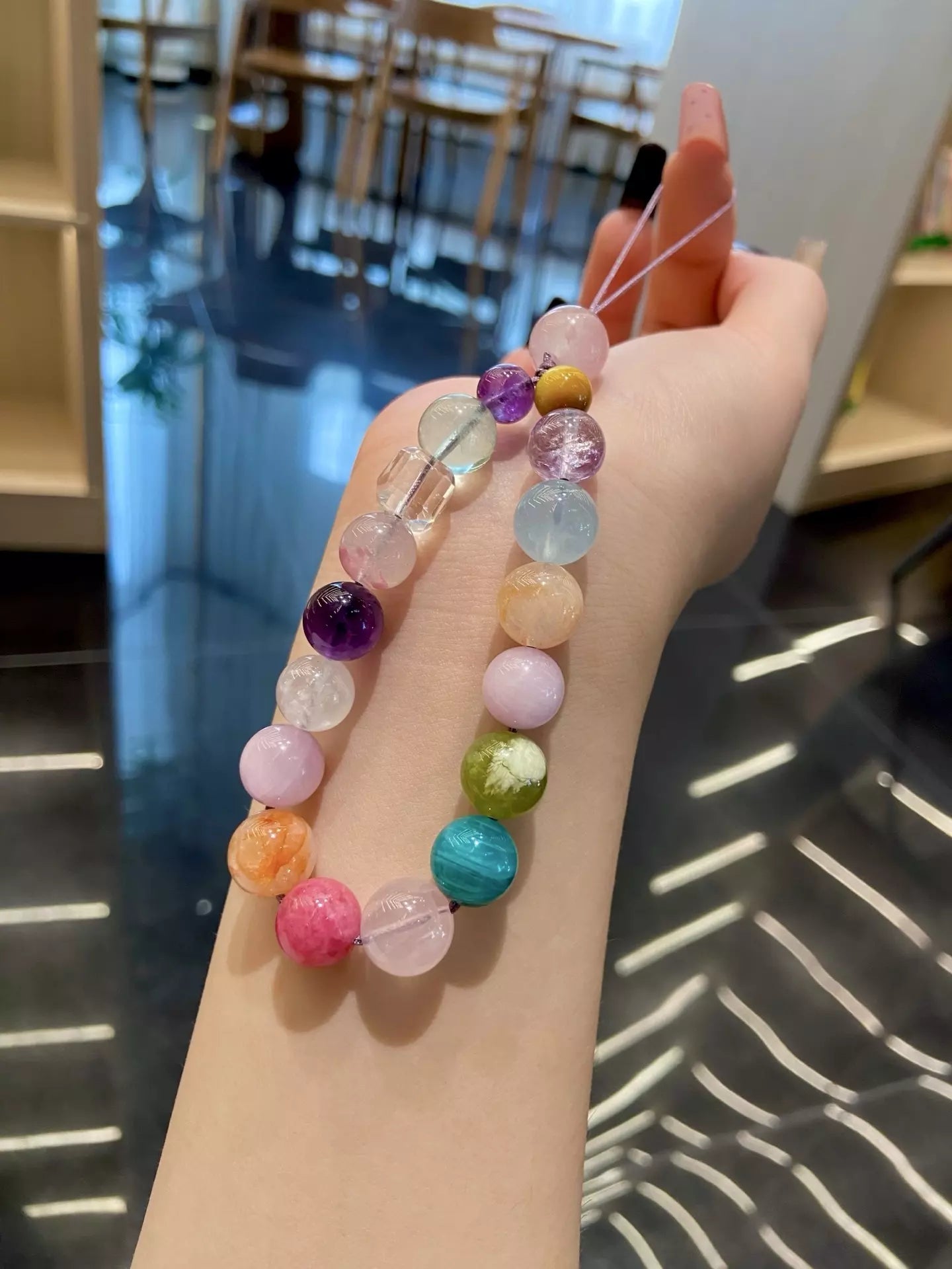 Dive into a rainbow of calming crystal energy💎! Amethyst🔮 & Kunzite💜 soothe stress, while Rose Quartz💖 & Rhodonite🌸 nurture emotional warmth. Aquamarine💧 & Amazonite🌿 bring inner peace, Green Fluorite🍃 & Grape Quartz🍇 calm chaos, and Tiger Eye🟡 + Yellow Rutilated Quartz💛 balance moods. This vibrant multicolor blend wraps you in comfort—wear daily to stay centered, find spiritual harmony, and embrace gentle emotional healing with every glance🌟!
