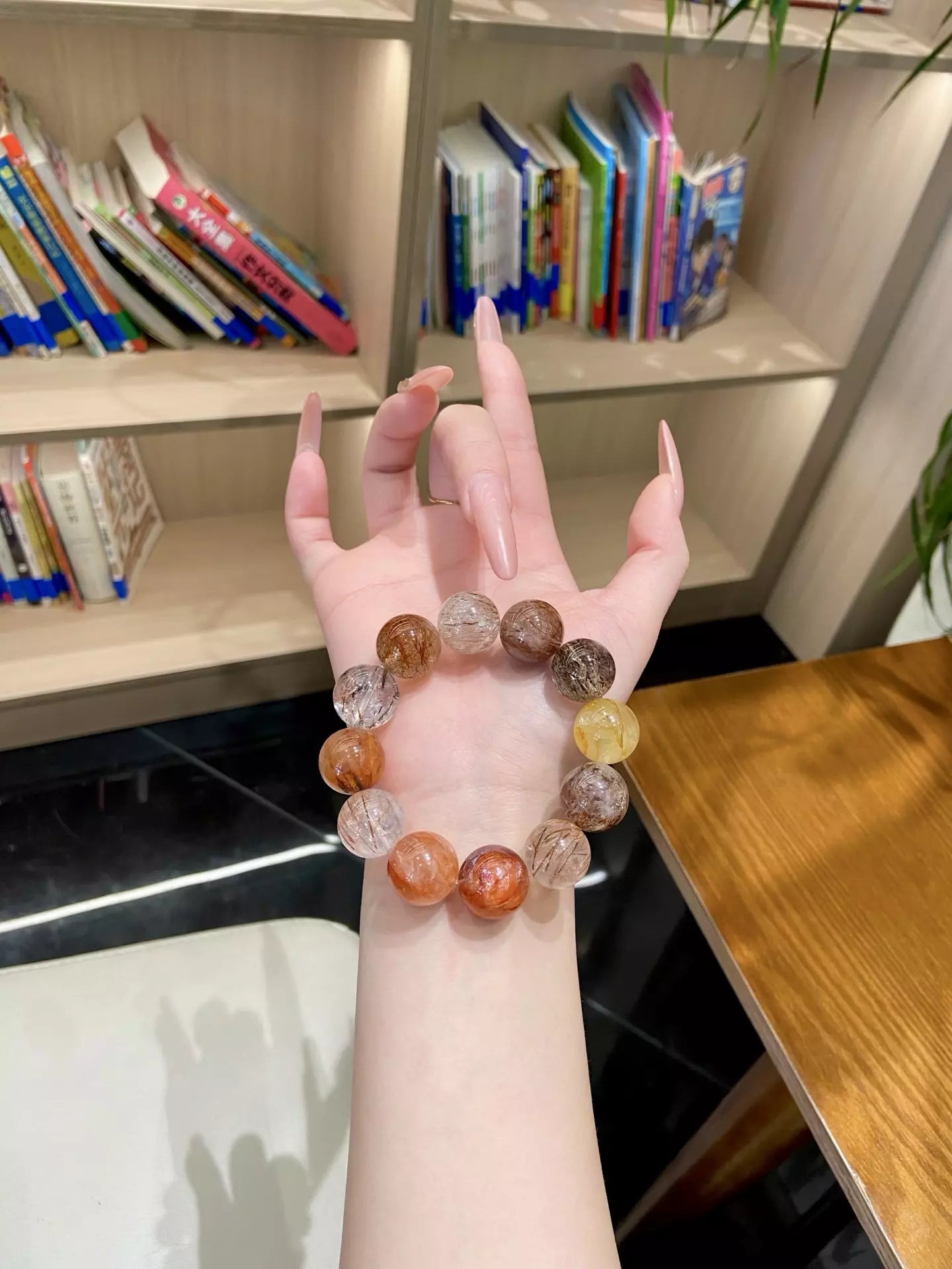 Immerse in the fiery, revitalizing energy of this bracelet💎🔥! Black Gold Super Seven soothes restless emotions and eases discomfort🤕, Red Rutile ignites inner vitality to shake off tiredness💪. Yellow Rutile calms your mind for sounder sleep😴, while the clear accents enhance energy flow. Its bold red-black-yellow palette blazes like the earth’s core—wear daily to embrace energy, comfort and restorative rest💫!