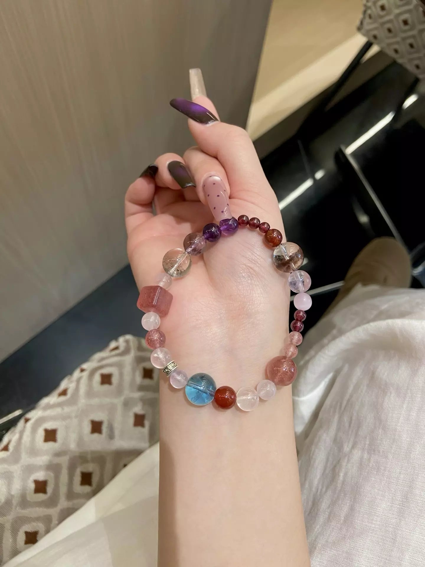 Ignite your heart’s fiery charm with this vibrant crystal blend💎! Garnet & Red Agate❤️🔴 fuel passion and courage, while Red Phantom Quartz🔥 amplifies heartfelt energy. Strawberry Quartz & Rose Quartz🍓💖 bloom with tender love and self-compassion. Green Fluorite & Green Phantom Quartz💚🌿 balance emotions and calm the mind, Amethyst🔮 adds spiritual depth. A vivid mix of warmth and harmony—wear daily to glow with passion, kindness, and magnetic energy that draws joy and connection🌟!