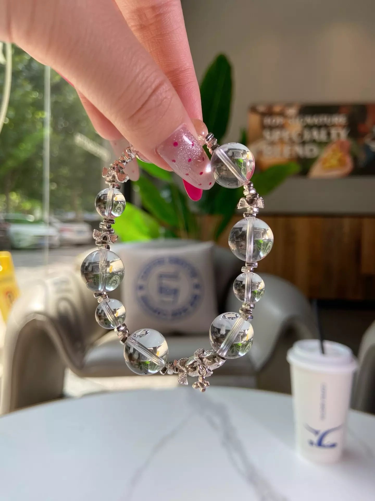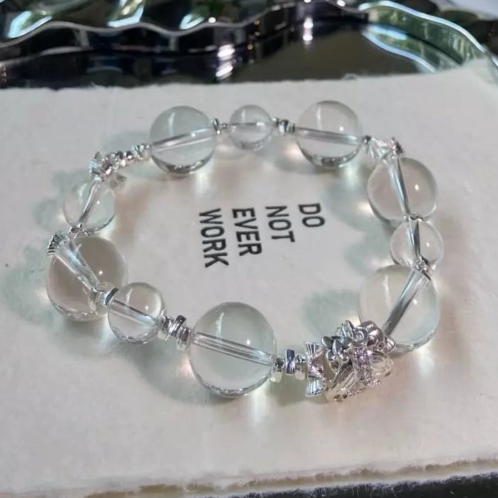 Immerse in the pure, clarifying energy of this bracelet💎🔮! Clear Quartz sharpens your focus and memory effectively🧠, wipes out negative vibes and balances fluctuating emotions smoothly😌. It nurtures overall wellness and fosters harmonious relationships with others. Its crystal-clear appearance glows like a flawless ice cube—wear daily to embrace clarity, peace and positive connections with people around you✨!
