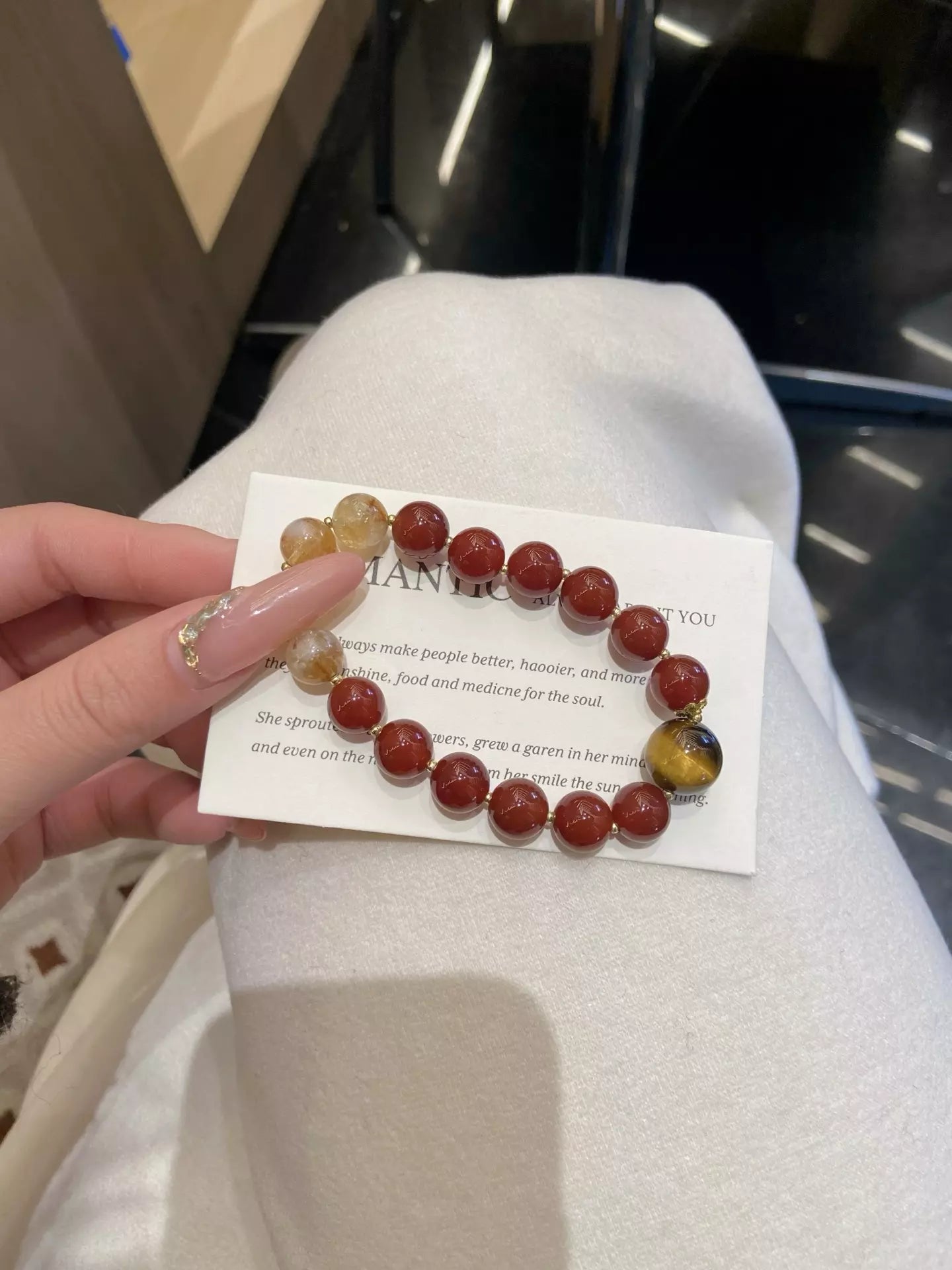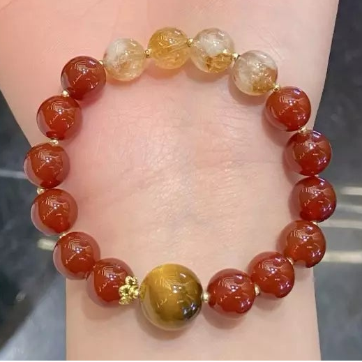 Immerse in the prosperous, uplifting energy of this bracelet💎✨! Golden Tower Quartz & Yellow Tiger’s Eye draw in wealth luck and fuel wisdom for academic goals📚. Red Agate stabilizes fluctuating moods, melts away stress and amplifies inner confidence💪. Its vibrant red-yellow palette shines like a lucky charm for fortune—wear daily to embrace prosperity, focus and fearless vitality💫!