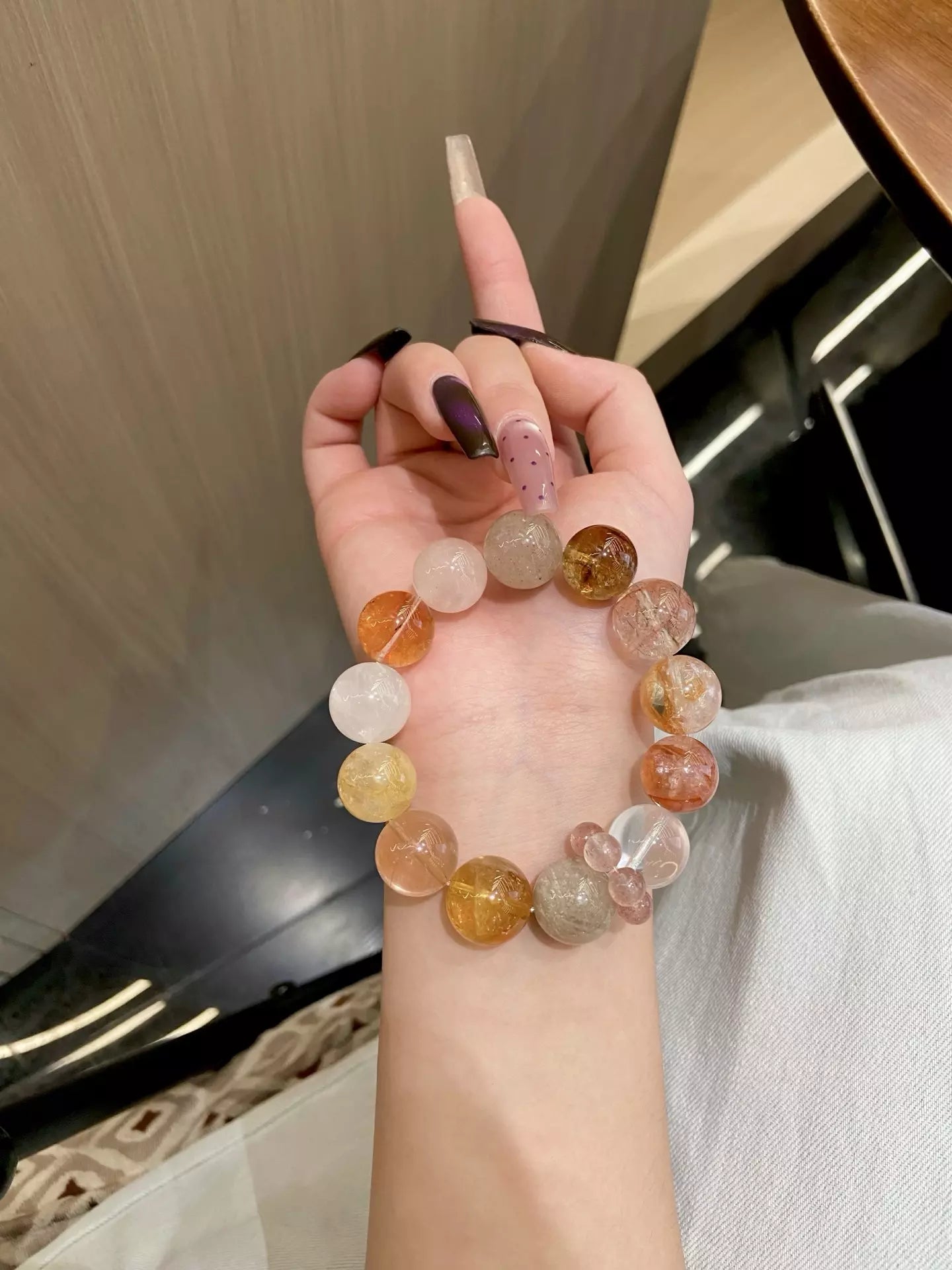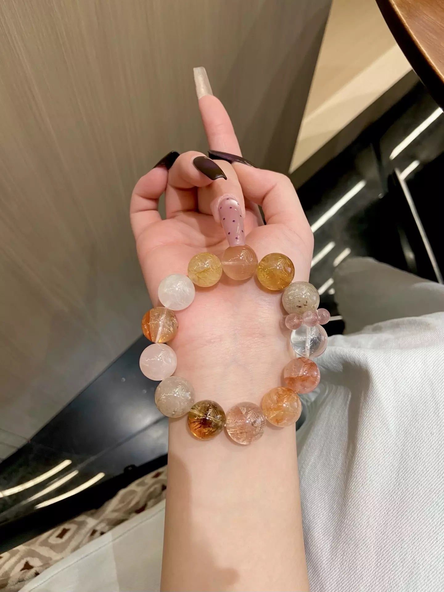 Elements: Red Rutilated Quartz❤️, White Phantom Quartz👻, Yellow Rutilated Quartz💛, Layered Phantom Quartz🌌, Yellow Tower Quartz🏮, Milky White Quartz🥛, Rose Quartz💖, Black Gold Obsidian⚫️, Red Hair Crystal🔥