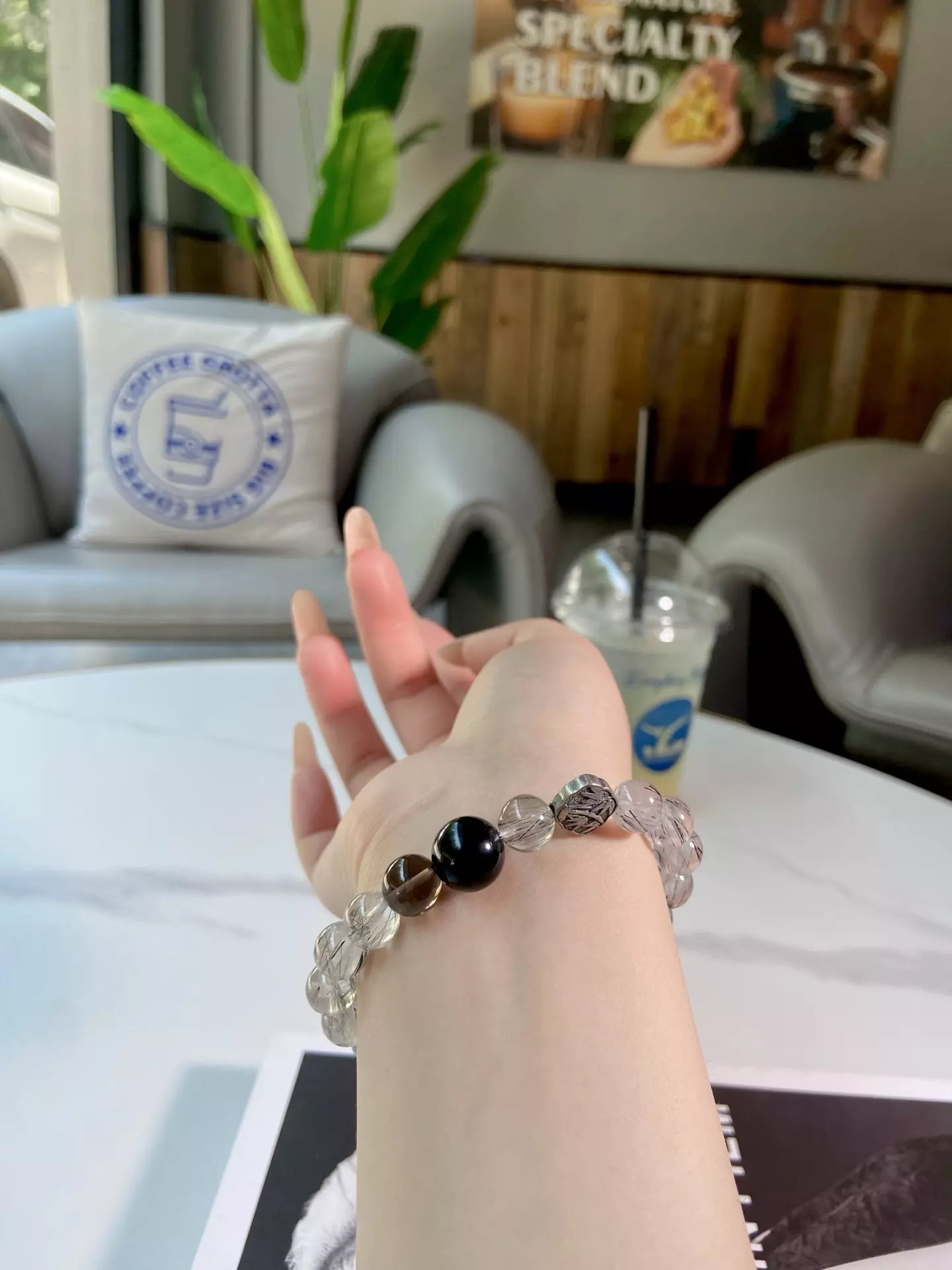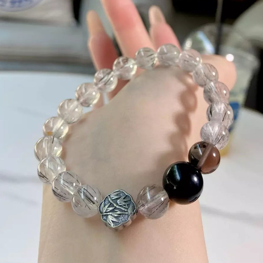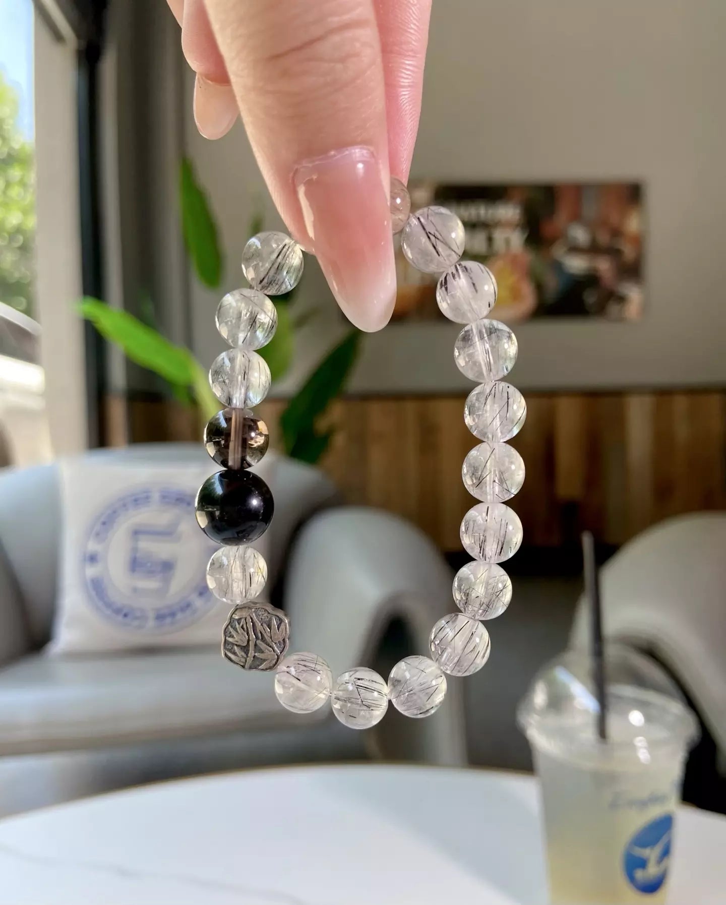 Embrace the mysterious power of Deep as the Night🌙🖤! Black Tourmaline acts as a protective shield🛡️, warding off evil and negative vibes. Smoky Quartz supports physical health🌿 and relieves stress, calming the mind😌. Silver Sheen Obsidian boosts leadership qualities👑 and elevates your natural temperament✨. The blend of sleek black and subtle transparent hues exudes understated elegance and strength—perfect for those seeking confidence and balance. Wear daily to stay grounded, protected, and radiate a charismatic, authoritative aura that shines like starlight in the night✨!