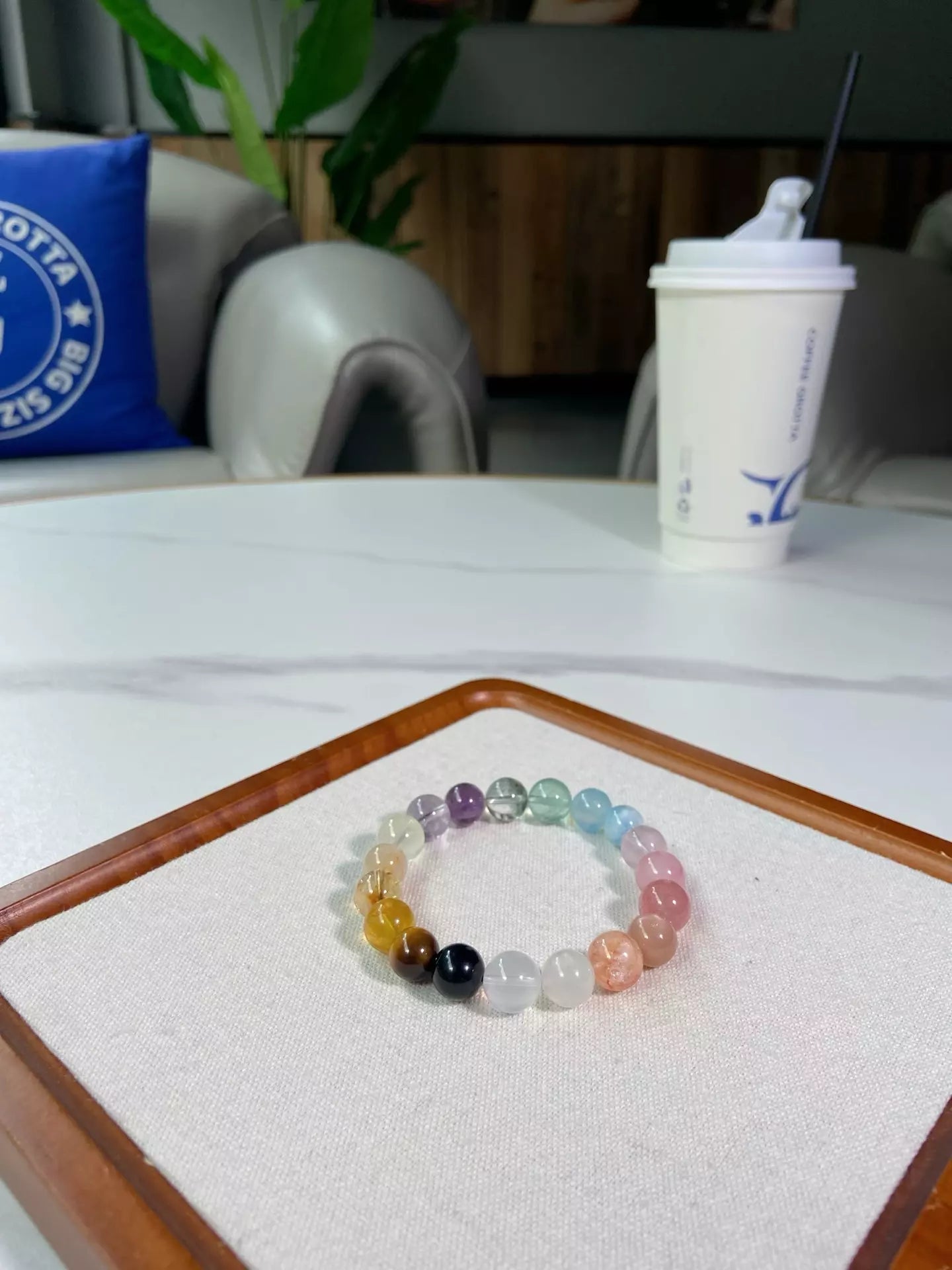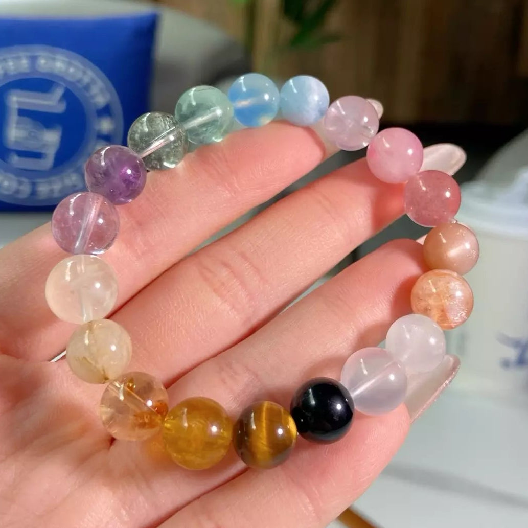 Dive into the dazzling cosmic energy of this multi-crystal masterpiece💎! Obsidian🖤 shields you from negativity; Yellow Tiger’s Eye🌙 & Citrine Tower💛 attract wealth and courage. Golden Rutilated Quartz✨ amplifies positive vibes; Amethyst💜 boosts wisdom. Rose Quartz💕 & Strawberry Quartz🍓 nurture love; Green Phantom Quartz🌱 brings growth. Sunstone☀️ ignites vitality; Blue Moonstone🌌 adds dreamy charm. Their vibrant hues shine like a starry galaxy—wear daily to embrace all-around positivity and radiate irresistible charm🌟!