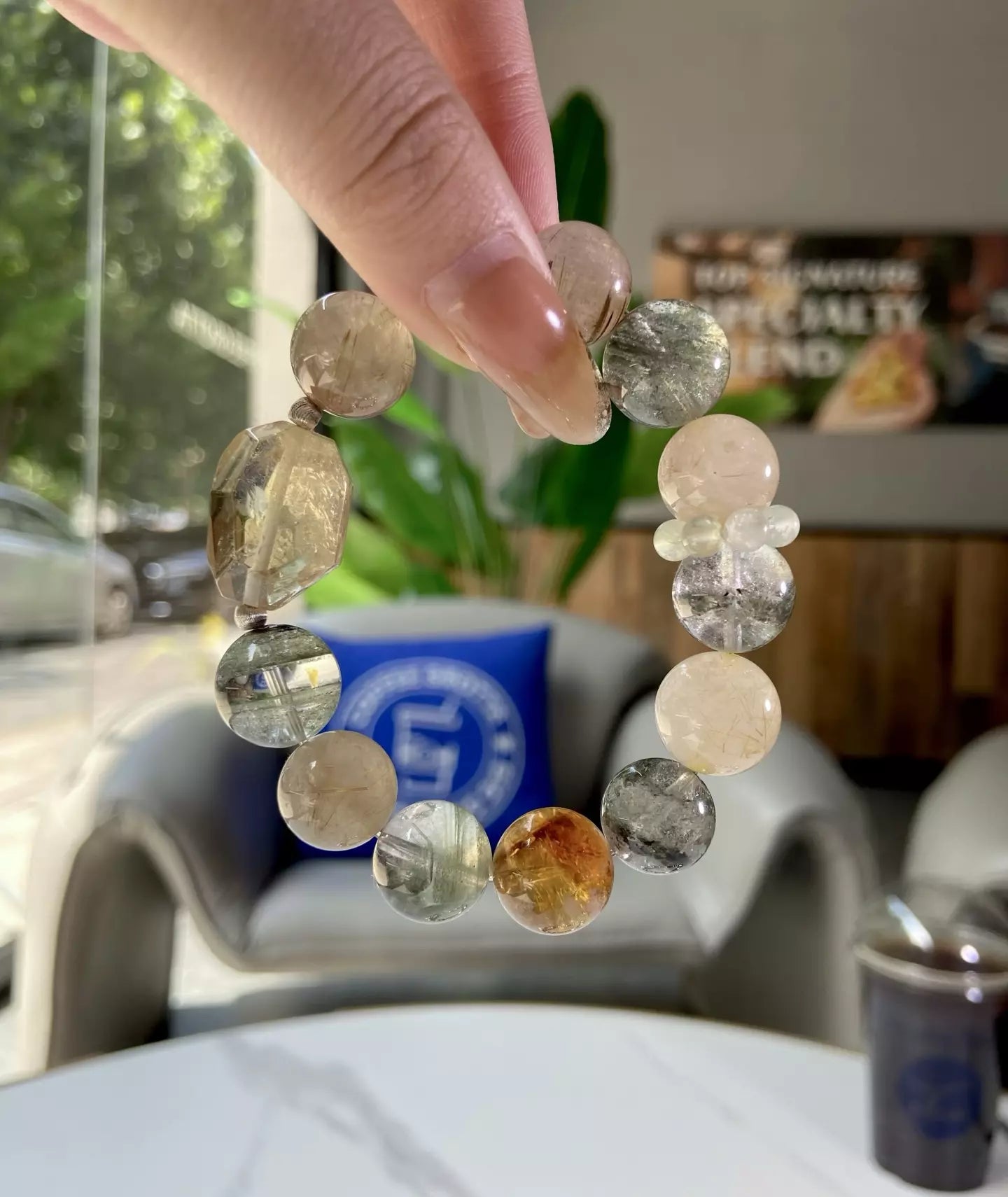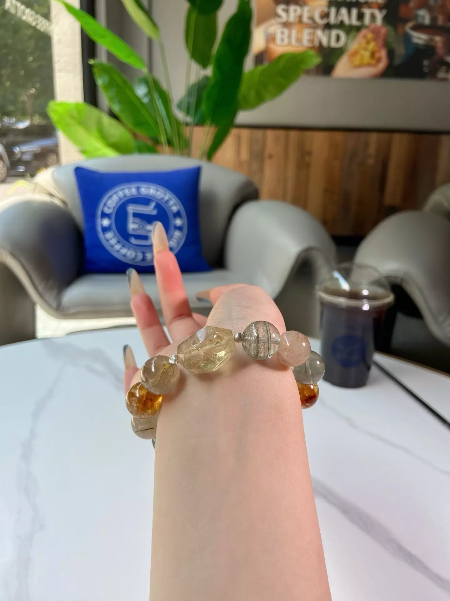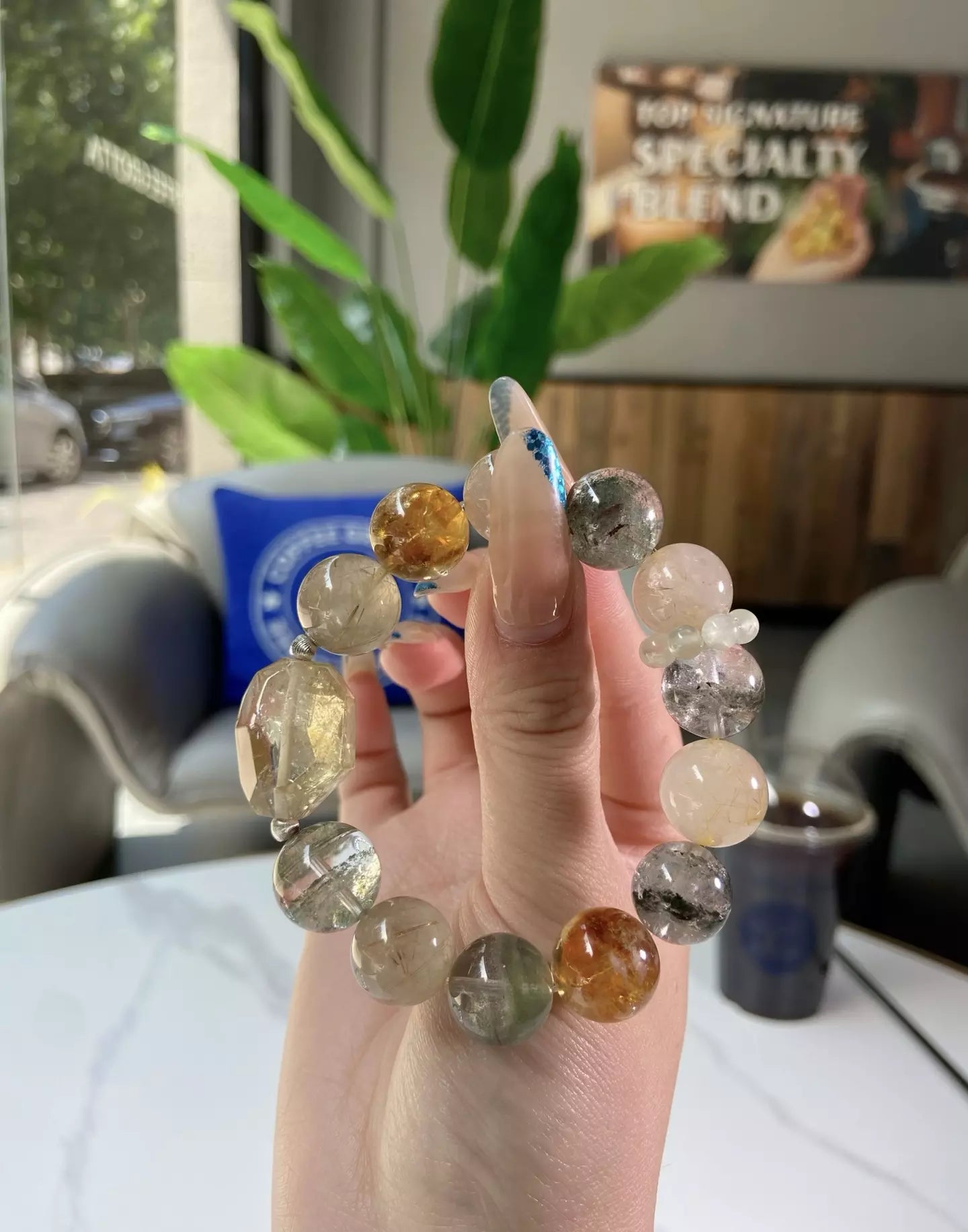 Immerse in the lush, luxurious energy of this bracelet💎✨! Green Phantom nurtures your holistic wellness and balances inner vibes. Golden Rutilated Quartz boosts skin radiance for a glowing complexion, while Golden Tower Quartz calms your mind to upgrade sleep quality. Its striking green-black-yellow palette glows like gilded light through emerald foliage. Wear daily to embrace vitality, beauty and restful nights💫!