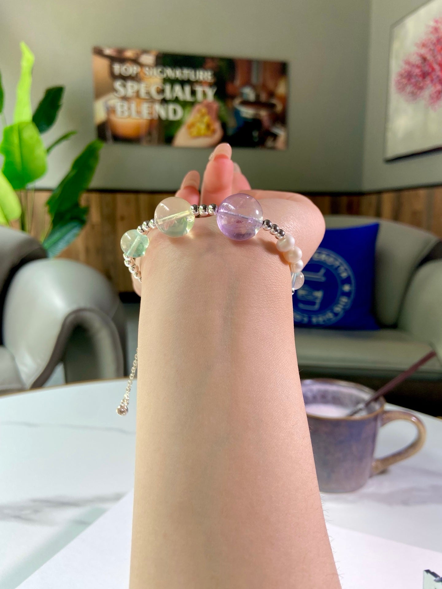 Crystals: Amethyst, Milky White Quartz, Citrine, Green Fluorite, Rose Quartz, Aquamarine