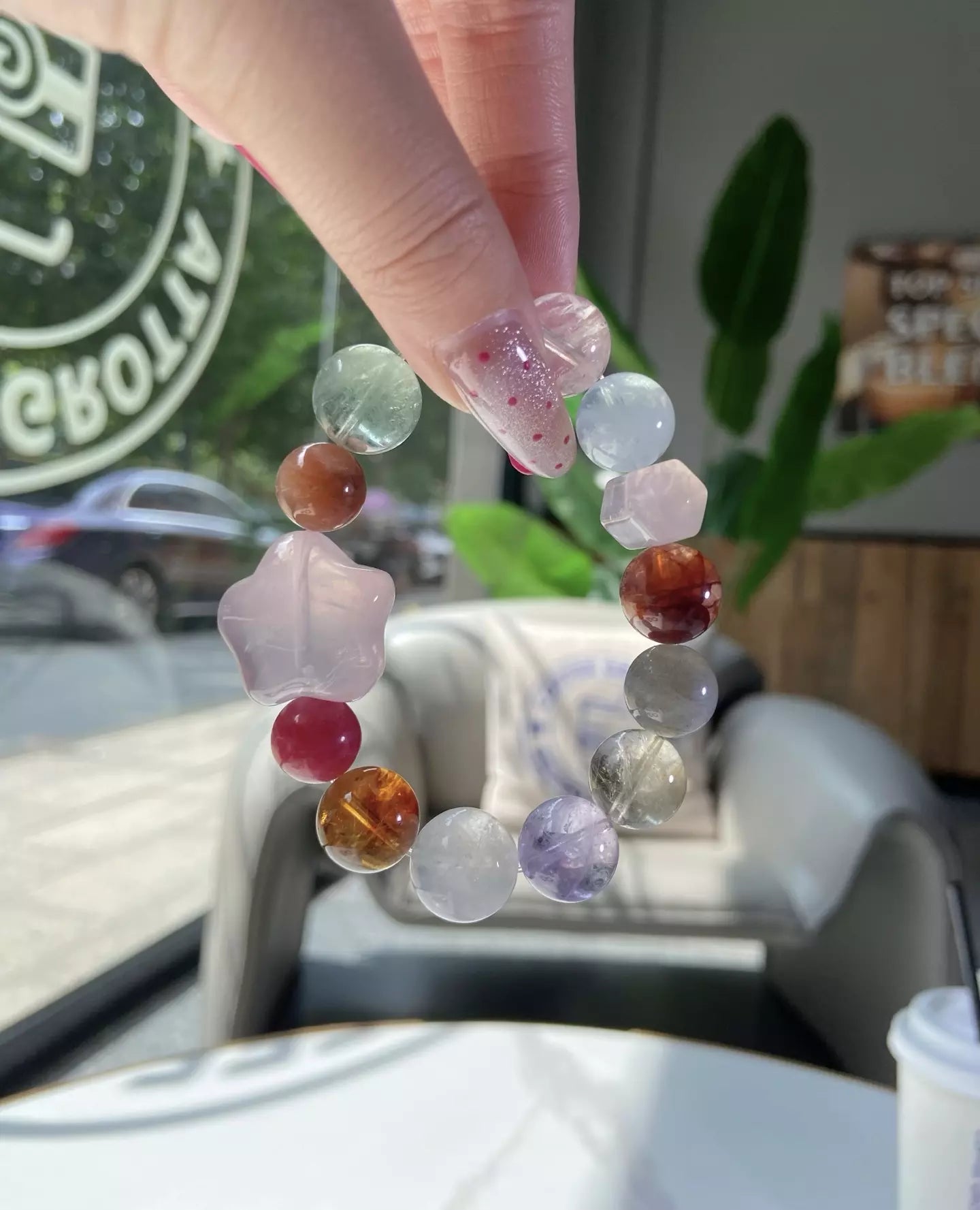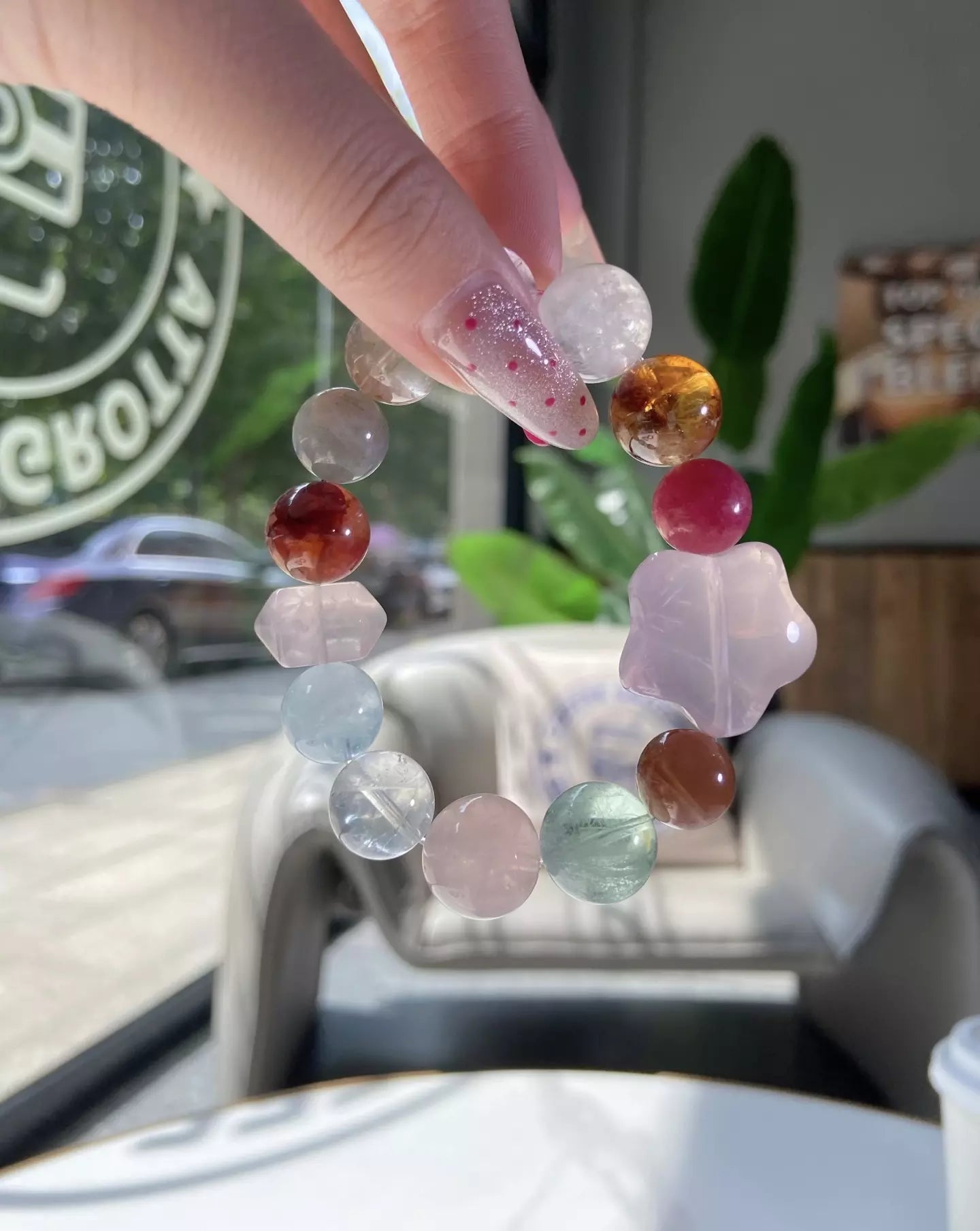 Indulge in the mesmerizing, cosmic energy of this stunning crystal medley💎! Rhodonite and Rose Quartz weave sweet love vibes, while Golden Tower Quartz & Golden Rutilated Quartz attract abundant wealth. Amethyst sharpens spiritual awareness, Grey Moonstone boosts intuition, and Aquamarine calms restless moods. Its vivid colorful palette glows like a galaxy in eternal night—wear daily for love, fortune and inner harmony🌟!