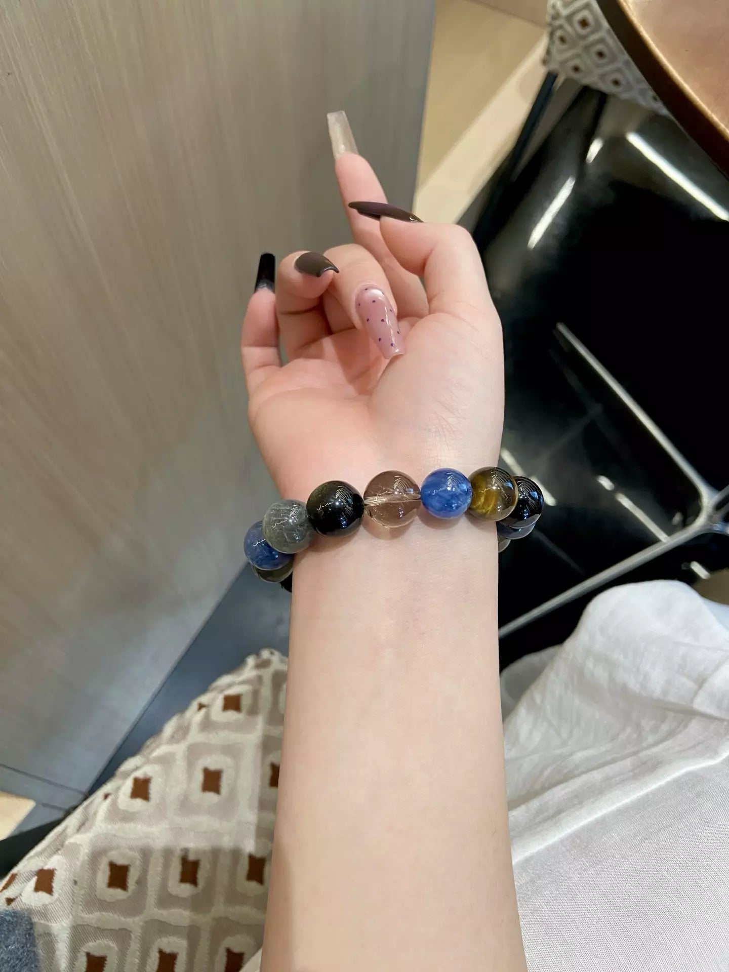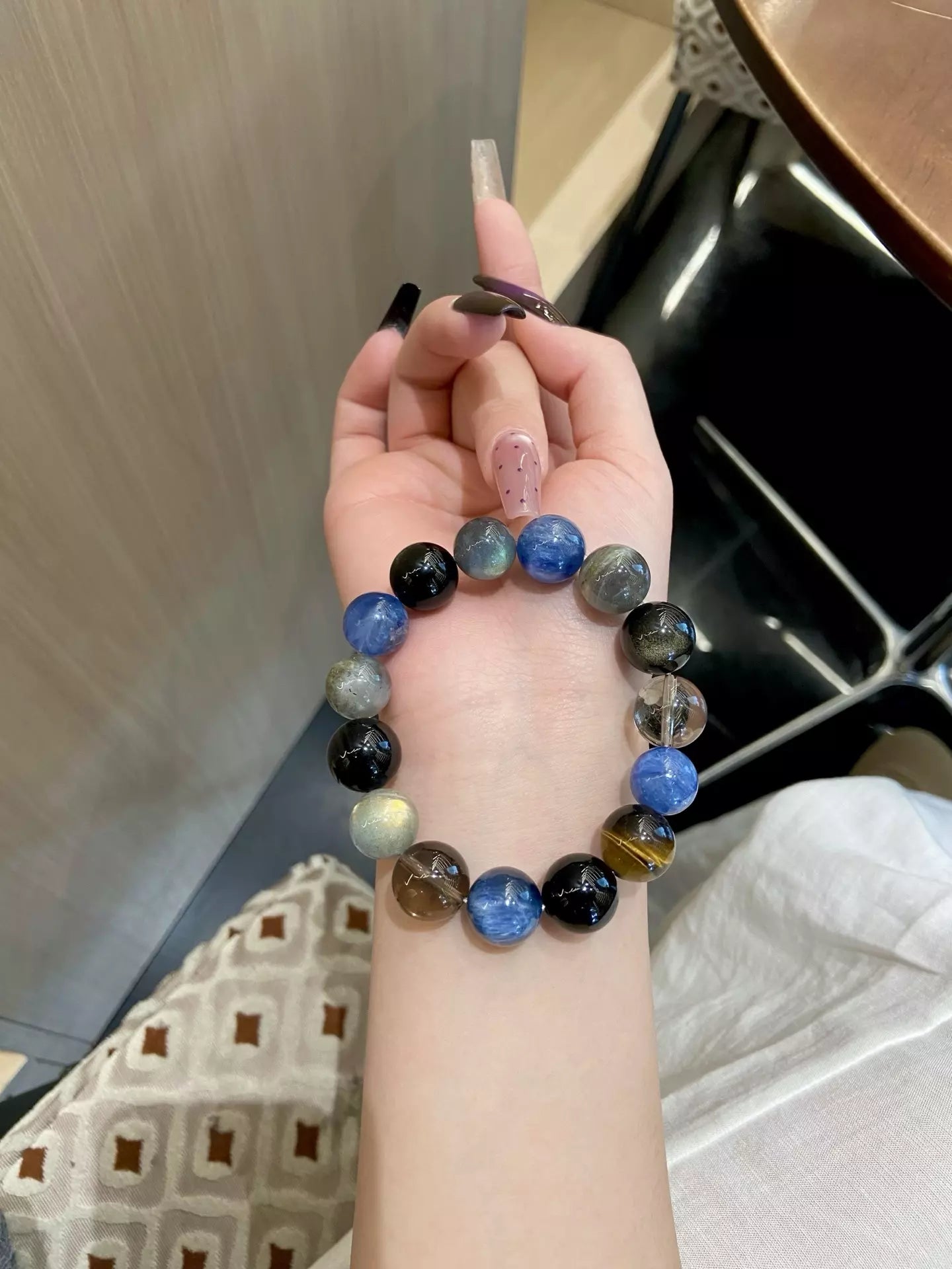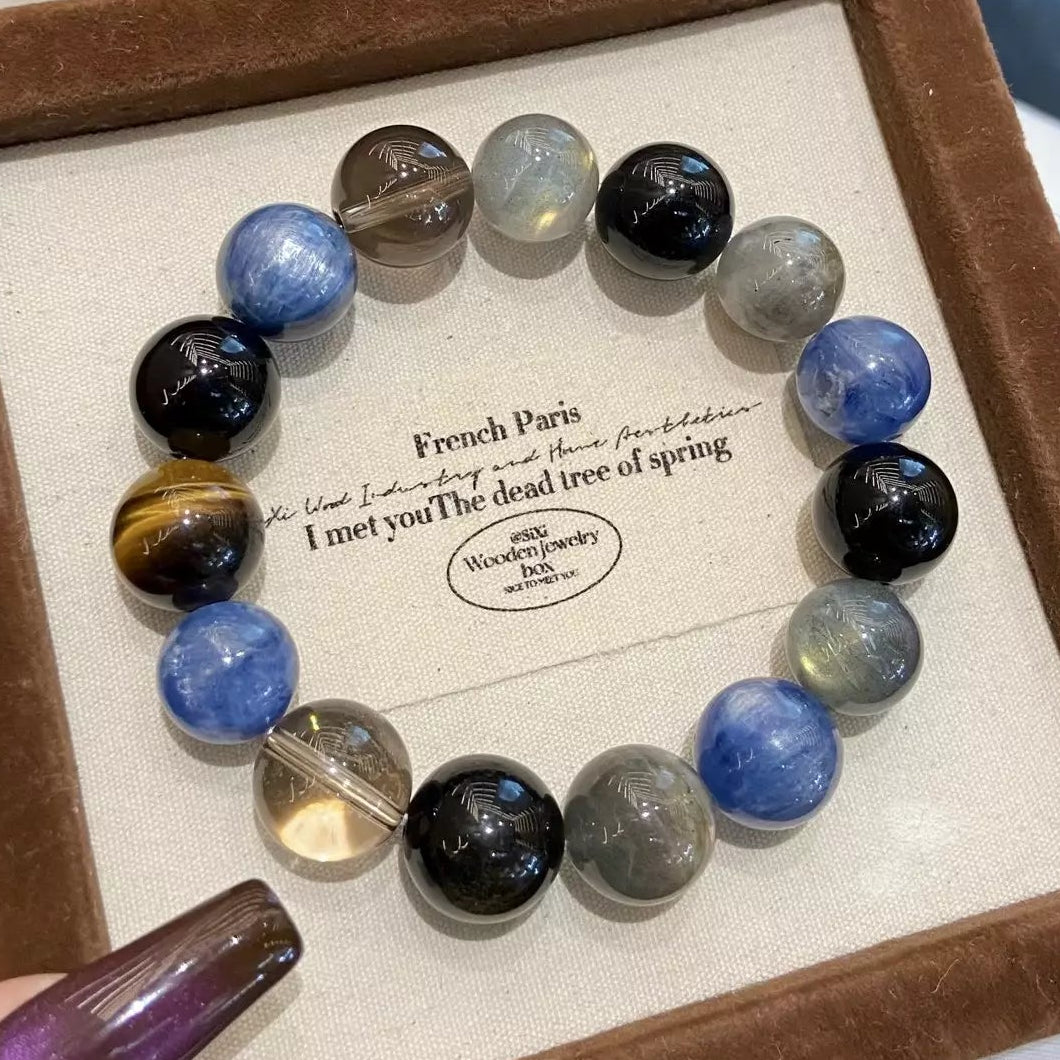 Harness celestial balance with this powerful crystal blend🌌💎! Kyanite’s calming blue sharpens communication🗣️ and balances energy, while Smoky Quartz (transparent & gray) nurtures health🩹 and grounds negativity. Gray Moonstone stabilizes mood😌, Yellow Tiger's Eye boosts unshakable focus🧠, and Silver/Gold Sheen Obsidian (black hues) amplifies protective vibes🛡️. Blending black, transparent, blue, and gray, it mirrors the firmament’s calm power—grounding, empowering, and clarifying. Wear daily to stay centered, focused, and connected with your inner strength✨!