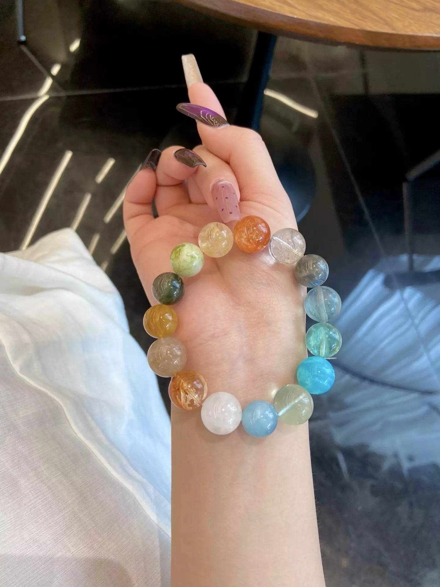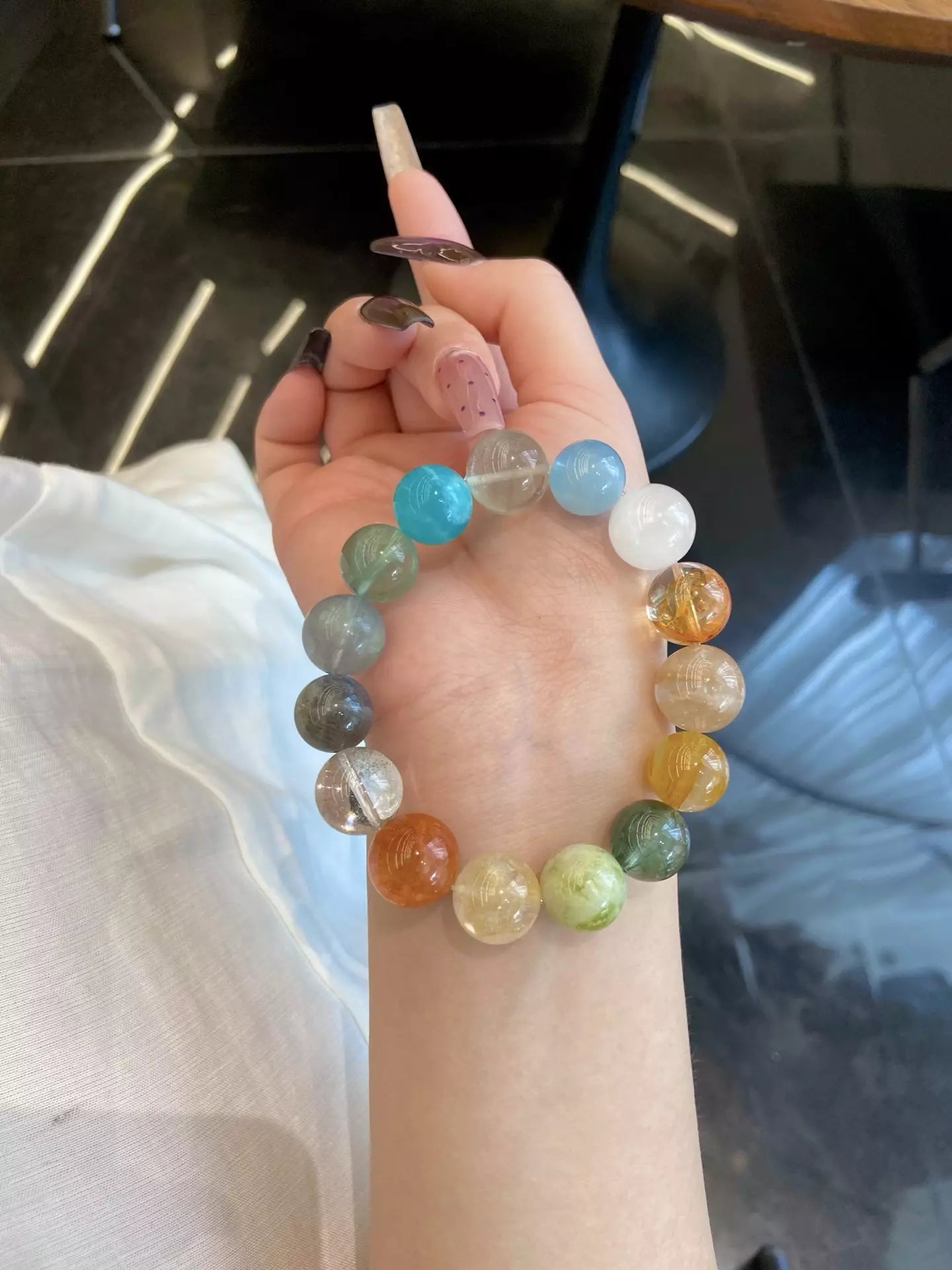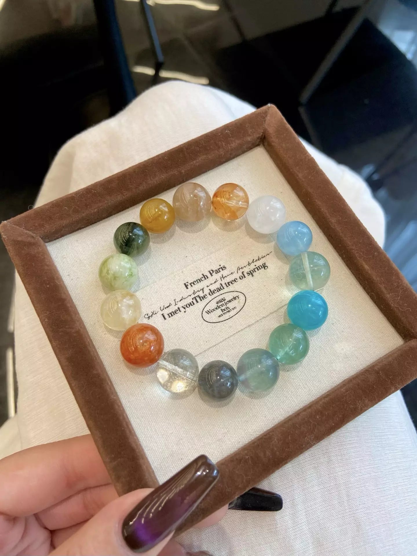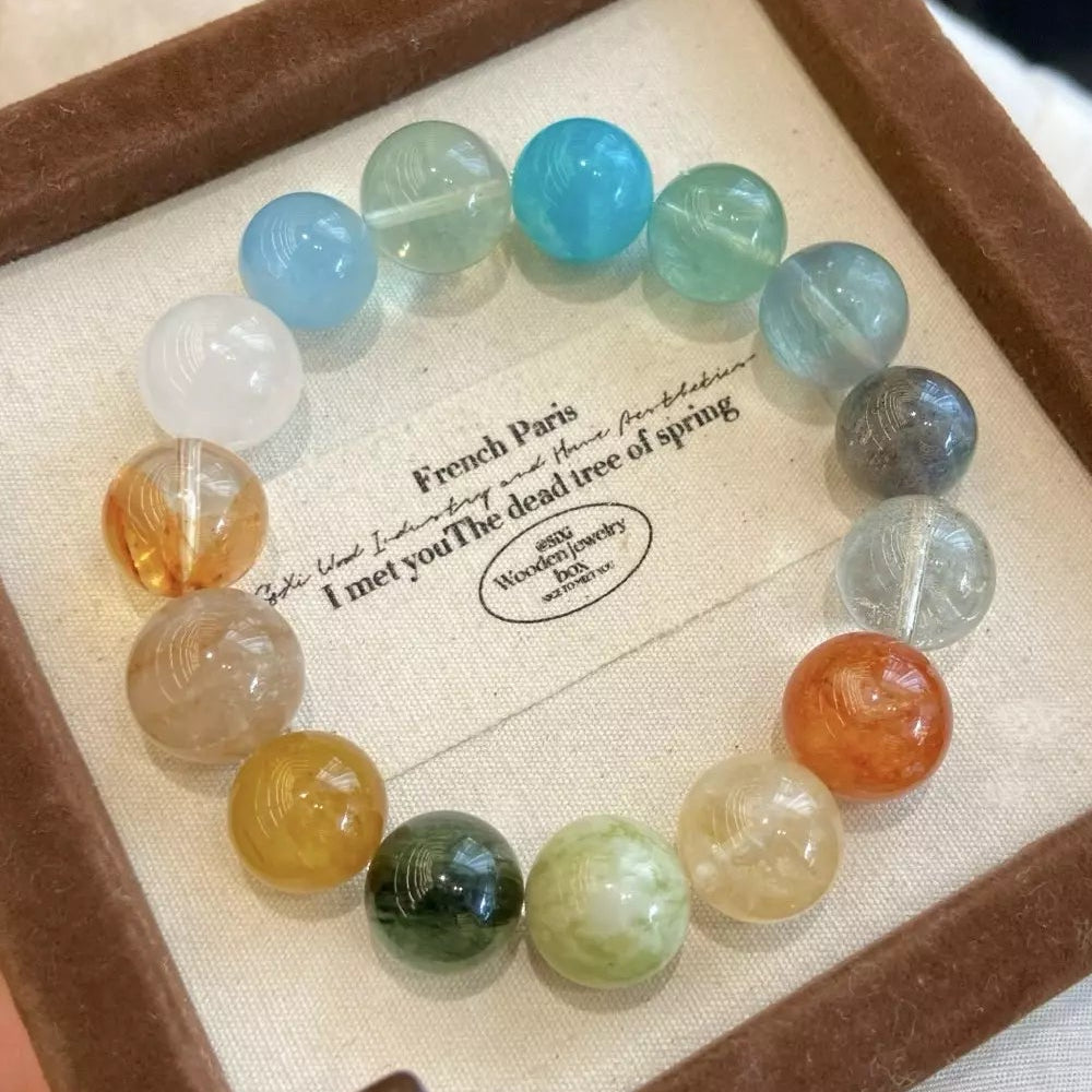 Dive into nature’s sweet warmth with this vibrant crystal blend💎🍊! Green Rutilated Quartz & Green Phantom Quartz🌱 infuse fresh vitality, while Yellow Rutilated Quartz🌞 radiates sunny joy. Red Rutilated Quartz❤️ sparks warmth, Amazonite & Aquamarine💧 calm like forest streams. Gray Moonstone🌙 soothes, Rainbow Fluorite🌈 adds playful charm, and Phantom Quartzes☁️🌀 purify negative vibes. A cozy mix of nature’s magic—wear daily to glow with joy, calm, and lively energy🌟!