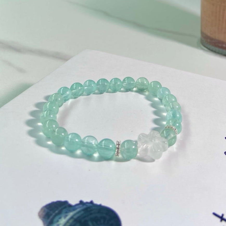 Meanings: Green Fluorite: energy purification & environmental harmony, emotional balance & stress relief; Clear Quartz: enhances focus & memory, purifies negative energy, regulates emotions, promotes health