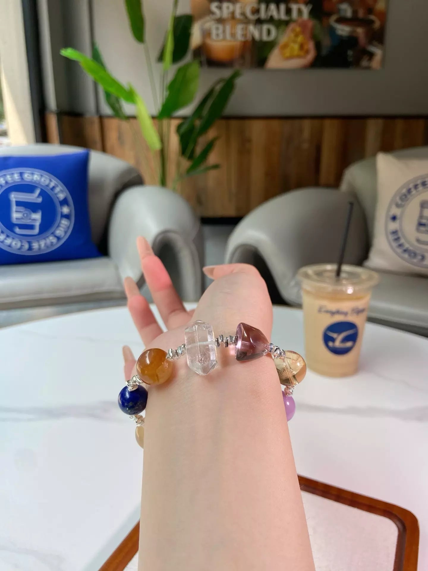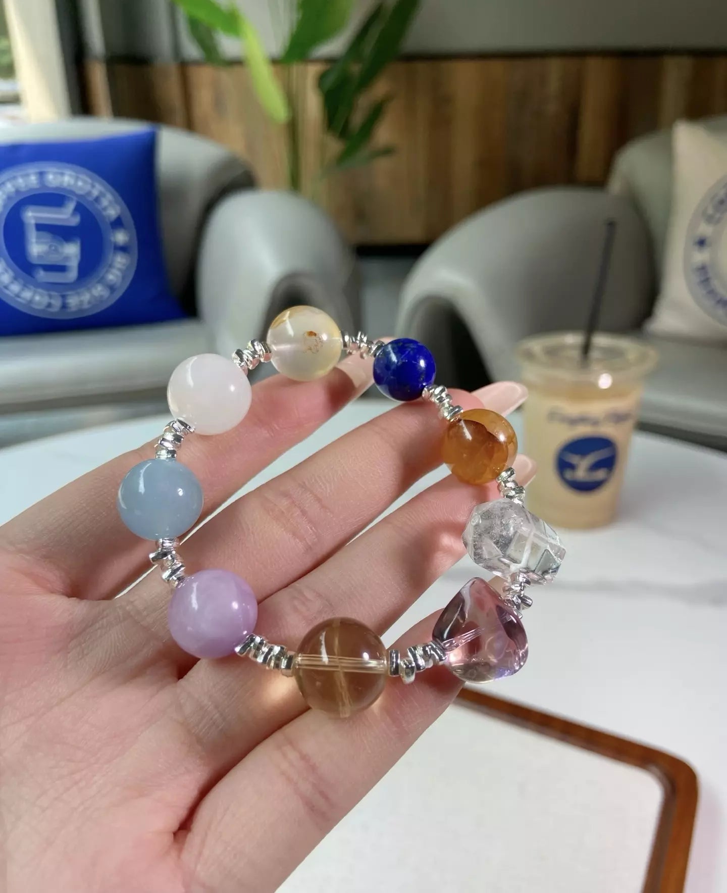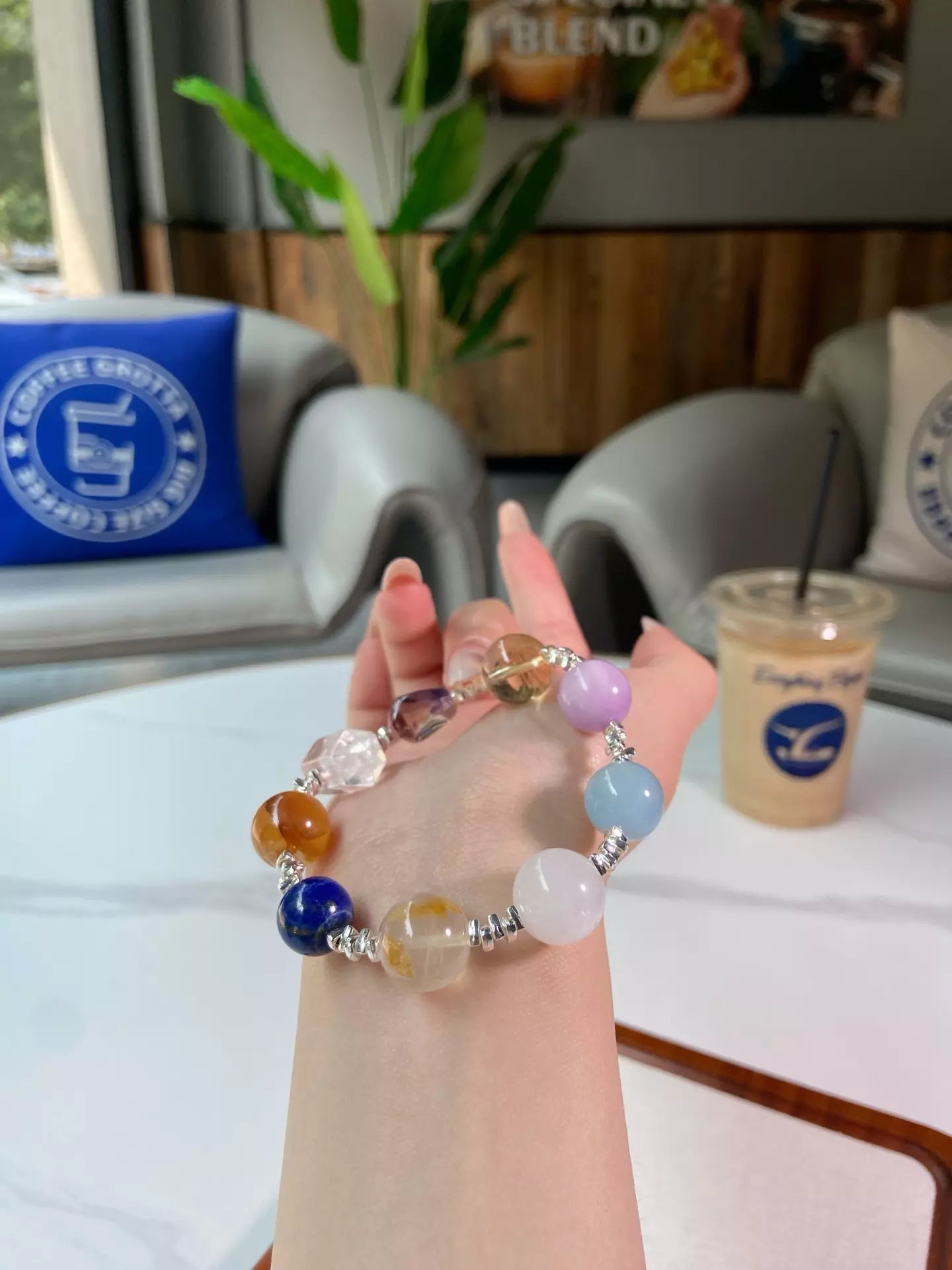 Embrace the soothing warmth of this multi-crystal blend💎! Citrine💛 & Yellow Rutilated Quartz🌼 infuse sunny energy to balance mood swings. Kunzite💖 wraps your heart in gentle calm, while Aquamarine💧 cools restless thoughts. White Phantom Quartz🌨️ purifies negative vibes, and Lapis Lazuli💙 brings inner peace. Their colorful palette glows softly—warm yet delicate. Wear daily to stay emotionally balanced, ease mental clutter, and radiate gentle, steady vibes wherever you go🌟!