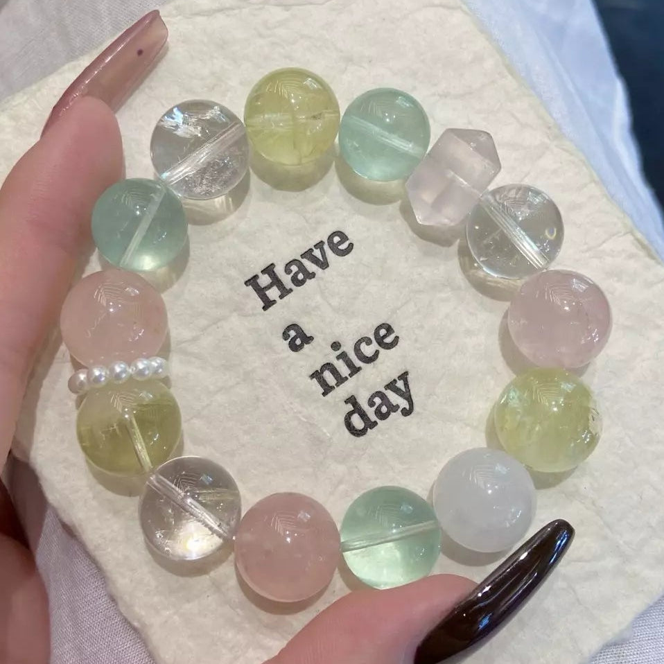 Elements: Rose Quartz💖, Green Fluorite🍃, Citrine☀️, Clear Quartz✨, White Phantom Quartz🌨️