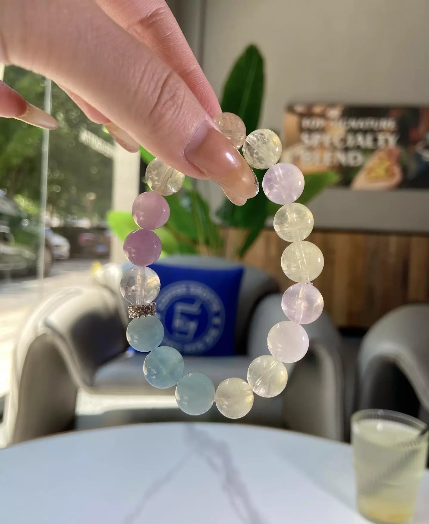 Immerse in the warm, gentle energy of this bracelet💎✨! Rose Quartz & Kunzite foster sweet love and inner healing💞. Aquamarine & White Phantom guard your safety and ease body discomfort🛡️. Citrine fuels your confidence and brightens your mood💪. Its soft yellow-blue-purple-clear-pink-white palette glows like morning sunlight over the sea—wear daily to embrace warmth, peace and positive vibes💫!