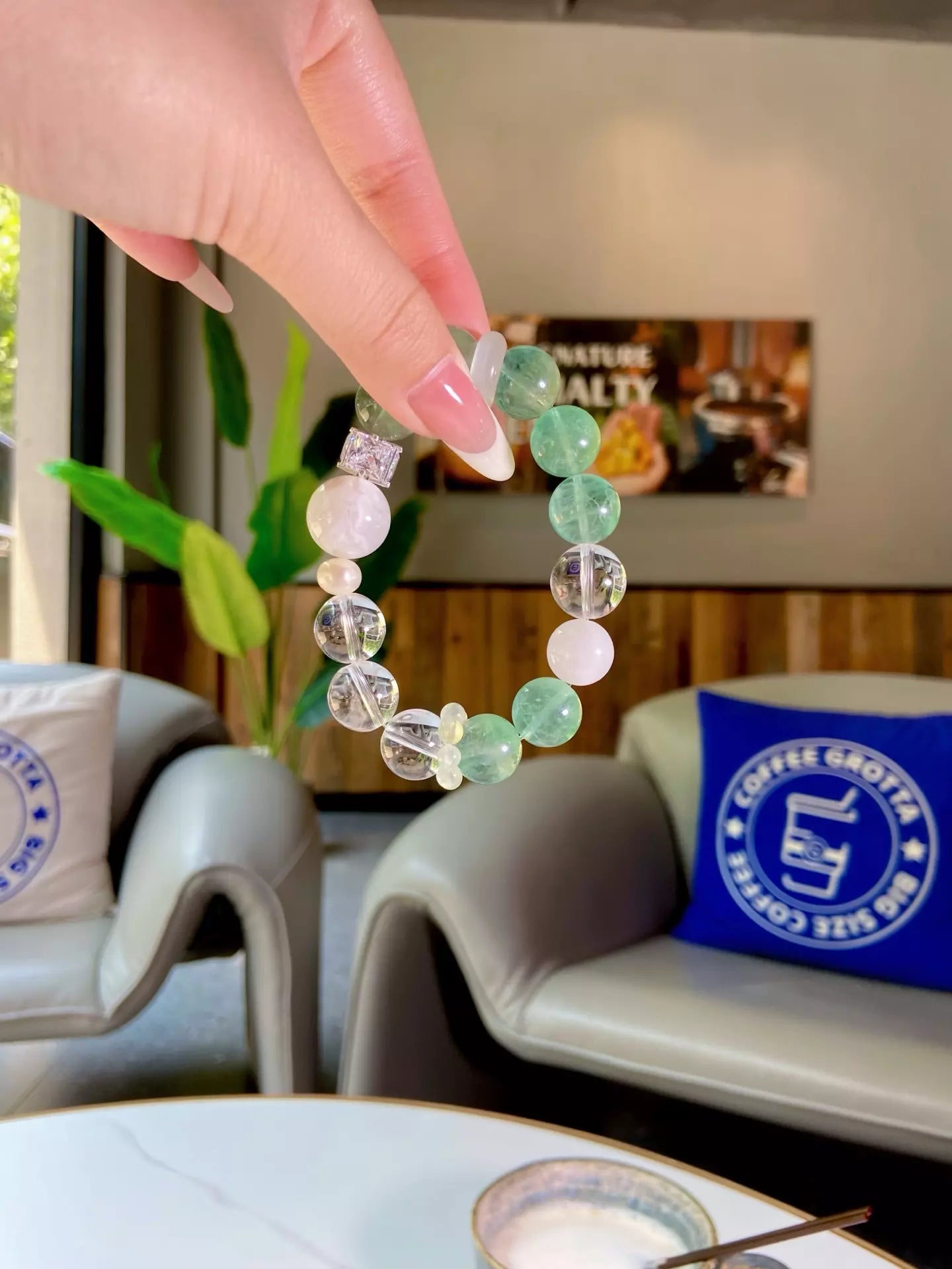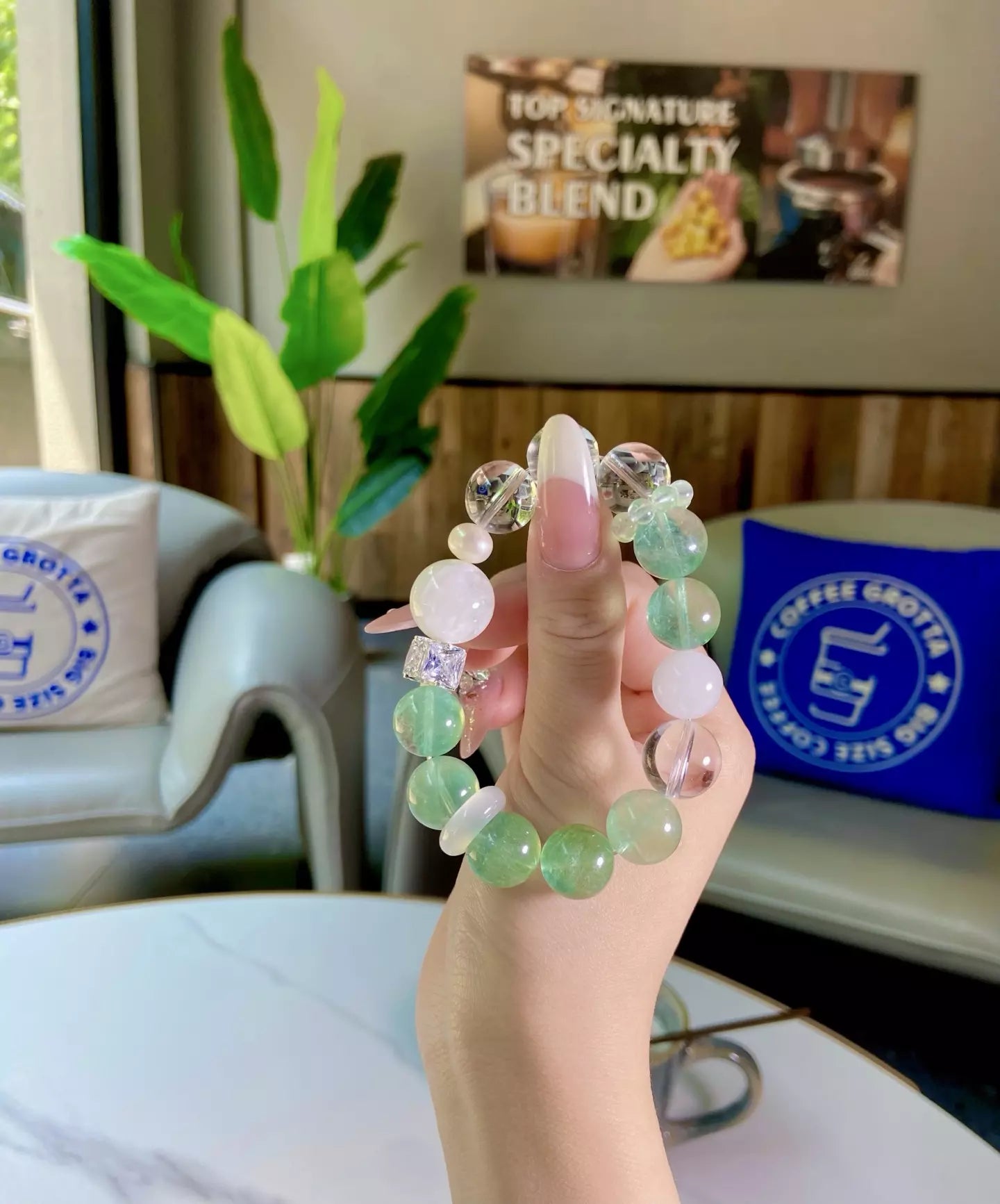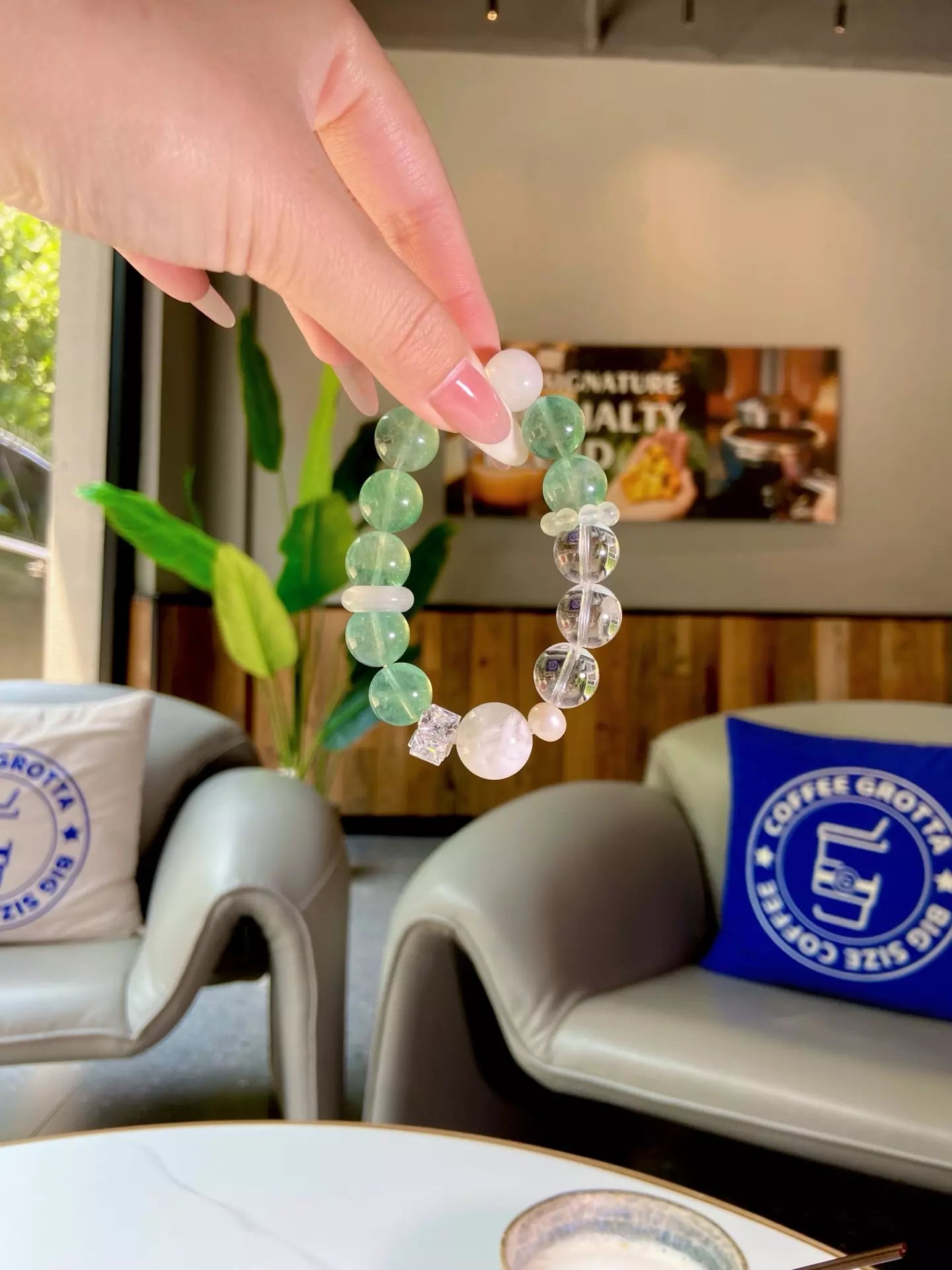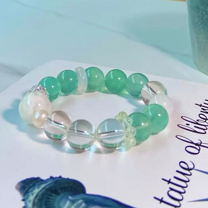 Slip on this elegant bracelet, where lush green fluorite 🟢, crystal-clear quartz 💎, wispy snow phantom quartz ❄️ and misty white phantom quartz blend into a luminous glow! Let its cool energy sweep away negative vibes, soothe frazzled nerves and sharpen your focus for daily tasks 📝. Every bead glimmers like jade kissed by snow, crafting a wearable shield of calm that harmonizes your space and mind. Perfect for busy souls craving clarity, balance and a touch of natural magic 🌿!