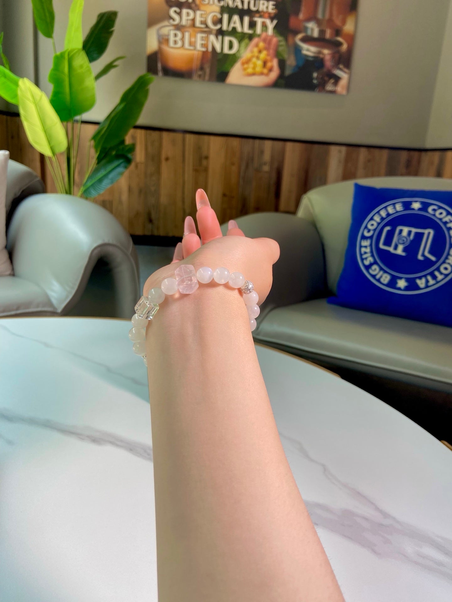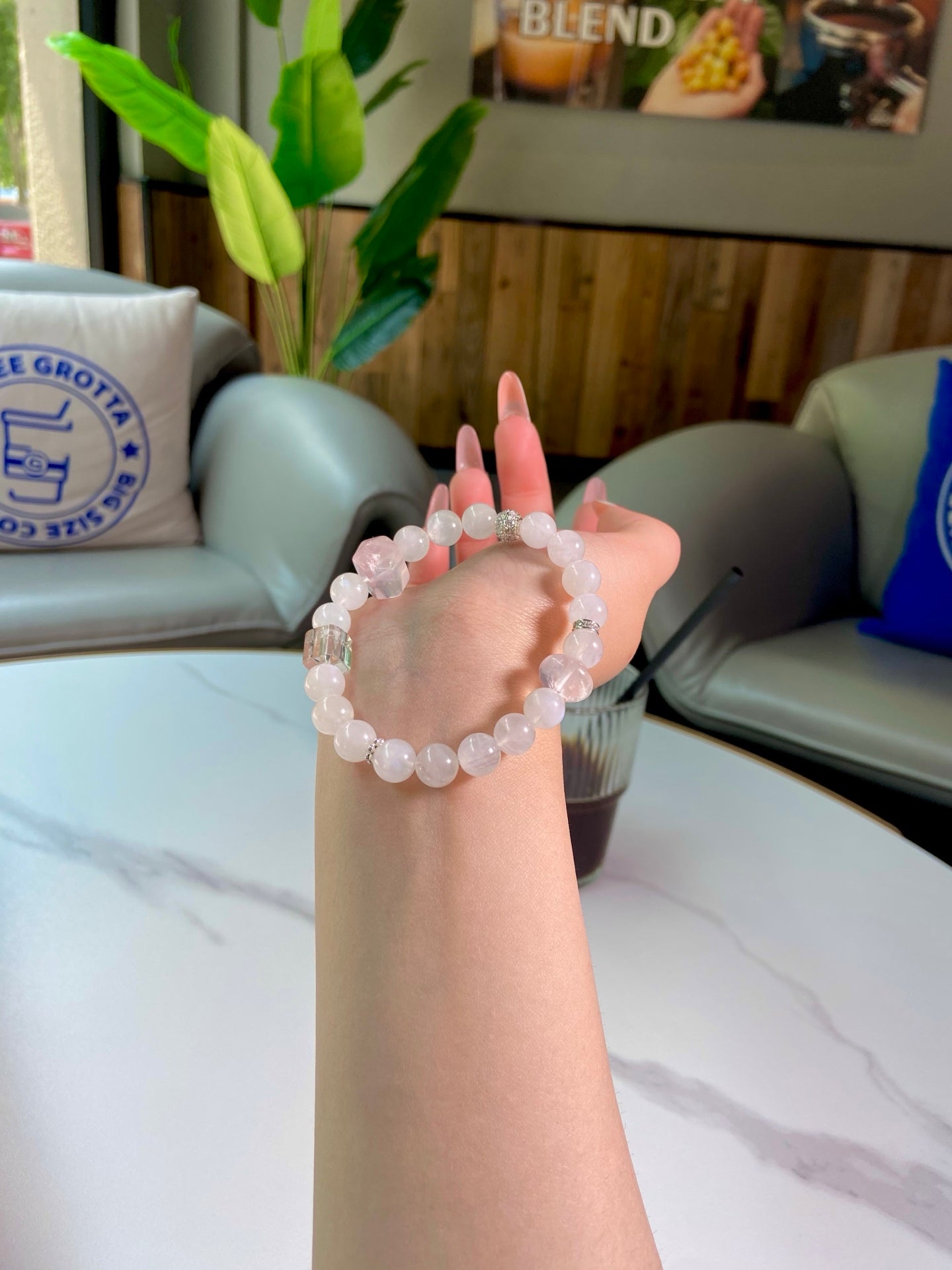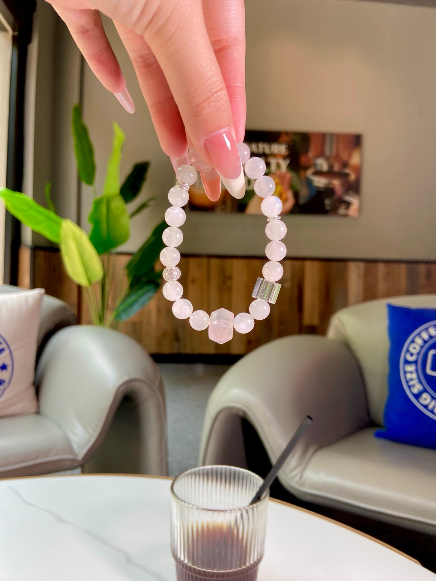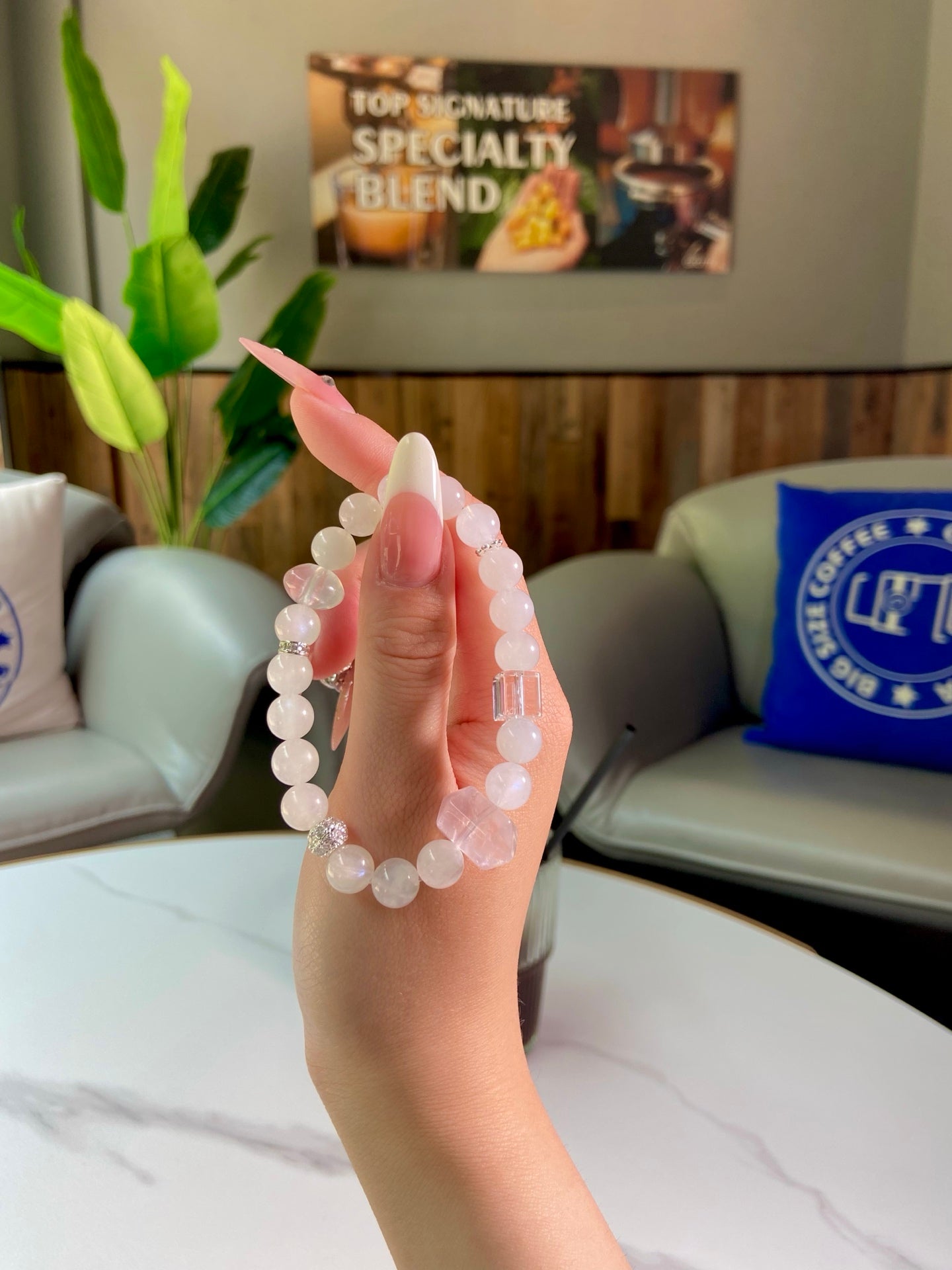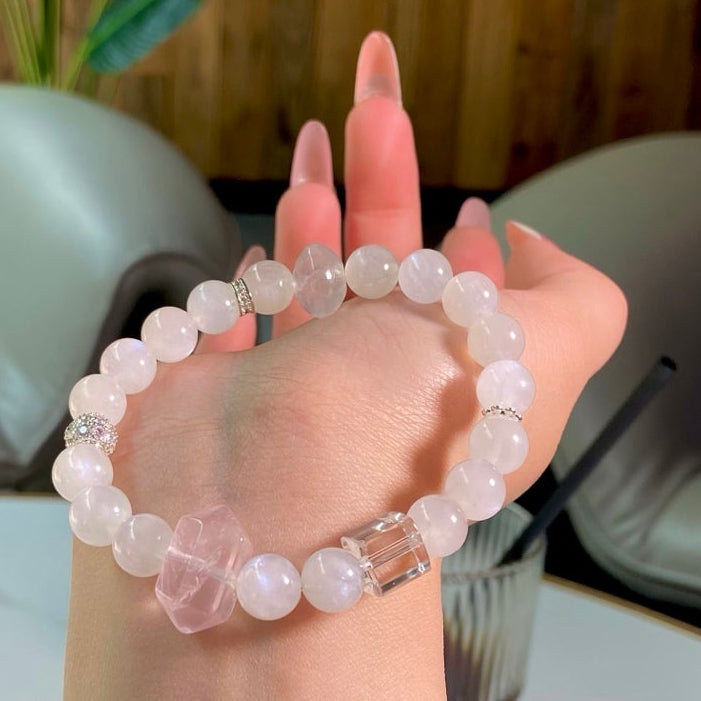 Dive into a fairy-tale realm with the ethereal blue moonstone and tender rose quartz! Blue moonstone wraps you in calming vibes, ignites your deepest dreams, and draws in sweet romance 🌙. Rose Quartz melts your heart, fosters warm intimacy with loved ones, and encourages gentle self-acceptance 🫂. Blending dreamy pale blue and soft pink hues, this piece is your perfect companion for embracing peace, love, and all the beautiful moments in life!