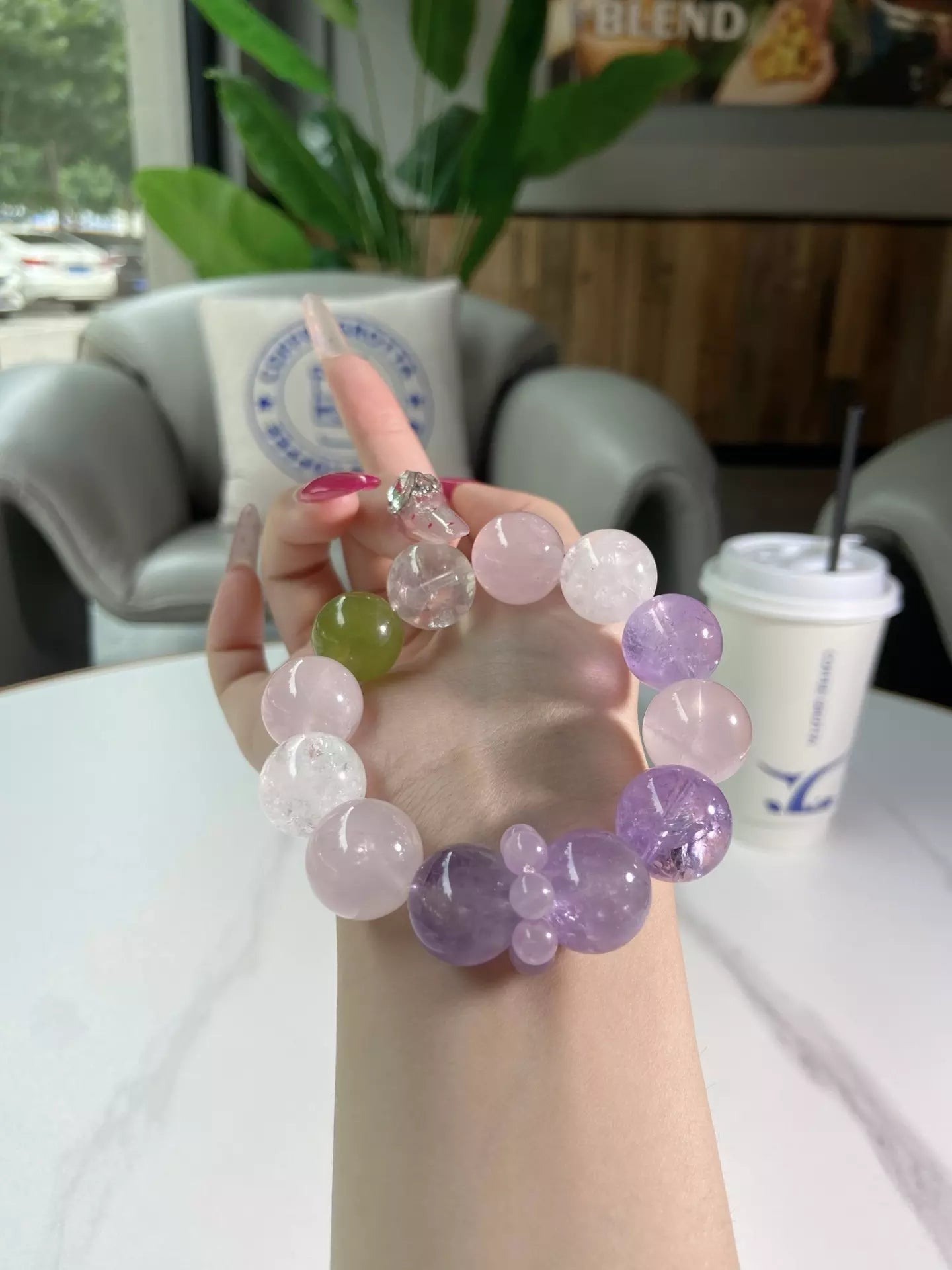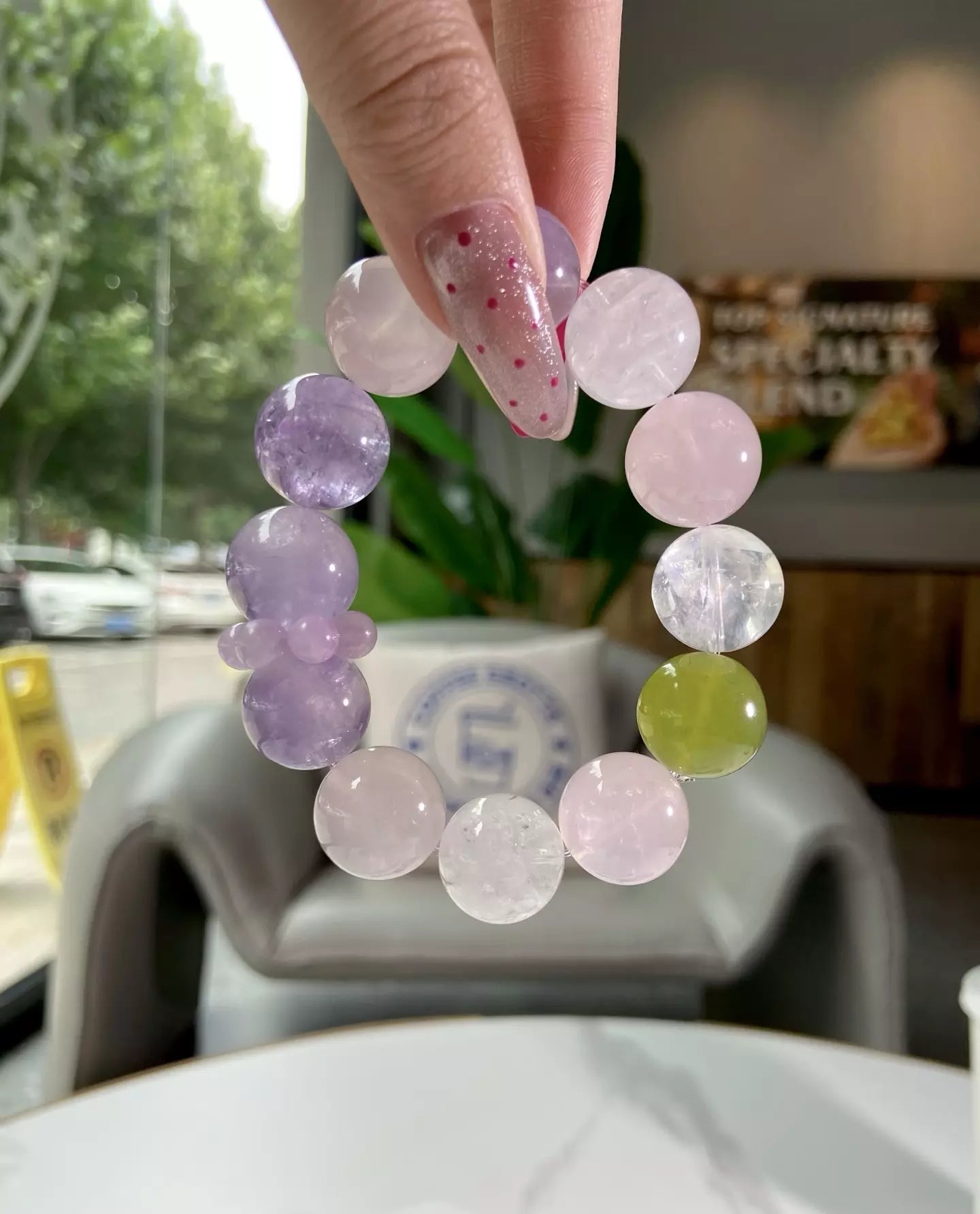 Immerse in the dreamy, gentle energy of this bracelet💎✨! Amethyst lights up wisdom and courage, wrapping you in happiness and peace🔮. Rose Quartz guards sweet love and warms your heart💞. White Phantom purifies vibes, while Serpentine adds fresh green calmness🌿. Its soft pink-purple-clear-white-green palette glows like flowing starlight—wear daily to embrace romance, tranquility and positive vibes💫!
