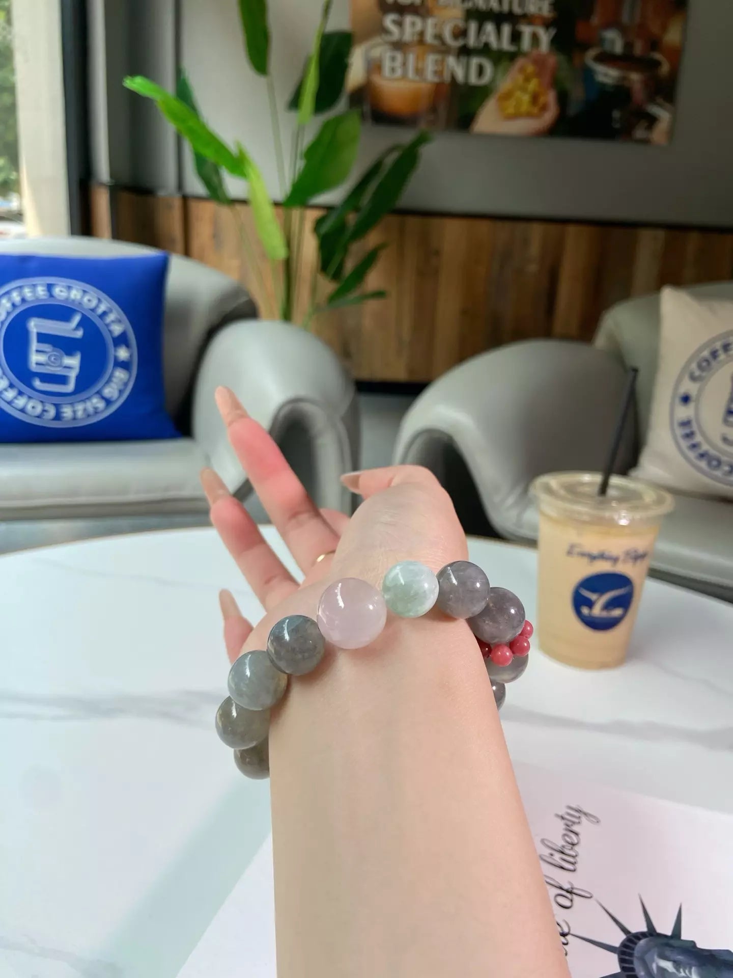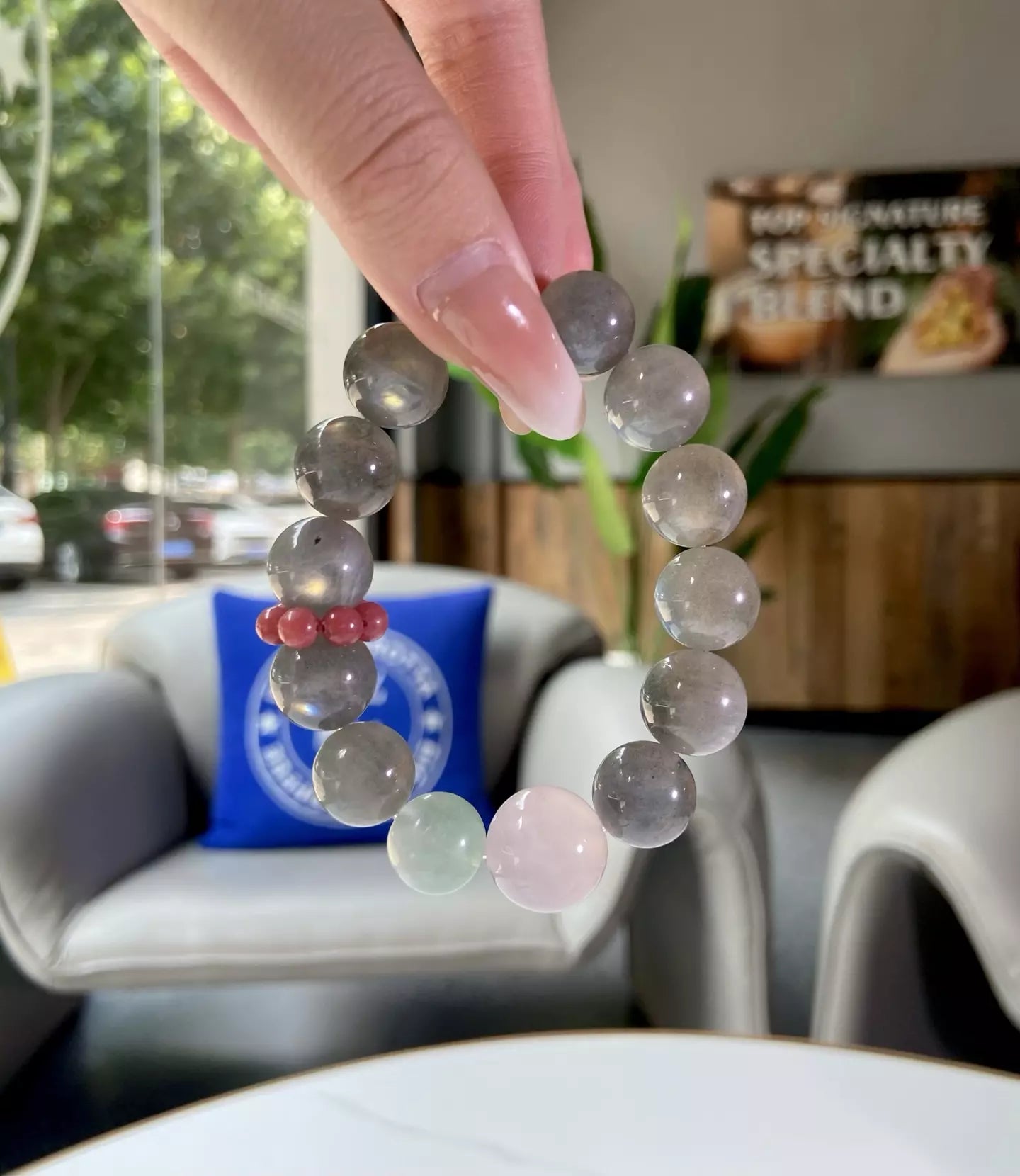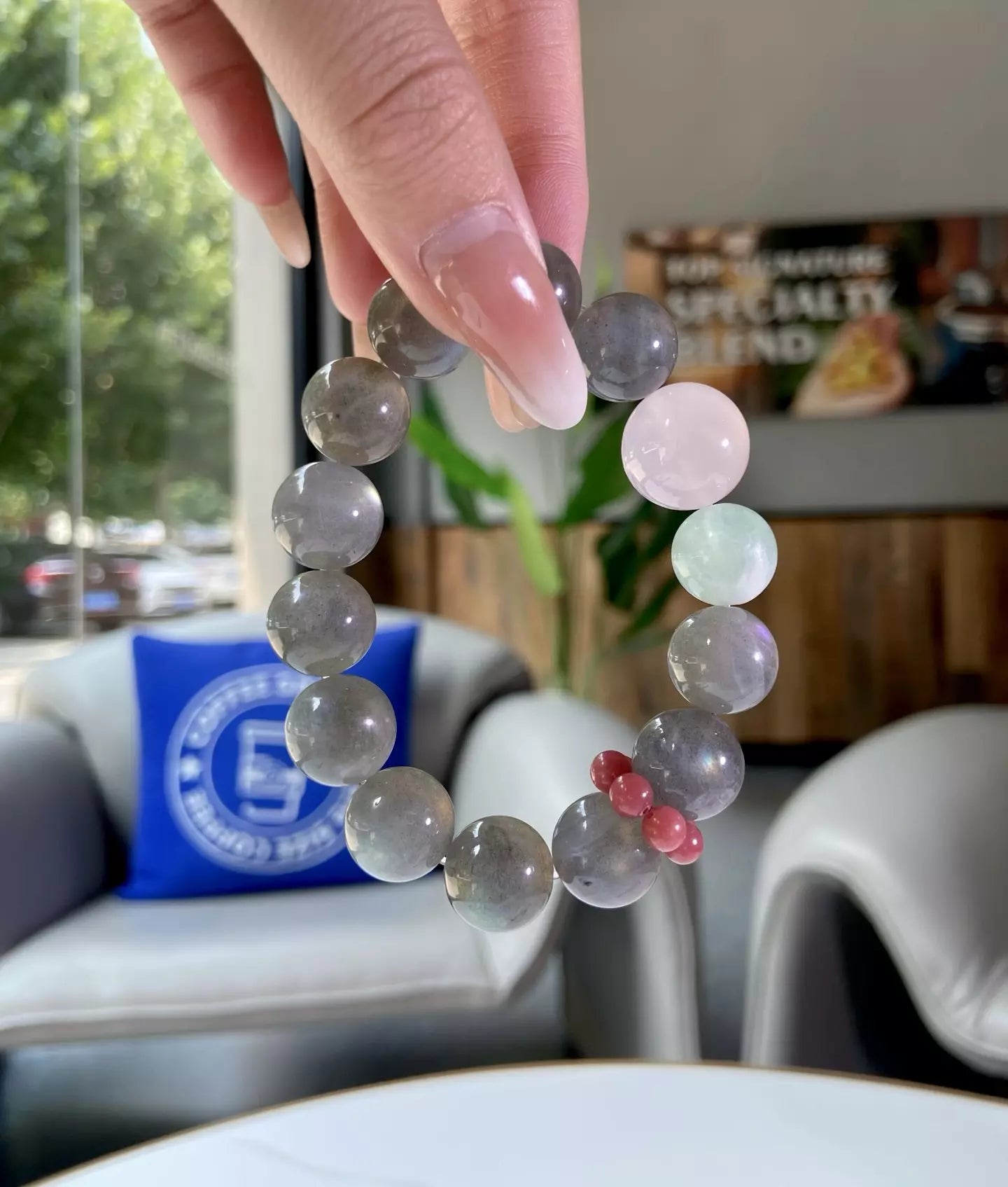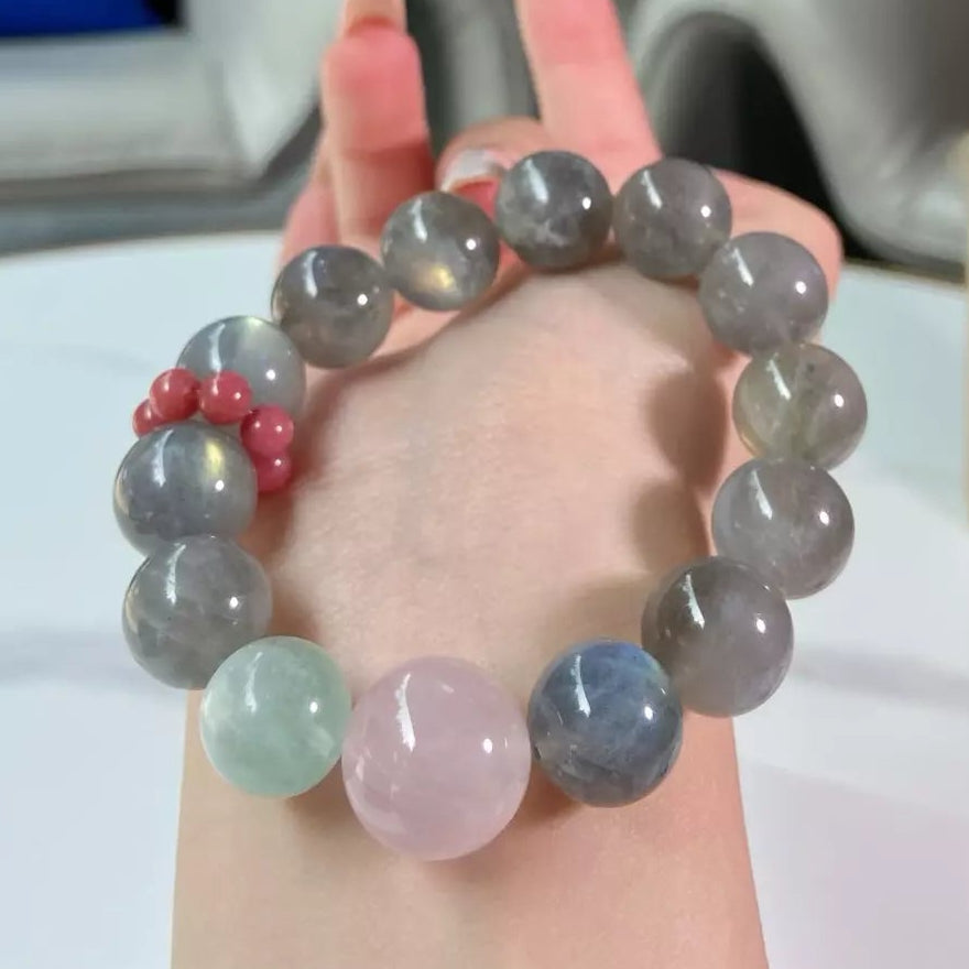Embrace the tranquil magic of this crystal blend💎! Grey Moonstone🌙 (soft grey) calms fluctuating moods and sharpens your inner intuition for wiser choices. Feather Fluorite🟢 (fresh green) fosters physical and mental harmony, washing away restlessness. Rose Quartz💖 (romantic pink) wraps you in gentle warmth, amplifying the stones’ positive energy. Their grey-pink-green hues mirror glowing light over a misty sea—serene and enchanting. Wear daily to stay balanced, trust your gut, and radiate peaceful, harmonious vibes wherever you go🌟!