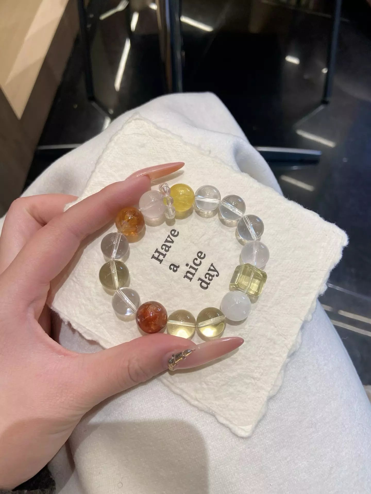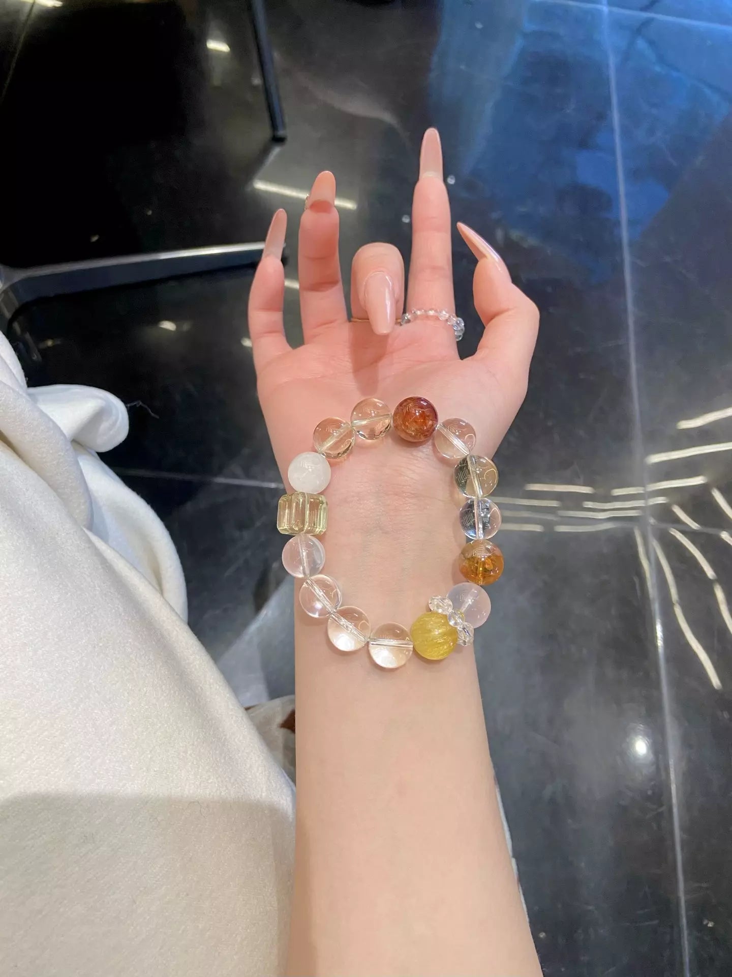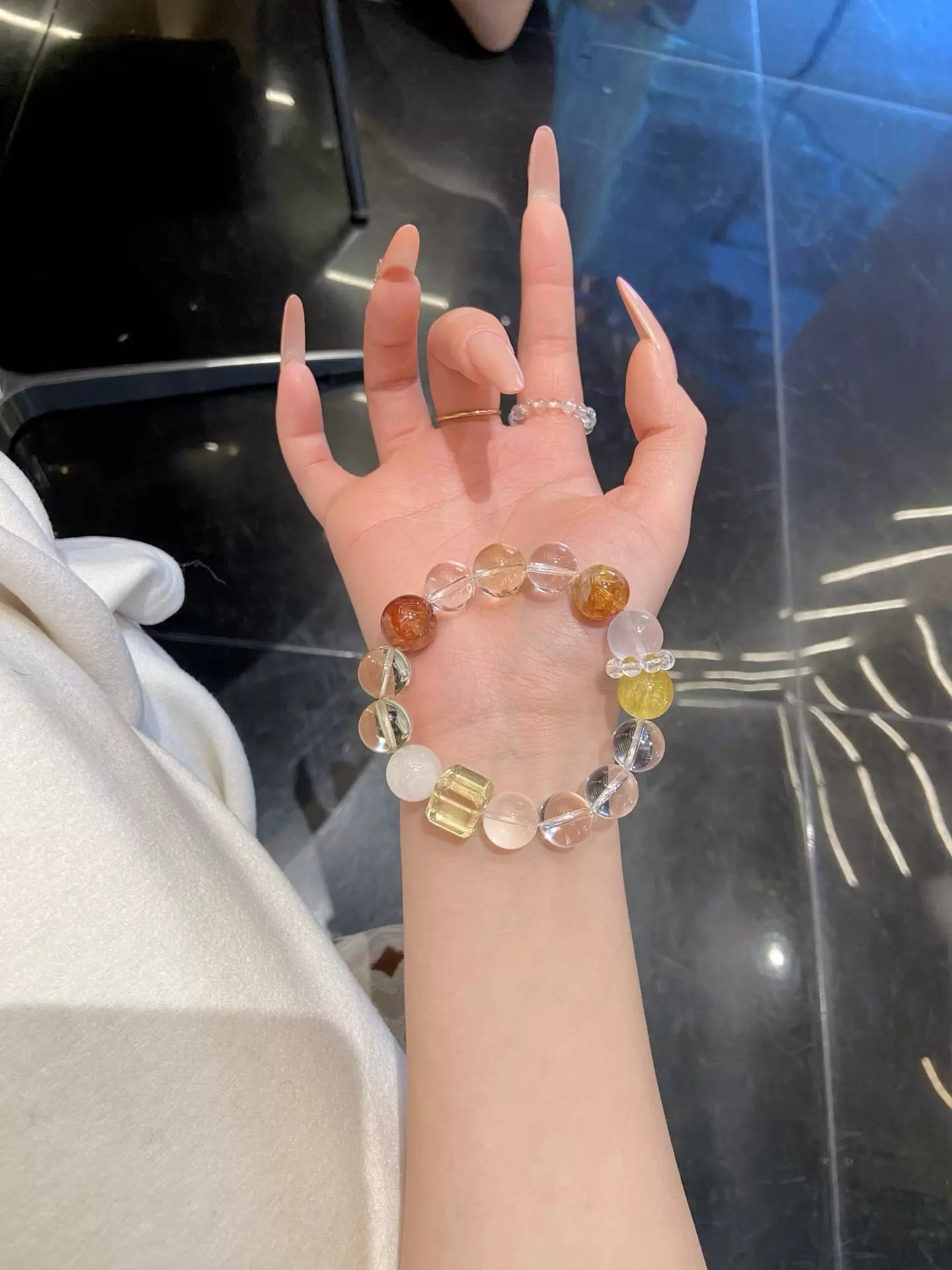 Immerse in the gentle, luminous energy of this bracelet💎✨! Citrine & Silk Yellow Fluorite fuel confidence and radiate joyful wisdom. Rose Quartz wraps you in romantic vibes to deepen intimacy and self-love💞. Clear Quartz & White Phantom purify energy and nurture wellness, while Red Rutile adds vibrant vitality. Its clear-red-yellow-white palette glows like moonlight kissing golden crystals—wear daily to embrace charm, health and inner glow💫!
