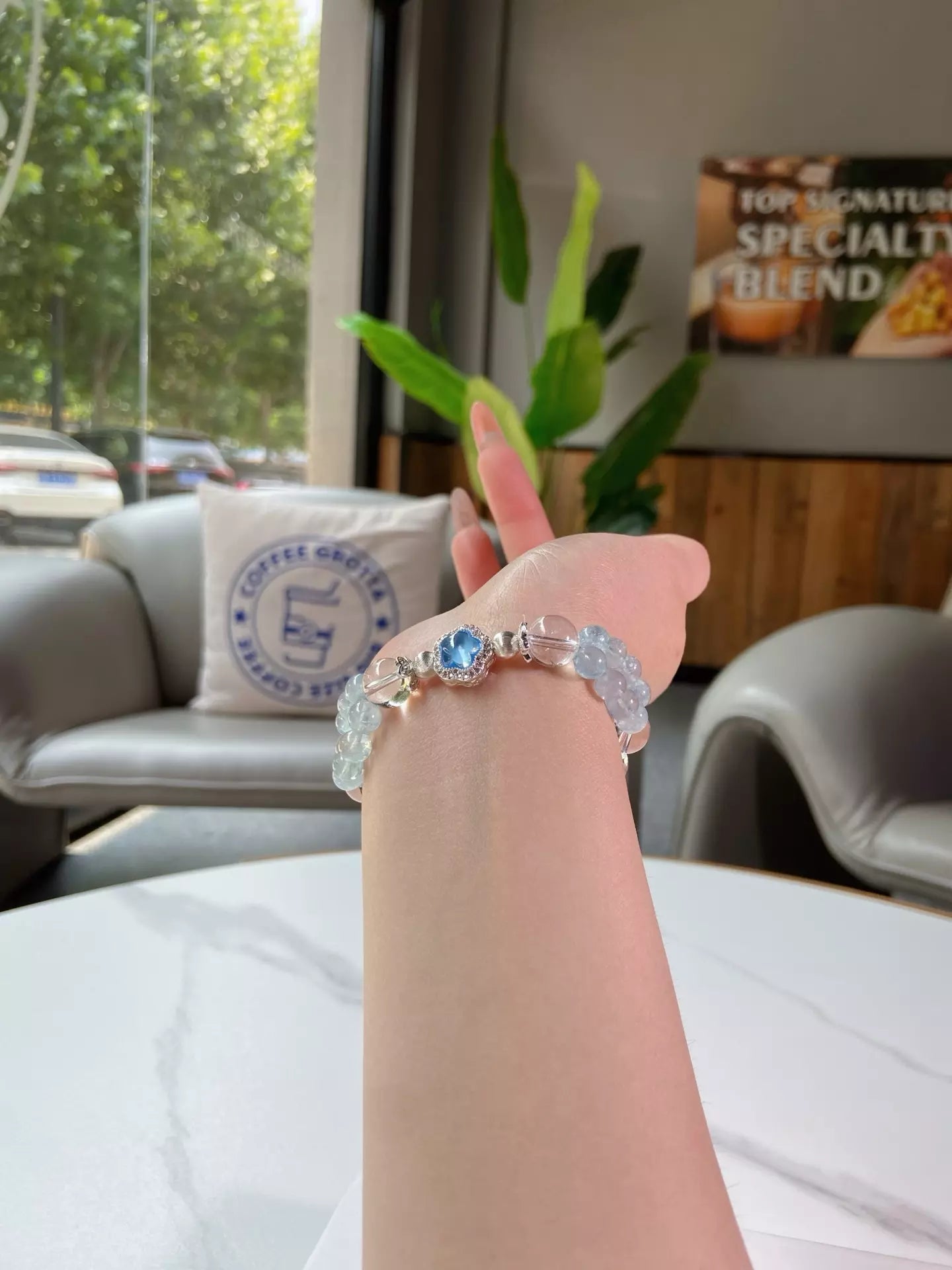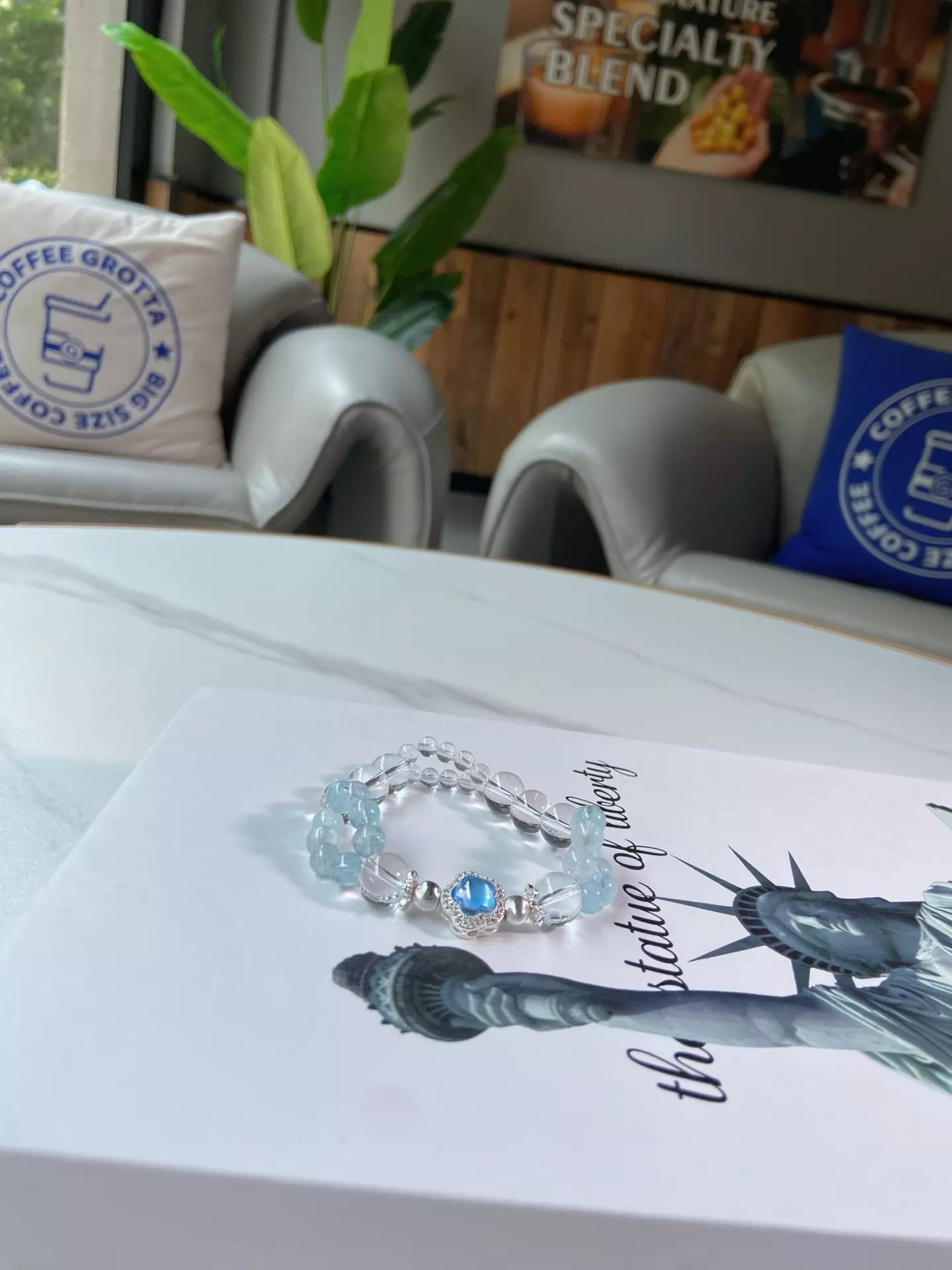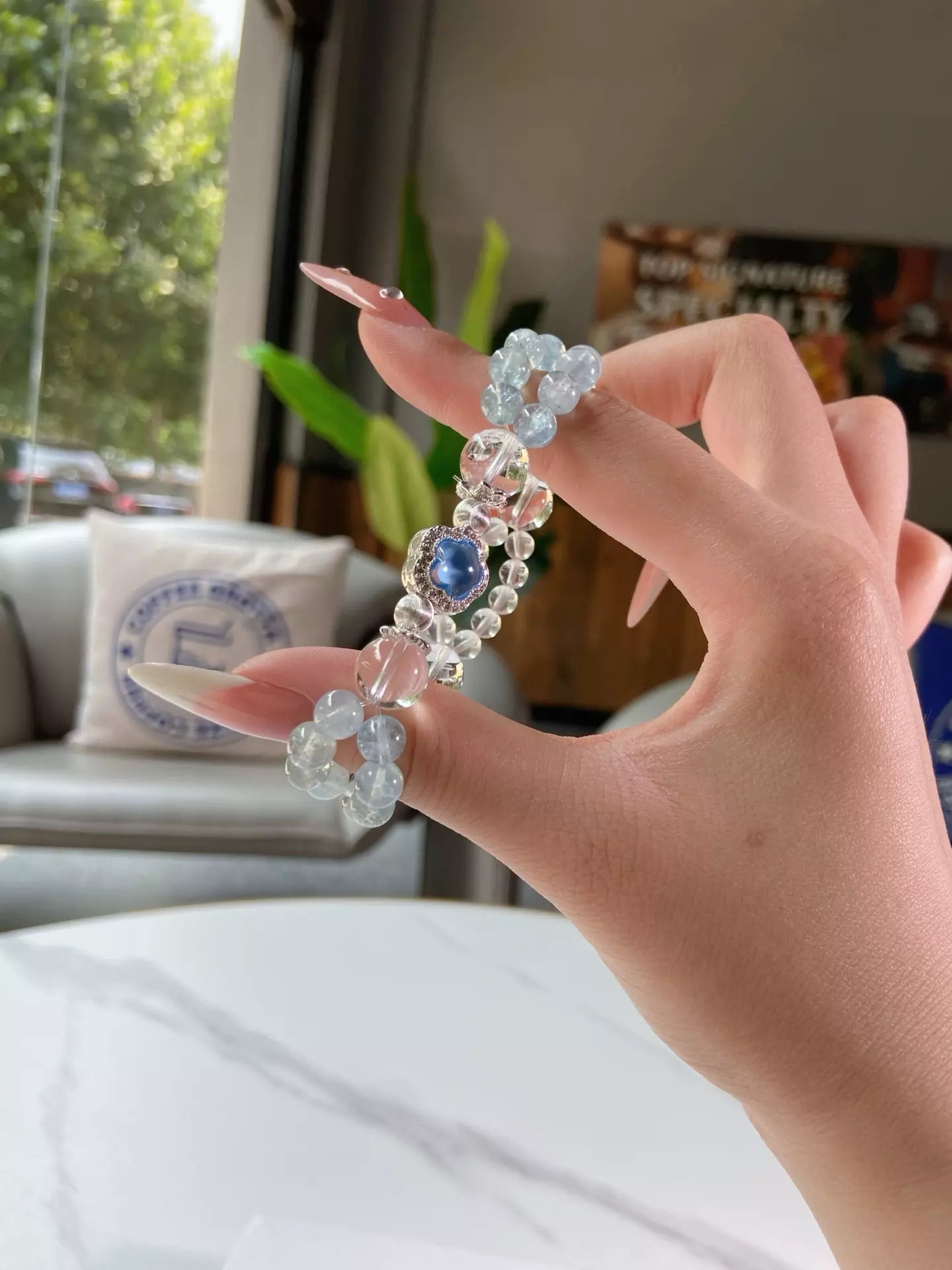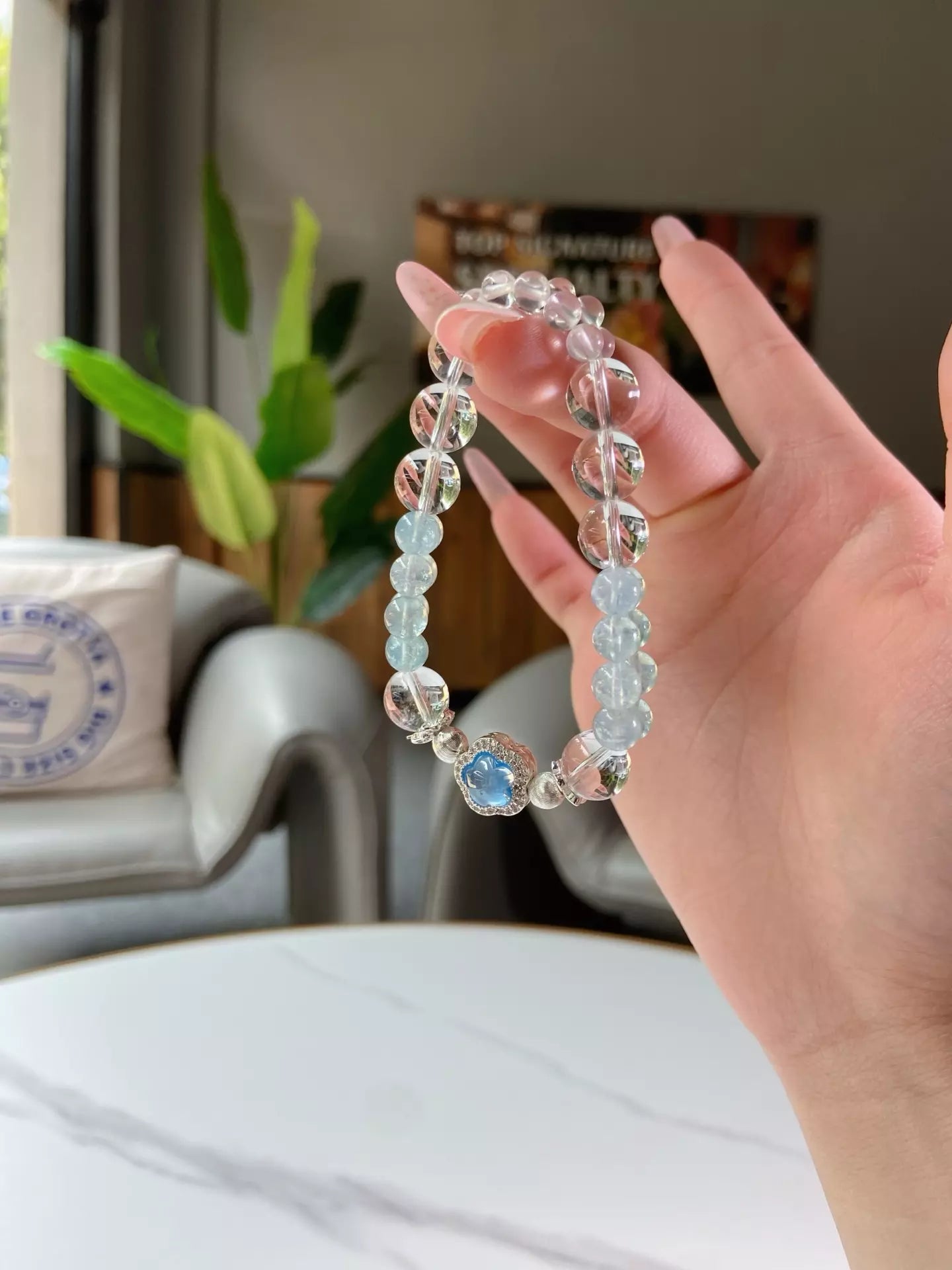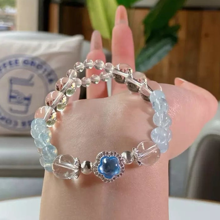 Slip on this ethereal bracelet, where ice-clear quartz glows like moonlit frost ❄️ and sky-kissed aquamarine carries the fresh breath of the ocean 🌊! Let clear quartz sharpen your focus, sweep away draining vibes and balance your mood swings. Aquamarine wraps you in calming seaside energy, nurturing your body and mind. Every bead shimmers with cool elegance, crafting a wearable oasis of peace. Perfect for busy souls craving clarity, calm and a touch of coastal magic 🐚!
