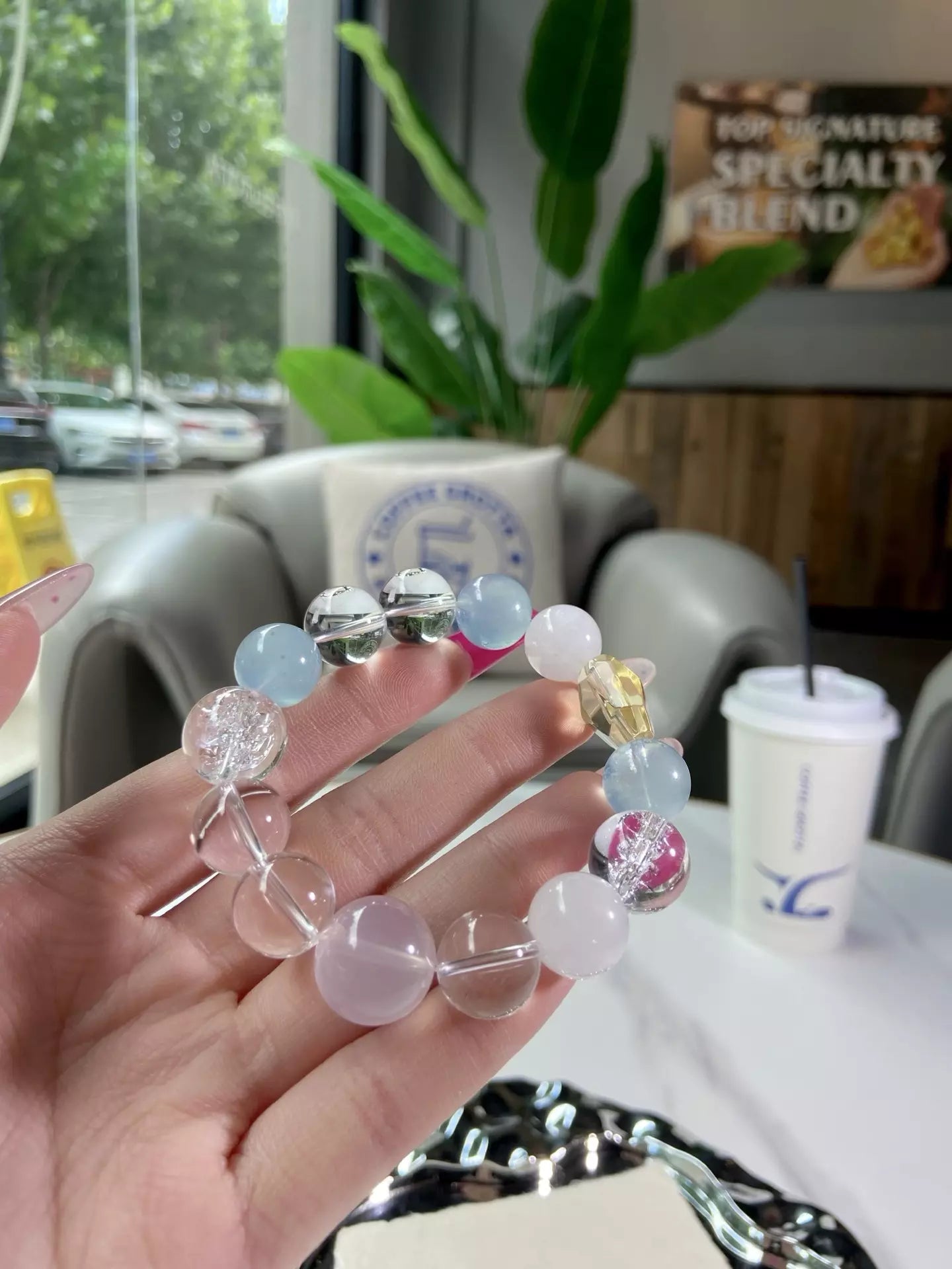 Immerse in the tender, ocean-kissed energy of this bracelet💎🌊! Aquamarine wraps you in a protective shield, easing discomfort and boosting inner confidence✨. Rose Quartz fosters sweet love and warm intimacy, while Clear Quartz & White Phantom purify negative vibes. Himalayan Quartz nurtures self-acceptance and gentle healing. Its soft pink-blue-yellow-white-clear palette glows like sea foam under sunlight—wear daily to embrace peace, love and heartfelt serenity💫!