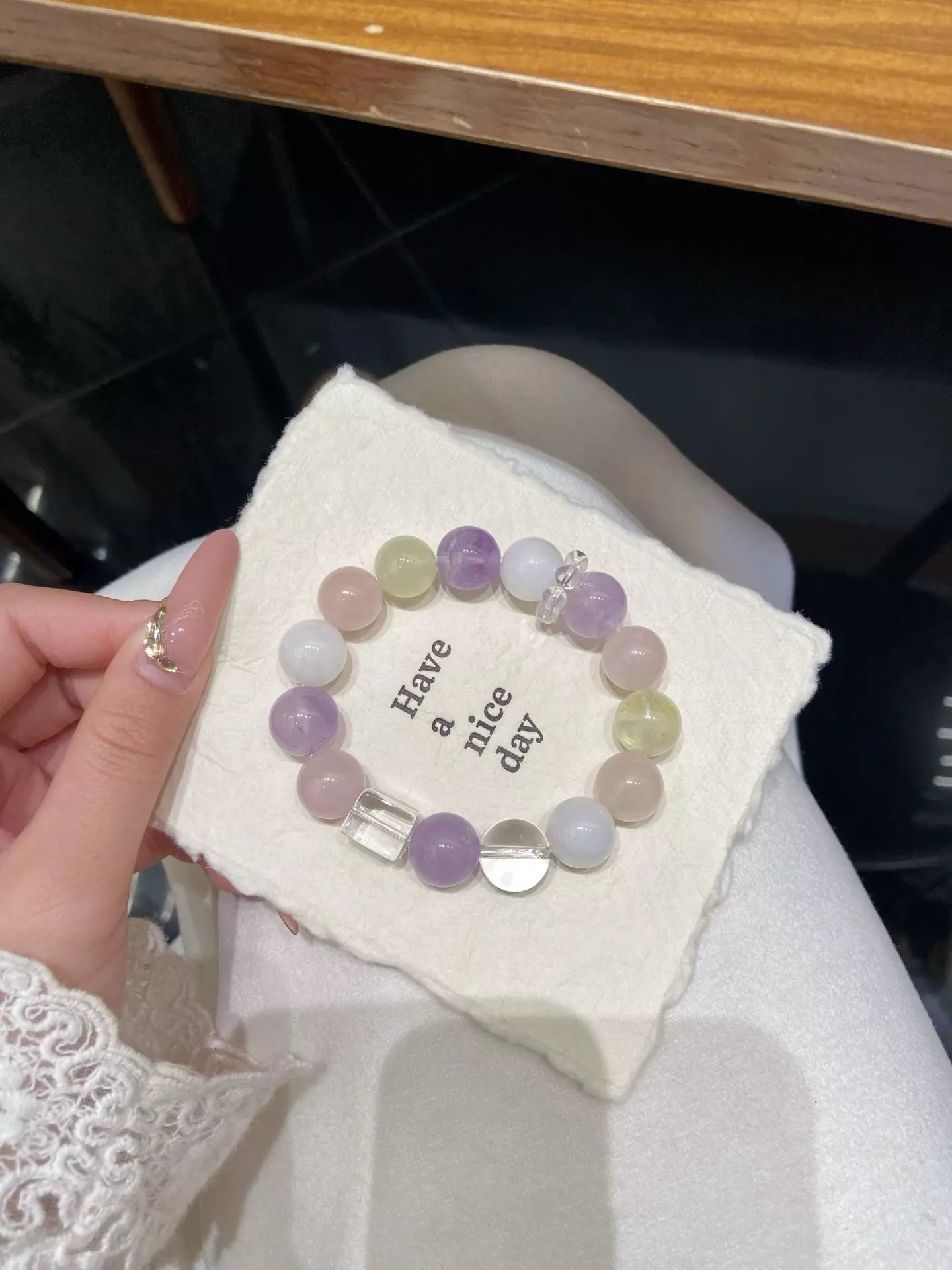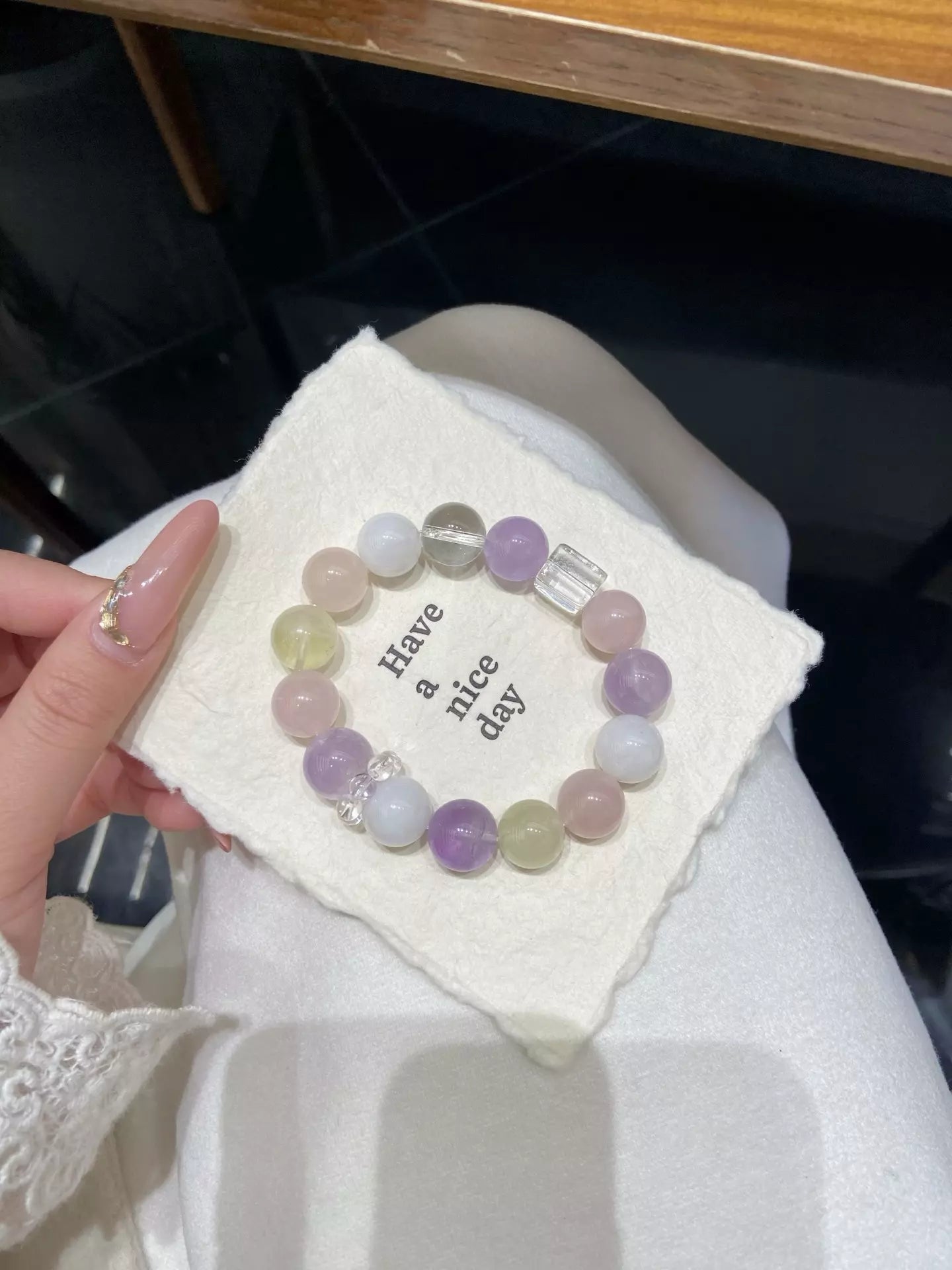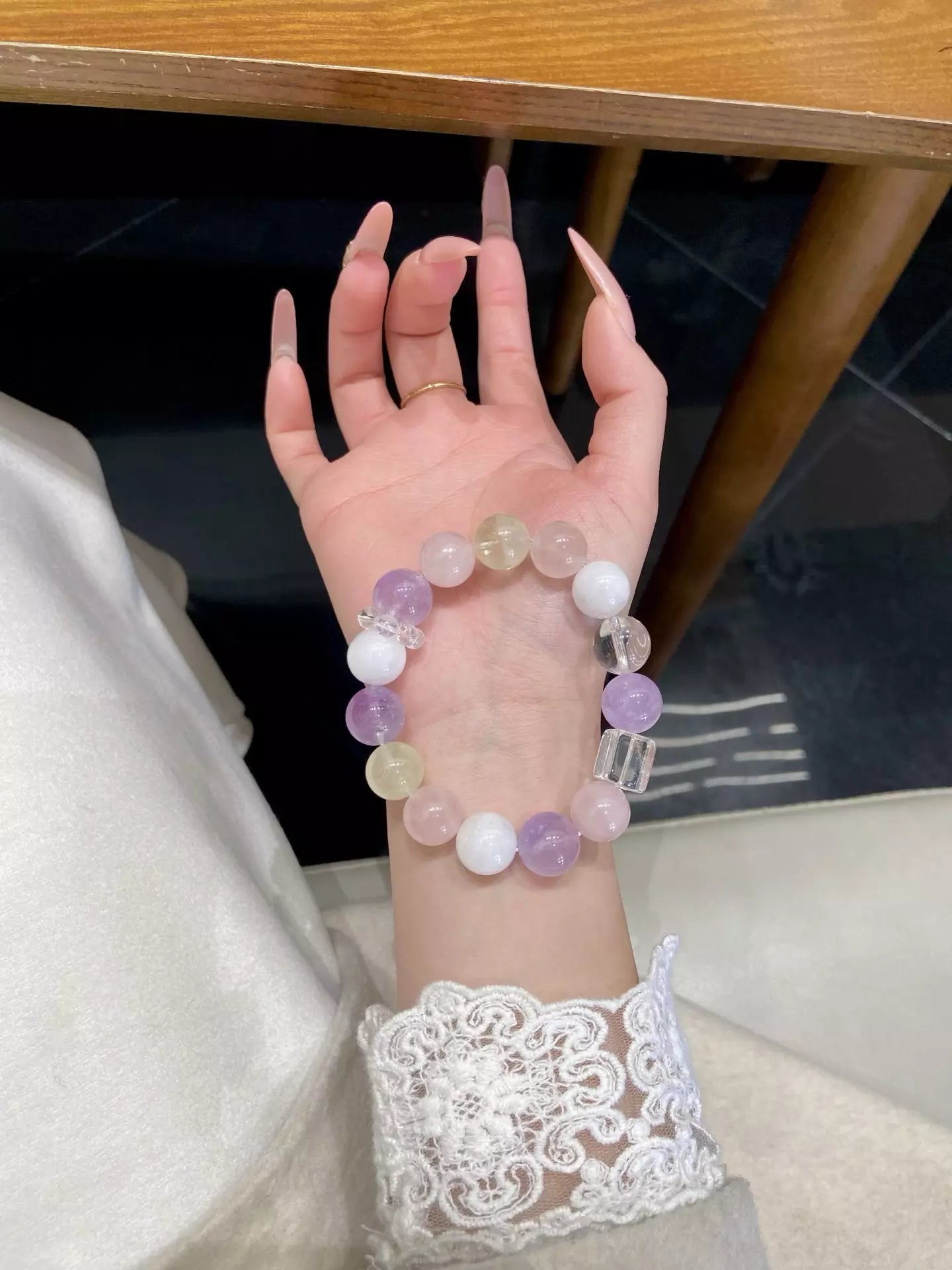 Immerse in the soft, luminous energy of this bracelet💎✨! Rose Quartz fosters warm love and gentle self-healing, while Citrine ignites joy and confidence. Amethyst awakens inner wisdom, and White Phantom & Clear Quartz purify energy for holistic wellness. Its dreamy pink-purple-yellow-clear-white palette glows like aurora over snow—wear daily to embrace tenderness, courage and sweet serenity💫!