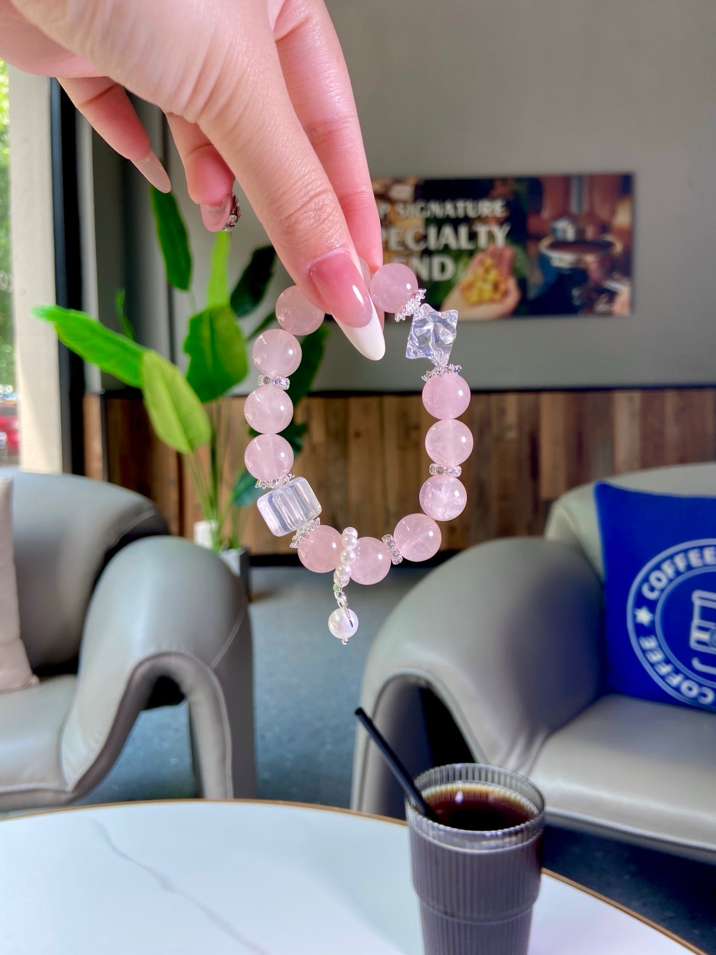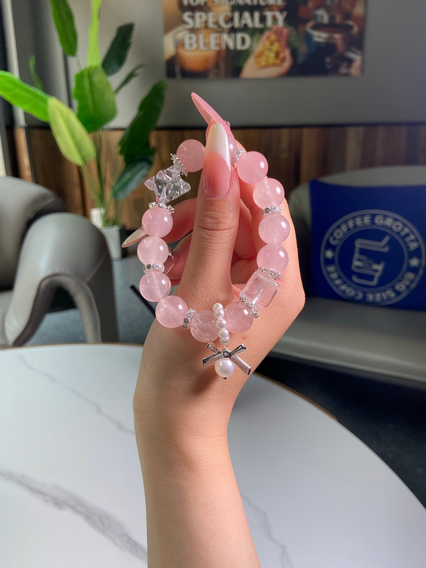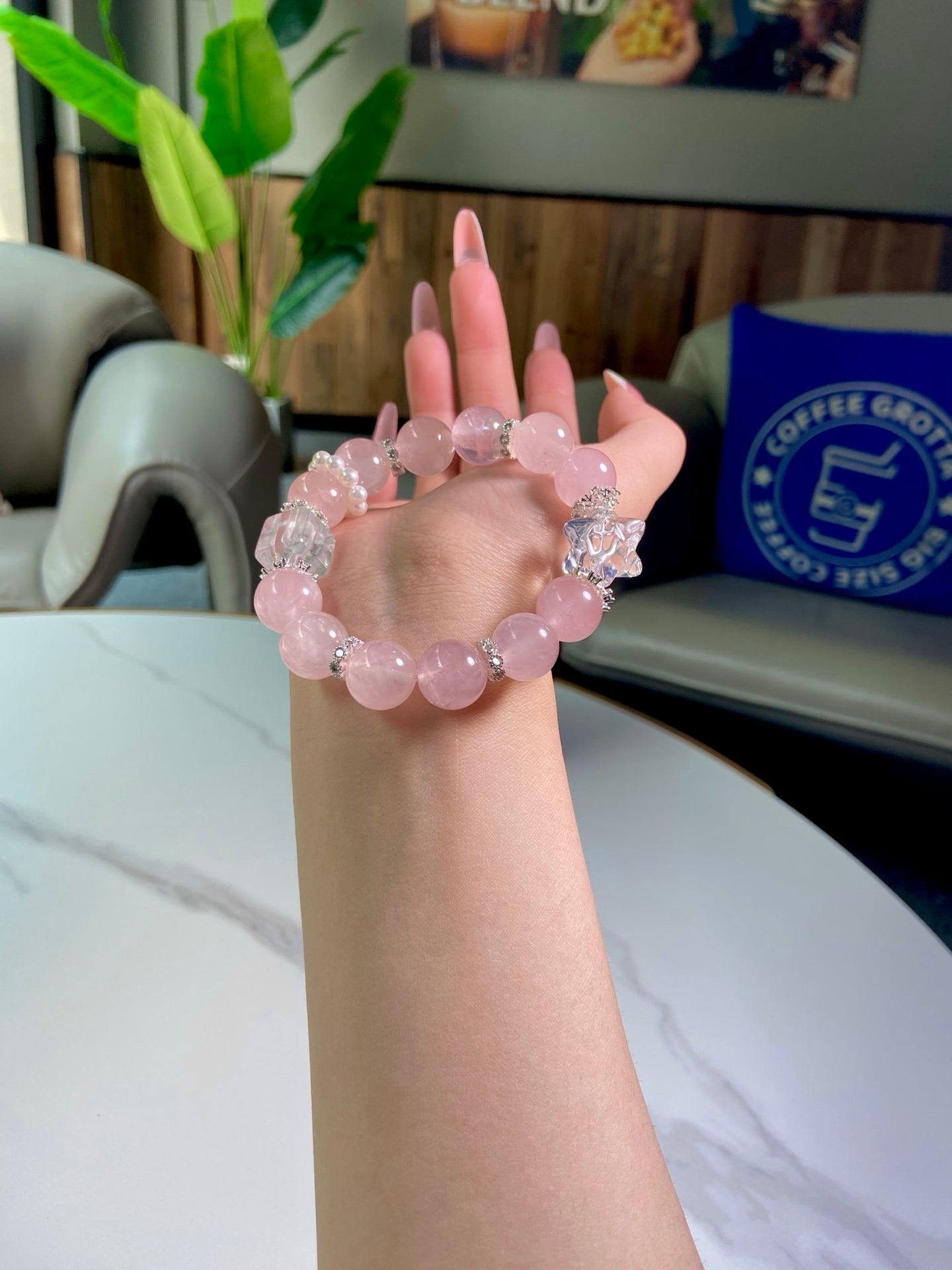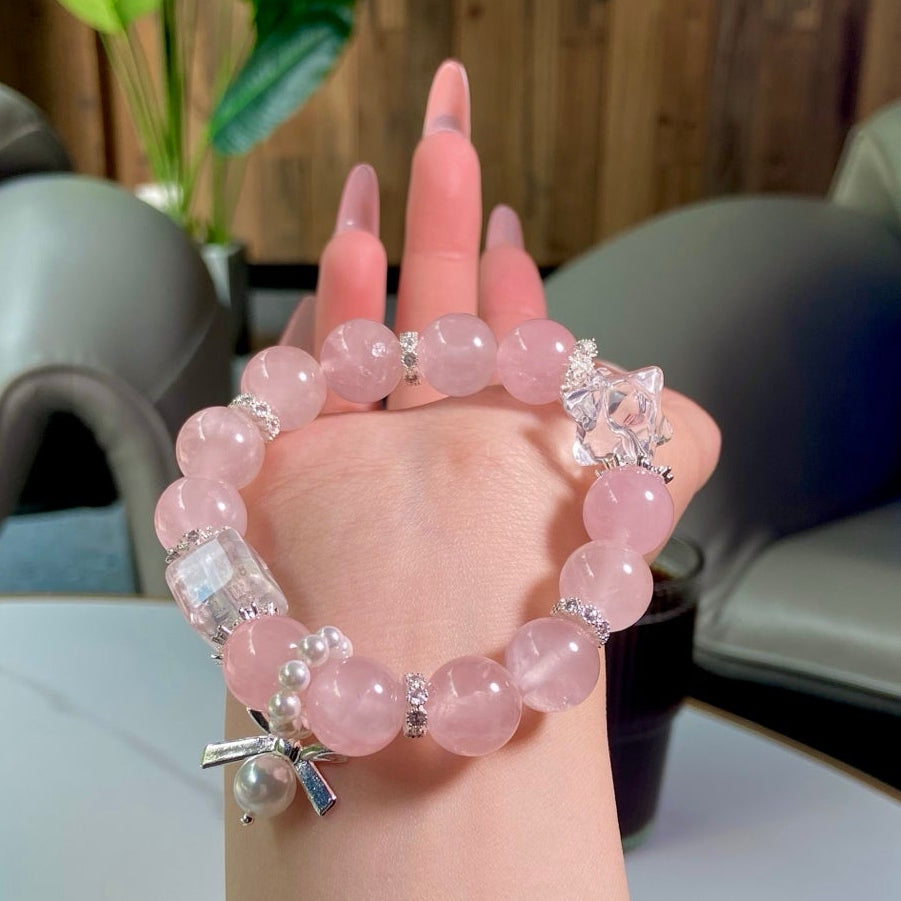 Immerse yourself in the elegant allure of this crystal piece! Rose Quartz glows with tender pink charm 💖, like snowflakes dusted with blushing dawn light, while White Crystal shines with crystal-clear purity 🤍, echoing the quiet twinkle of distant stars. White Crystal boosts your focus and memory 🧠, sweeps away negative auras 🧹, and lulls your mood into peaceful calm. This delicate treasure is a perfect ode to grace, ideal for adding a touch of serenity to your daily style!