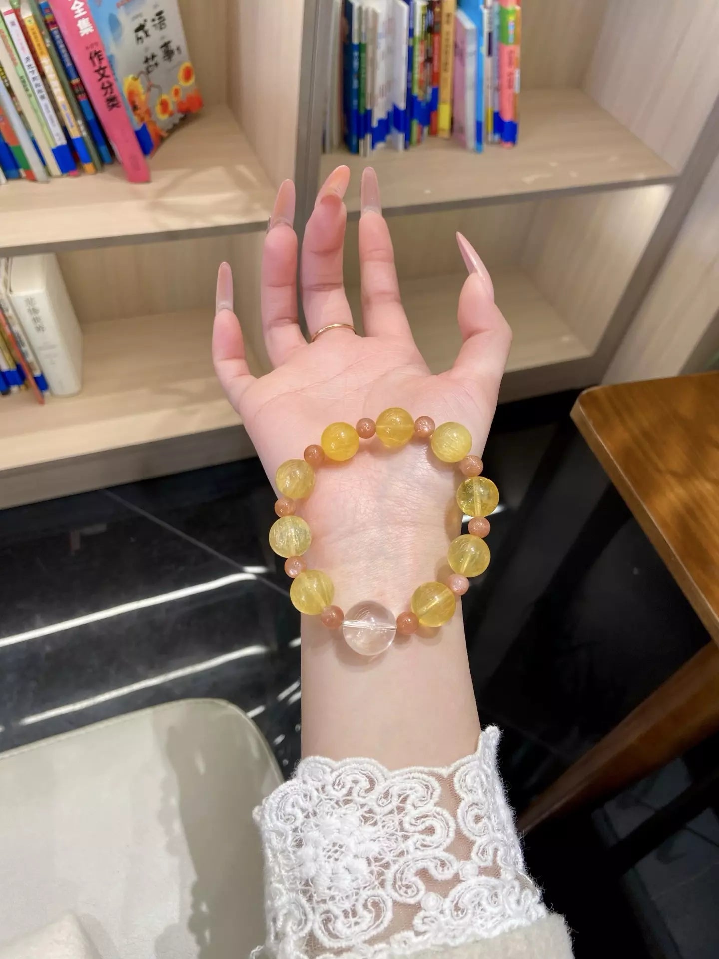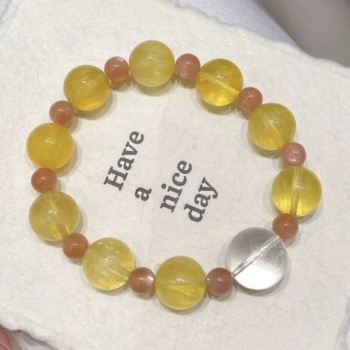 Immerse in the gentle, luminous energy of this bracelet💎✨! Yellow Fluorite sharpens focus and sparks creativity, while Sunstone soothes restless moods and revitalizes your spirit. Clear Quartz purifies negative vibes and amplifies positive energy flow. Its soft yellow-clear palette glows like flowing gold under plain radiance—wear daily to embrace clarity, inspiration and holistic well-being💫!