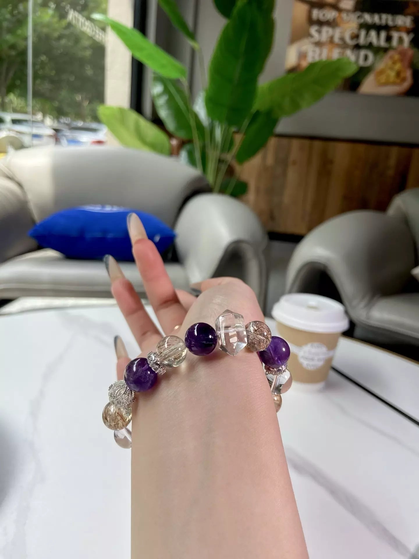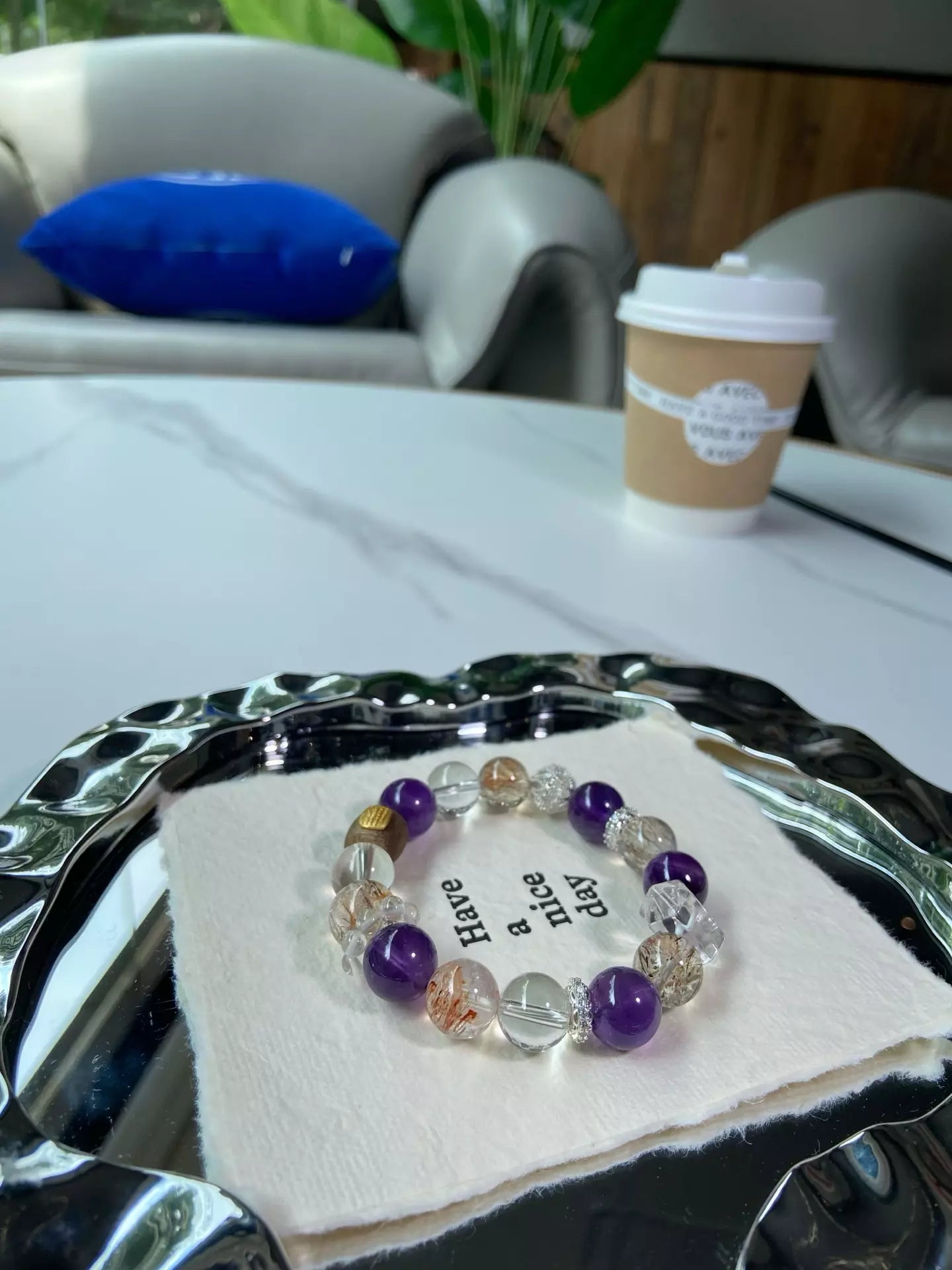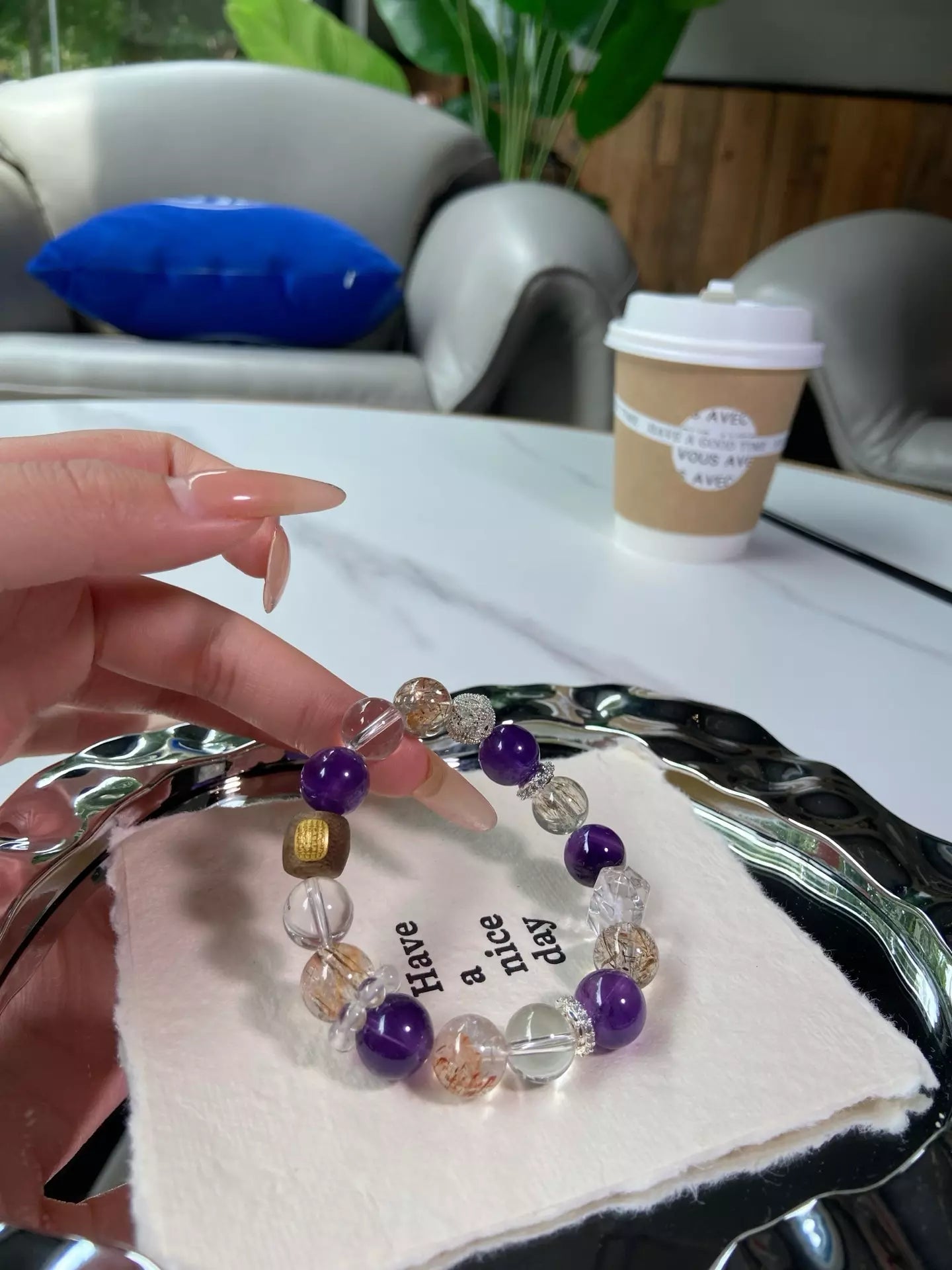 Immerse in the balancing, revitalizing energy of this crystal trio💎! Amethyst wraps you in calming violet vibes 😌, soothing restless emotions and easing aches gently. Black Gold Super Seven ignites your inner spark ⚡, boosting vitality to chase daily goals with zest. Clear Quartz acts as a powerful energy cleanser 🧹, wiping out fatigue to help you drift into deep, restful sleep 🌙. Its sleek purple-black-clear palette feels edgy yet elegant—perfect for everyday wear. Wear daily to stay refreshed ✨, balanced and pain-free!