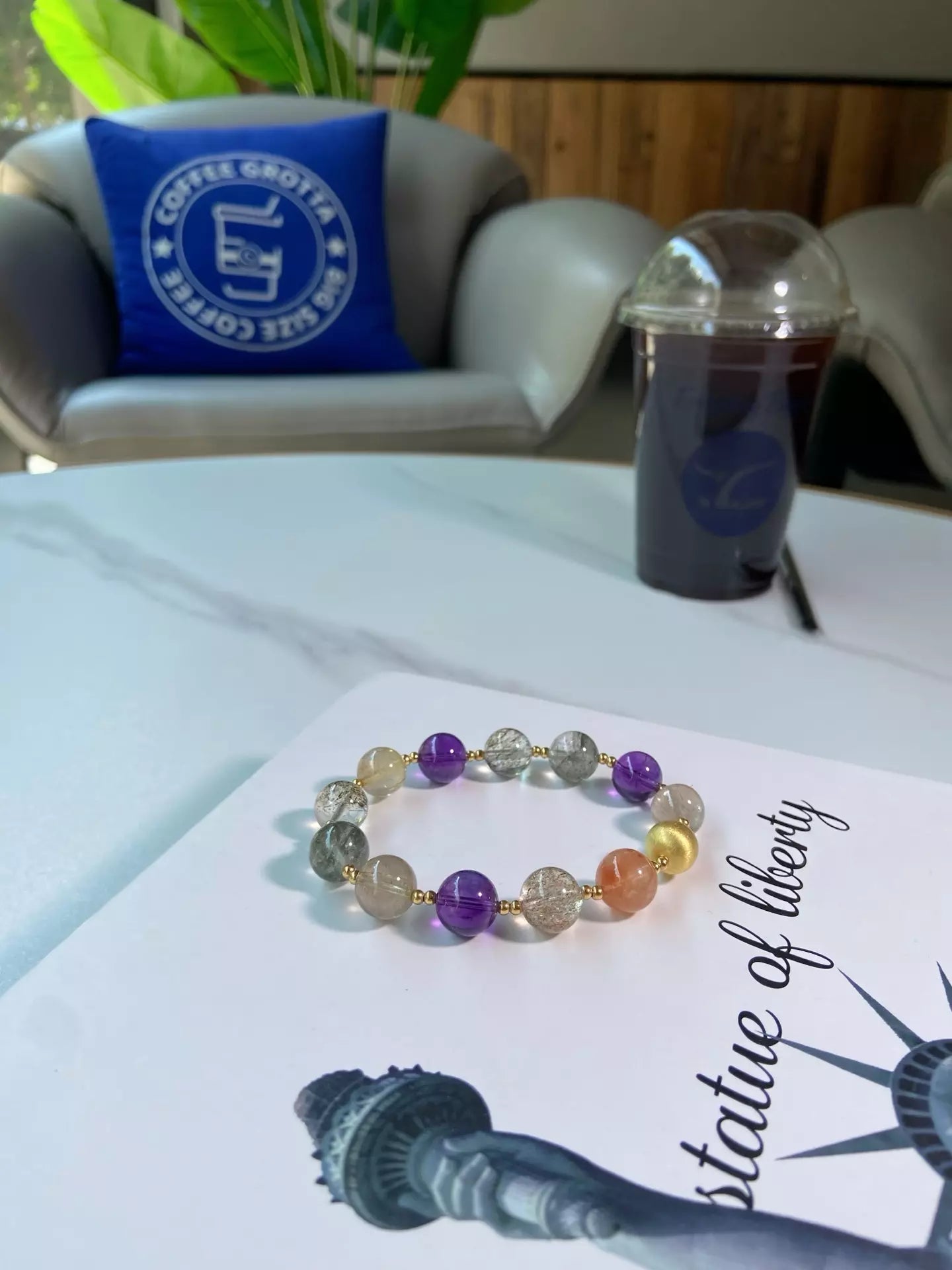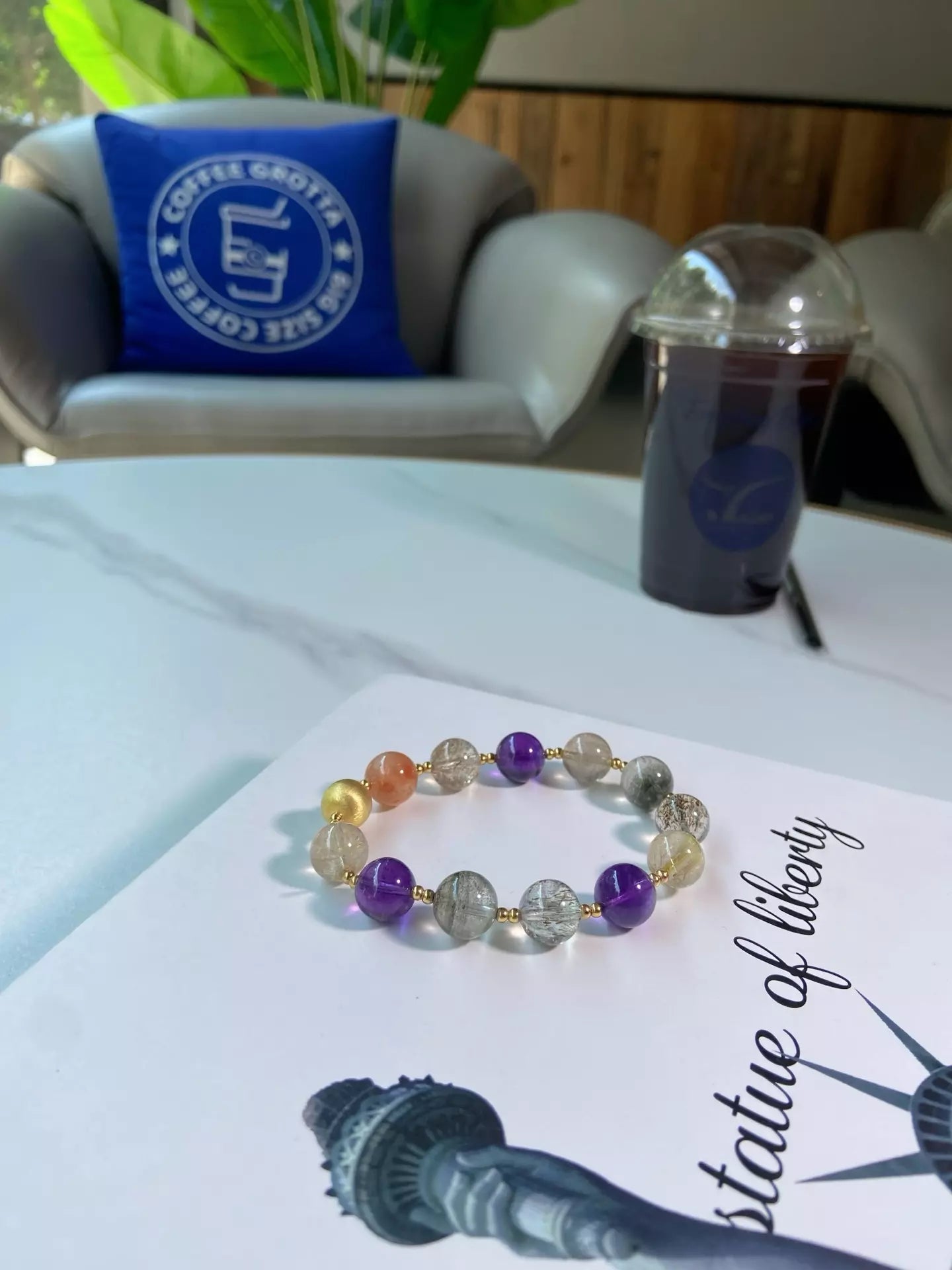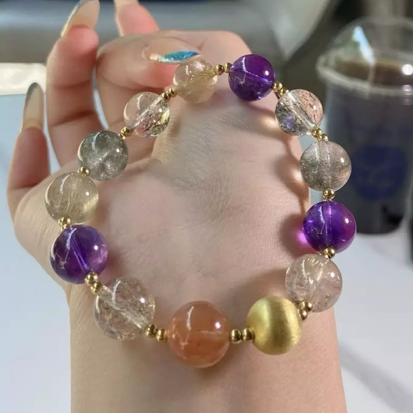 Immerse in the nourishing, revitalizing energy of this bracelet💎✨! Green Phantom fosters holistic well-being, while Amethyst calms your mind and upgrades sleep quality. Golden Rutilated Quartz boosts skin radiance for a glowing look, Black Gold Super Seven purifies negative vibes, and Red Rabbit Hair Crystal balances your body’s energy flow. Its regal purple-clear-red palette shines like a noble star—wear daily to embrace vitality, beauty and restful nights💫!
