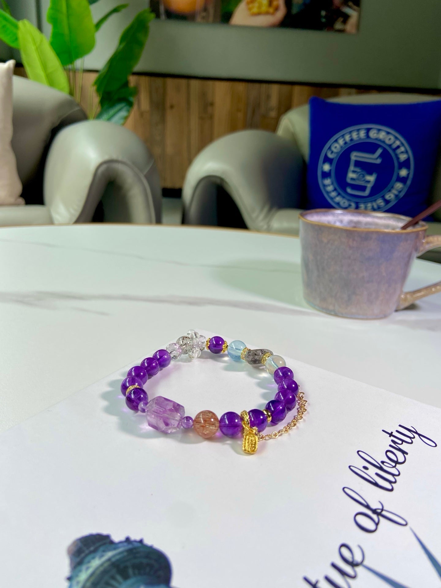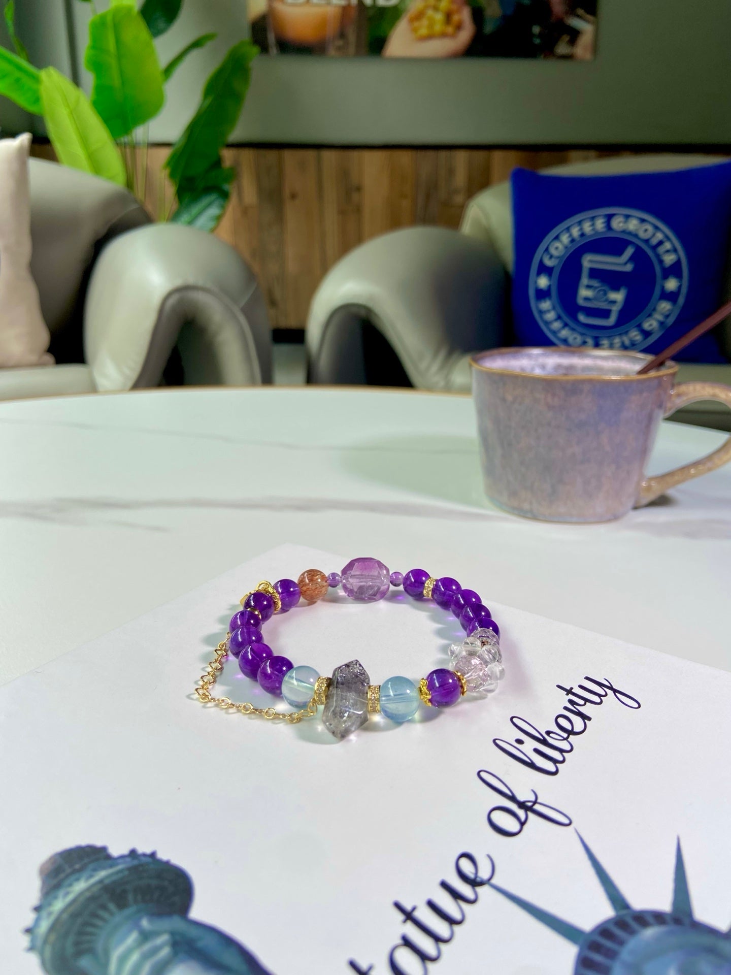 Crafted with a celestial blend of Amethyst, Aquamarine, Black Gold Super Seven, and Venom Crystal 🧊, this purple stunner is more than jewelry — it’s your daily dose of power & protection!