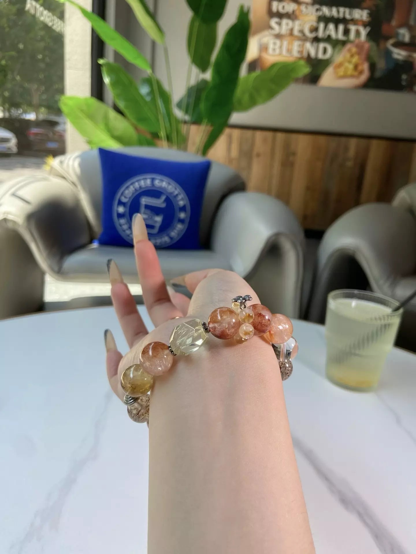 Immerse in the vibrant, nourishing energy of this bracelet💎✨! Red Hematoid Quartz & Clear Quartz calm your restless mind and sharpen thinking clarity🧠. Citrine Pagoda Crystal nourishes your body and enhances skin radiance for a glowing look✨. Black Gold Super Seven shields you from negative vibes, while the red-clear-yellow palette shines brightly. Wear daily to embrace vitality, elegance and a focused state of mind💫!