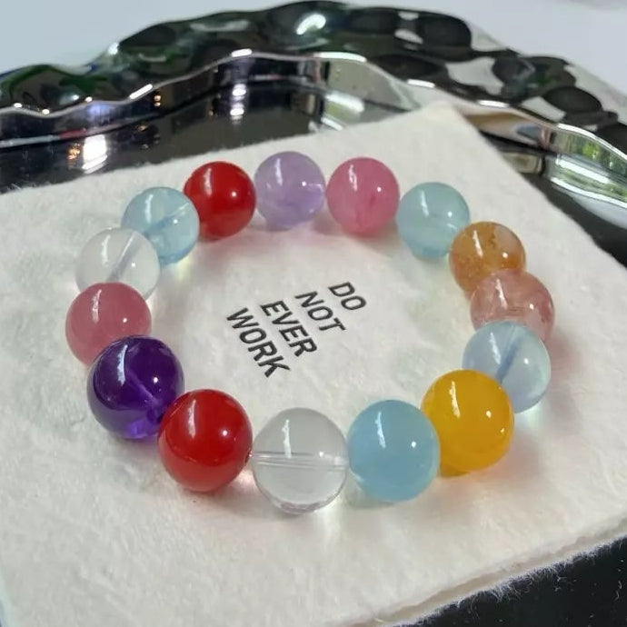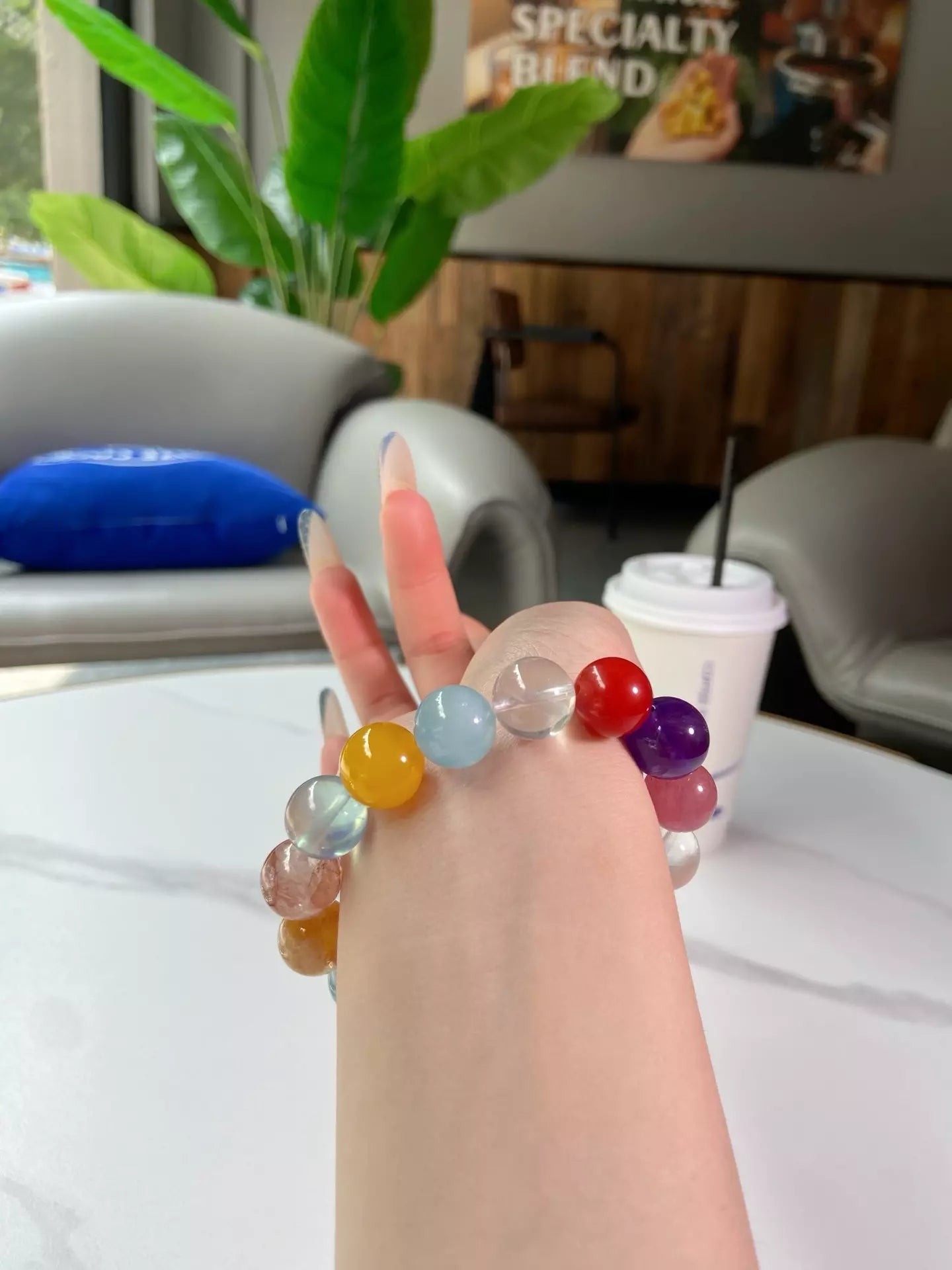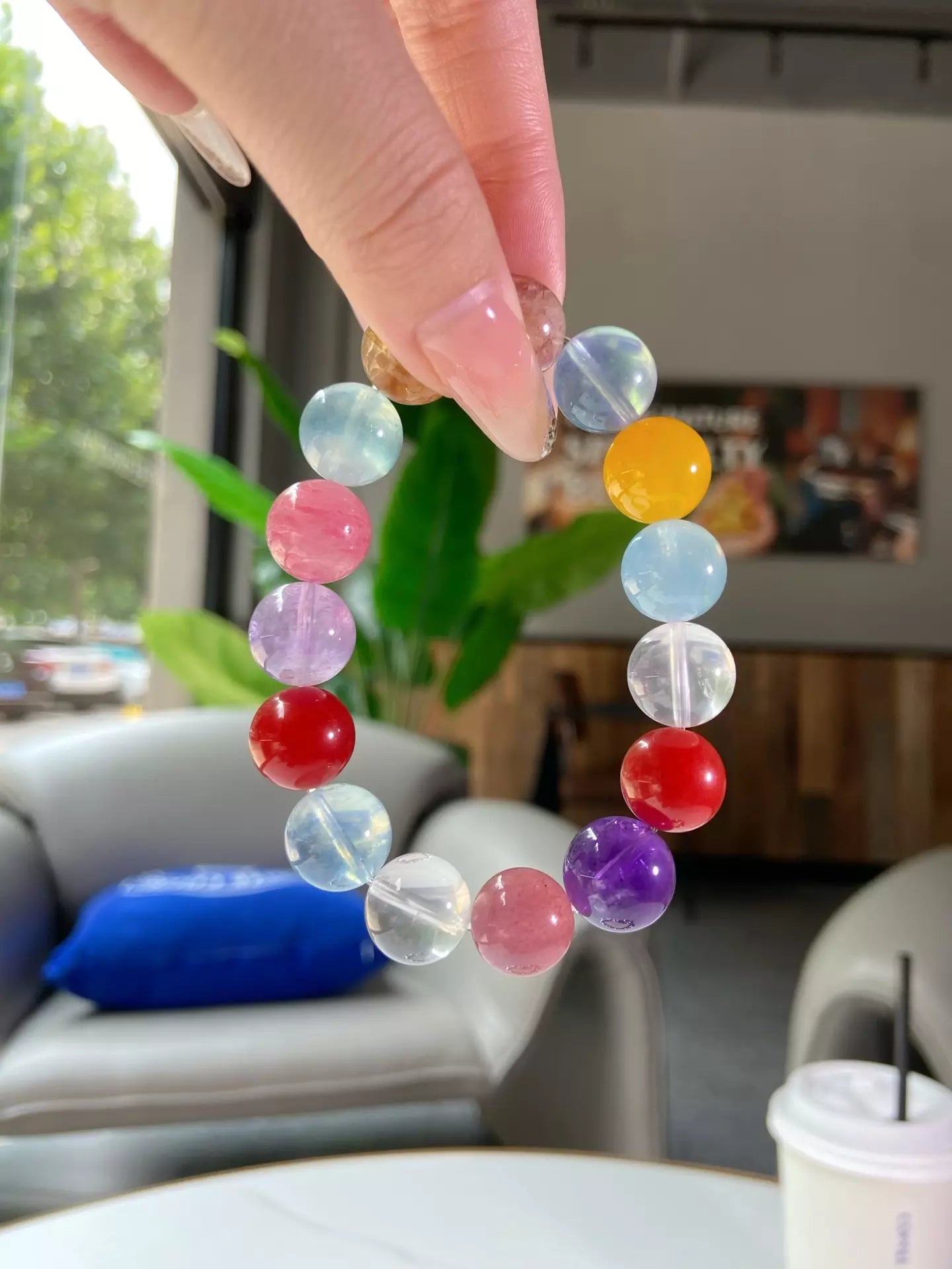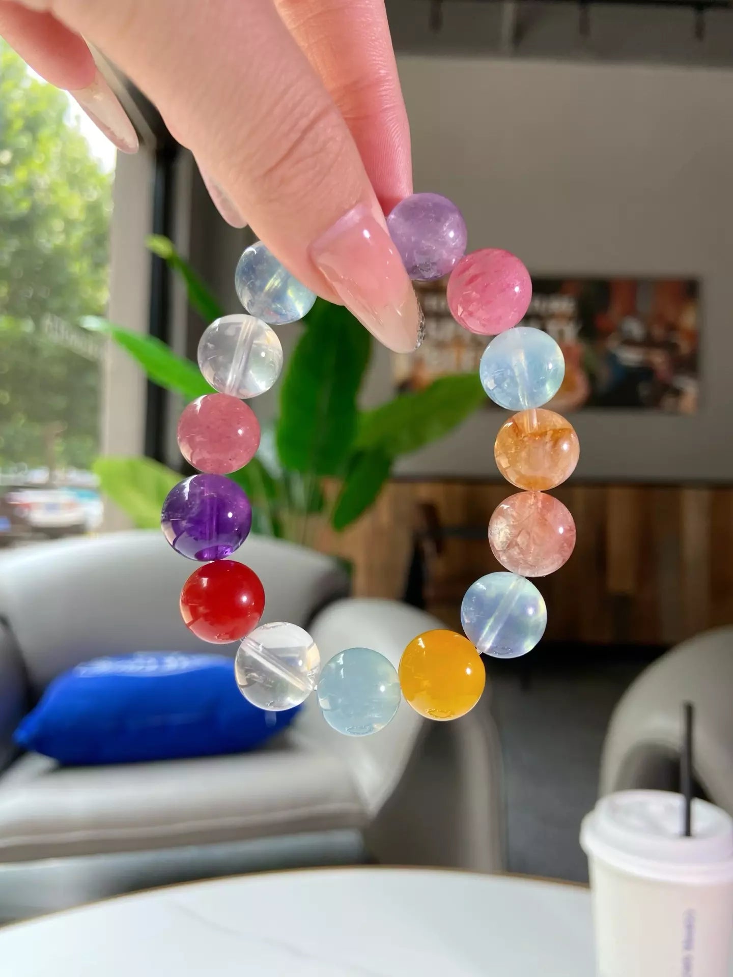 Immerse in the lucky, vibrant energy of this star-style bracelet💎! Yellow Agate and Yellow Tower Quartz draw wealth and prosperity 💰, Aquamarine calms your mind 🌬️, and Red Rutile boosts passion. Rhodonite nurtures warmth, Amethyst brings wisdom 🧠, Strawberry Quartz amps up charm, and Milky White Quartz purifies vibes. Its colorful mix shines bright—trendy and blessed. Wear daily to stay lucky ✨, upbeat 😊 and surrounded by abundant good fortune!
