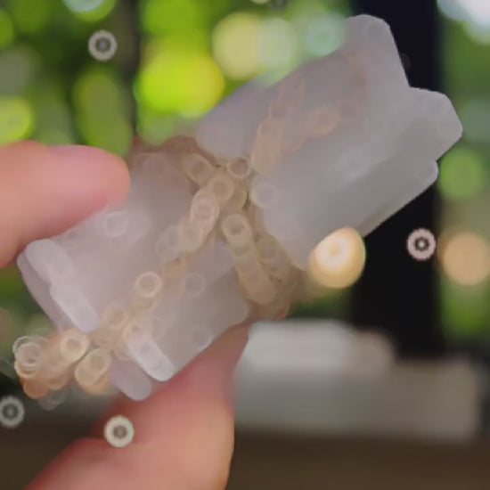 WHAT IS IT: This sleek selenite wand is hand-selected with gentle care, featuring a luminous milky-white hue and a naturally smooth, elongated shape 🤍. Each piece glows softly when light touches its surface, casting a serene, ethereal radiance—it’s a must-have addition to your crystal collection or a soothing tool for your energy-cleansing and meditation space ✨.