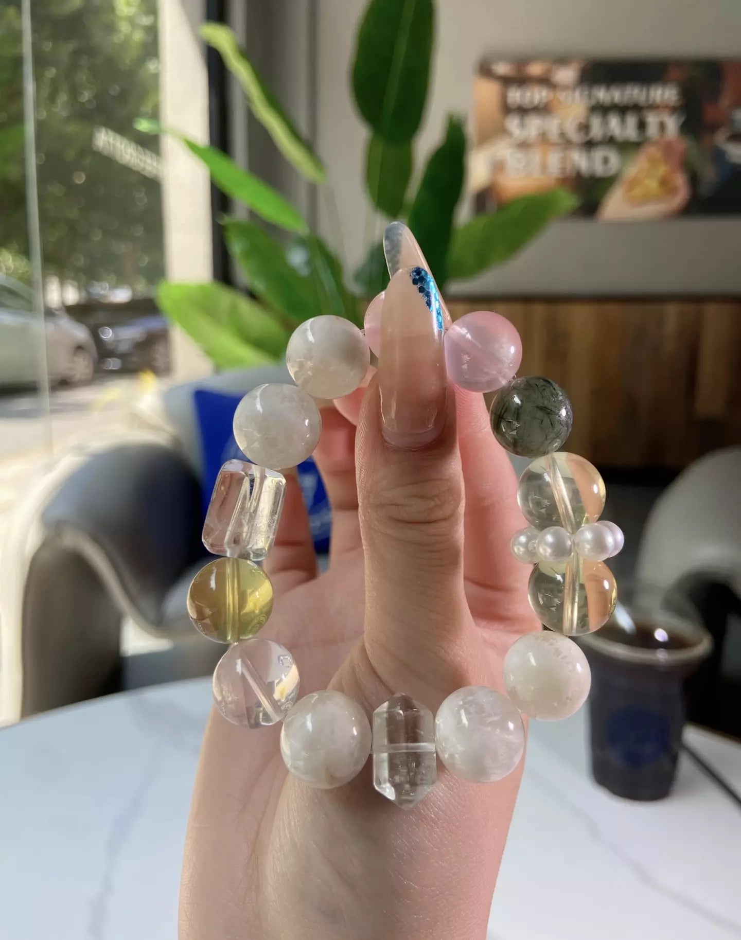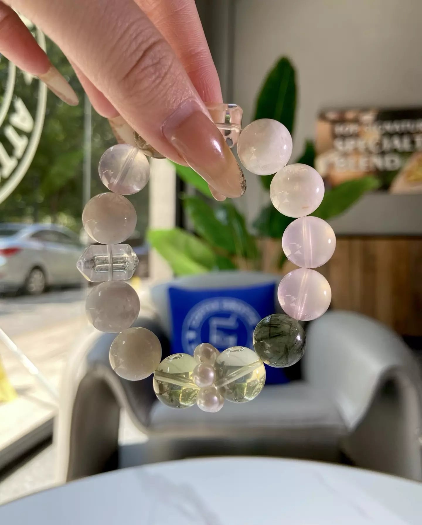 Immerse in the warm, gentle energy of this bracelet💎✨! Rose Quartz boosts your natural charm, Snow Phantom calms your mind and soothes restless nerves😌. Citrine refreshes your spirit and improves complexion, Green Rutilated Quartz purifies your soul and reduces radiation harm. Its soft pink-green-white-yellow-clear palette glows like snow cherry blossoms wrapped in gilded warmth. Wear daily to embrace vitality, peace and glowing vibes💫!