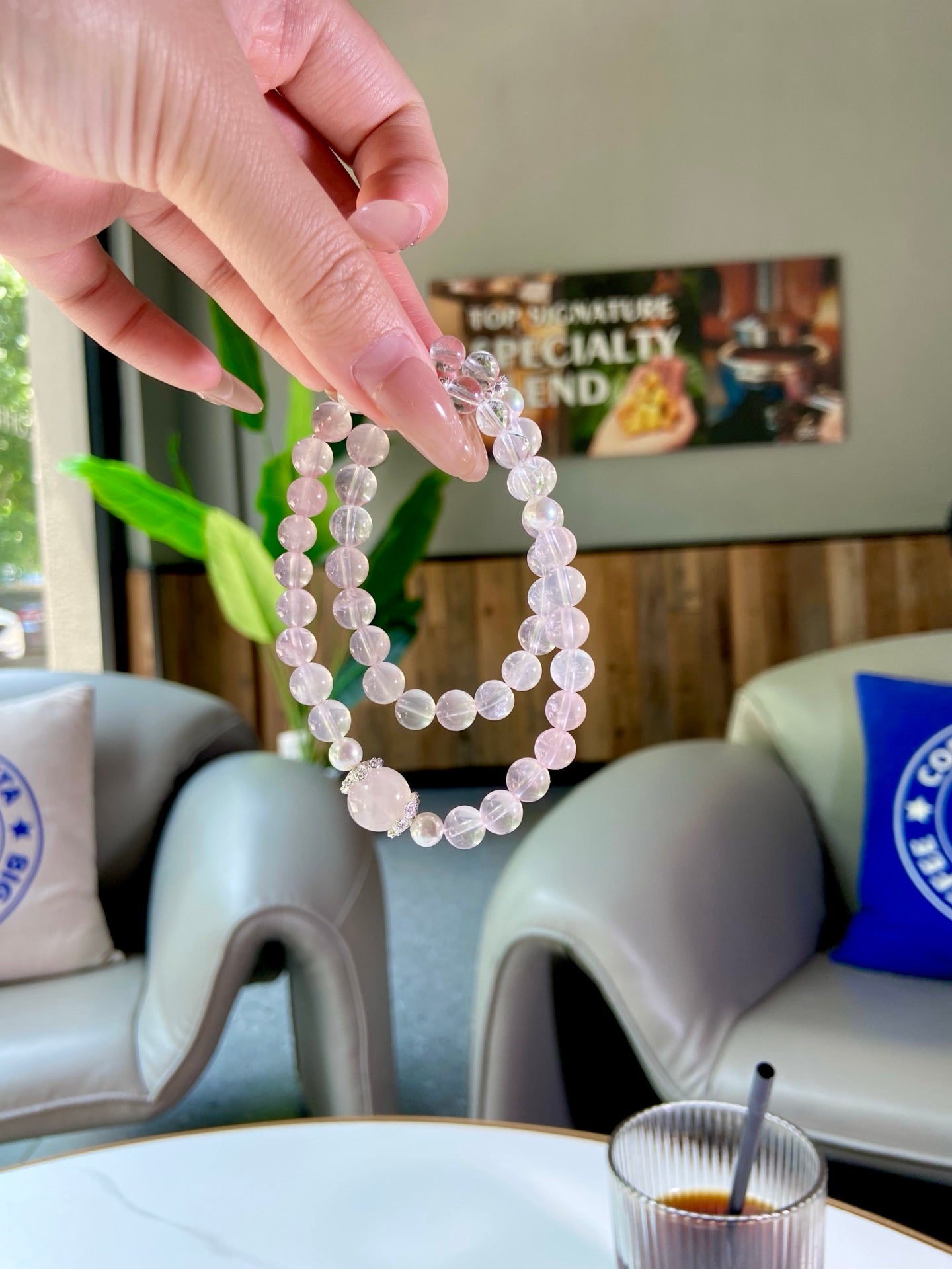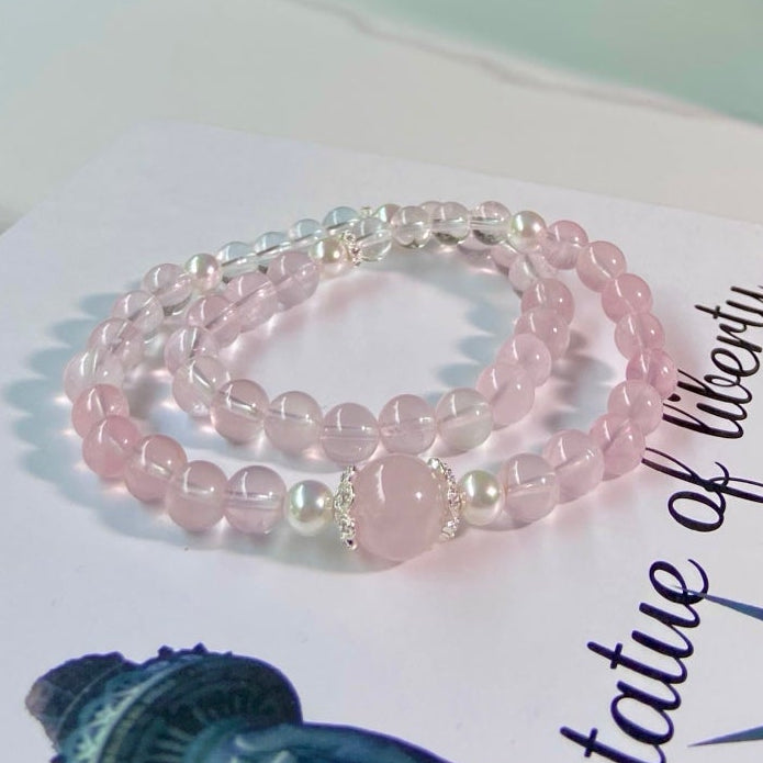 Meanings: Clear Quartz: Enhance concentration & memory, purify negative energy, regulate mood, improve health, promote harmonious interpersonal relationships; Rose Quartz: Attract love & warmth, foster emotional healing