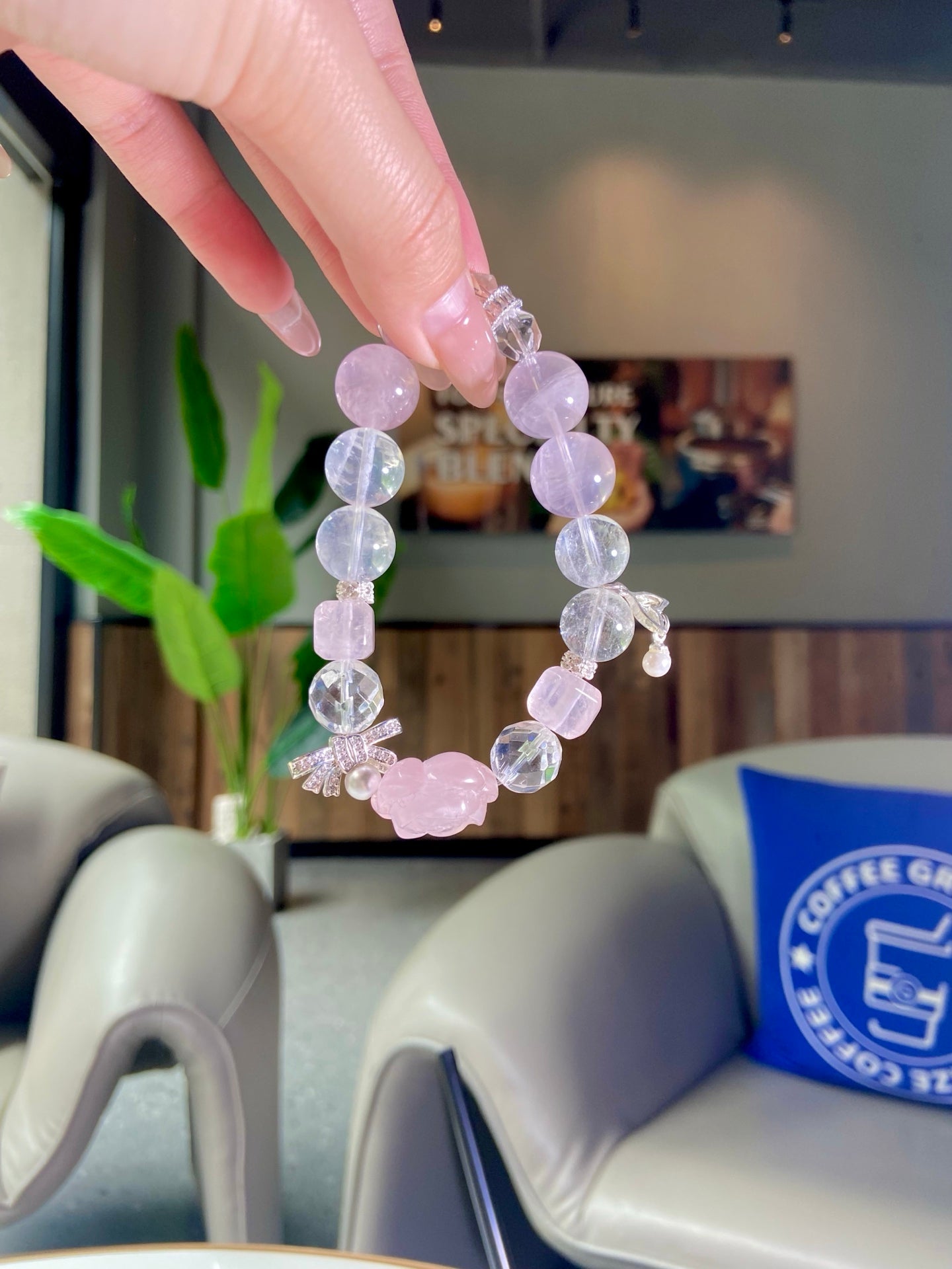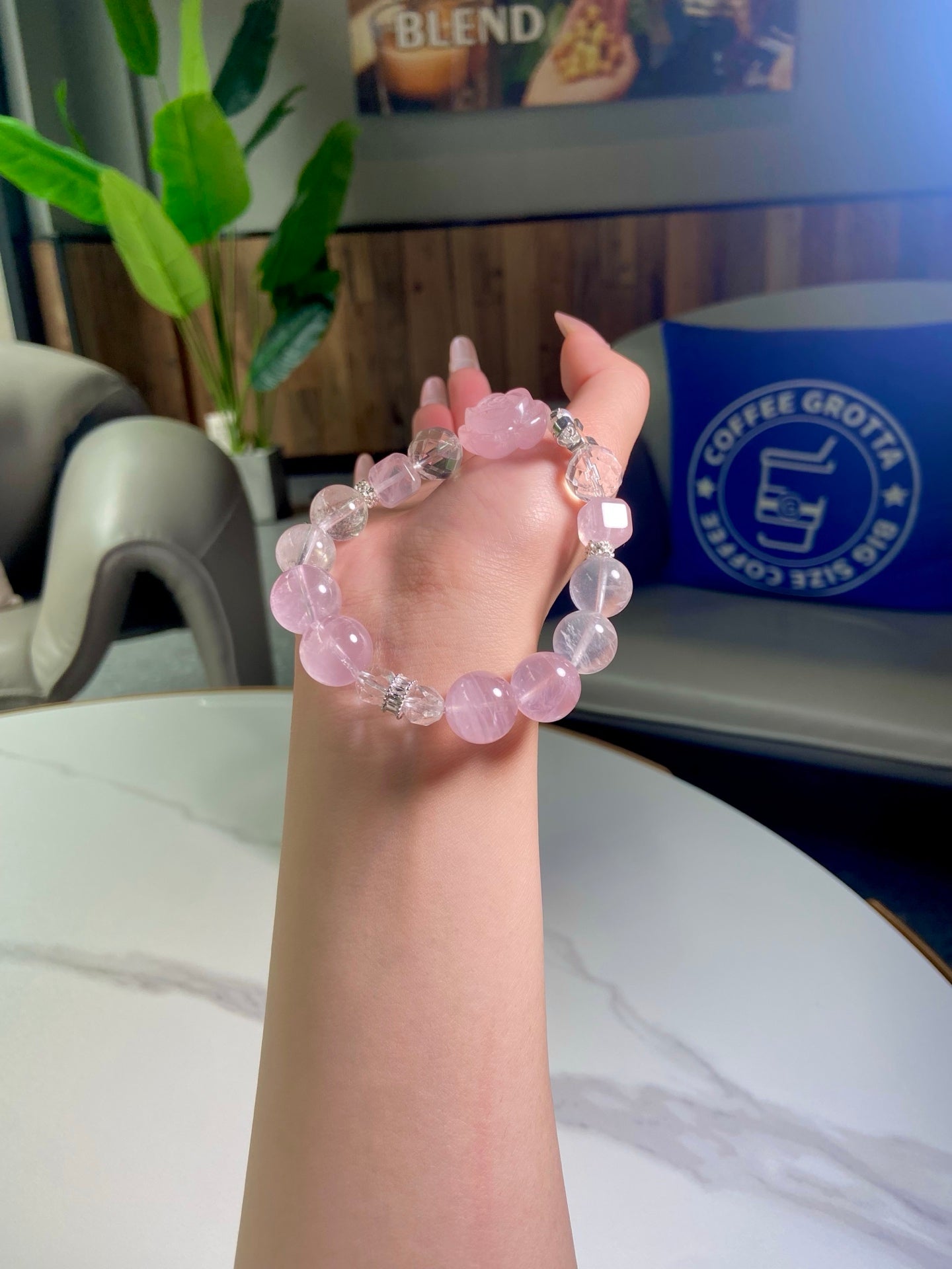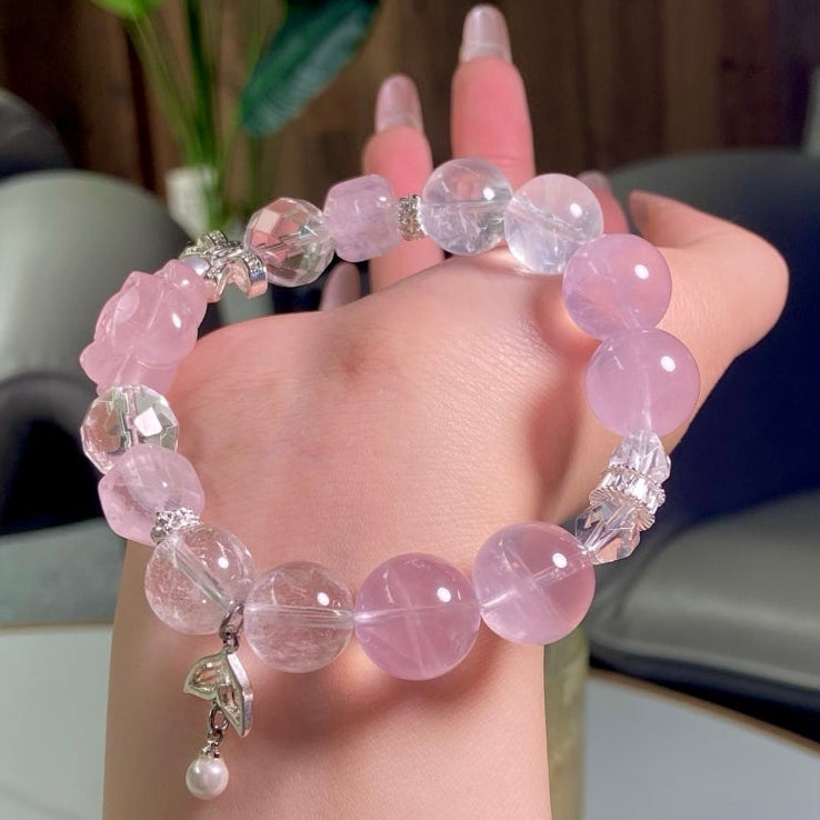 Polished to a luminous sheen, the blend of light pink and crystal clarity exudes gentle elegance. More than an accessory, it’s your daily companion for a positive, balanced life — ideal for adding a touch of delicate charm to any look 🌟!