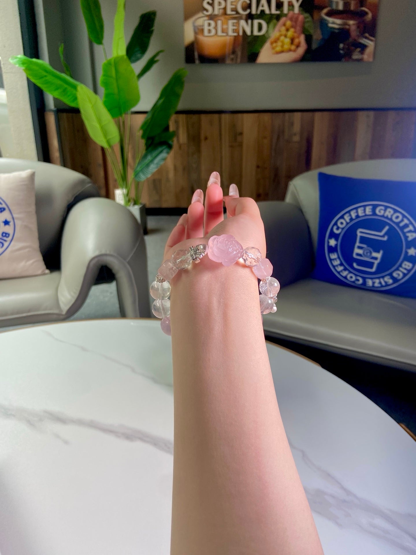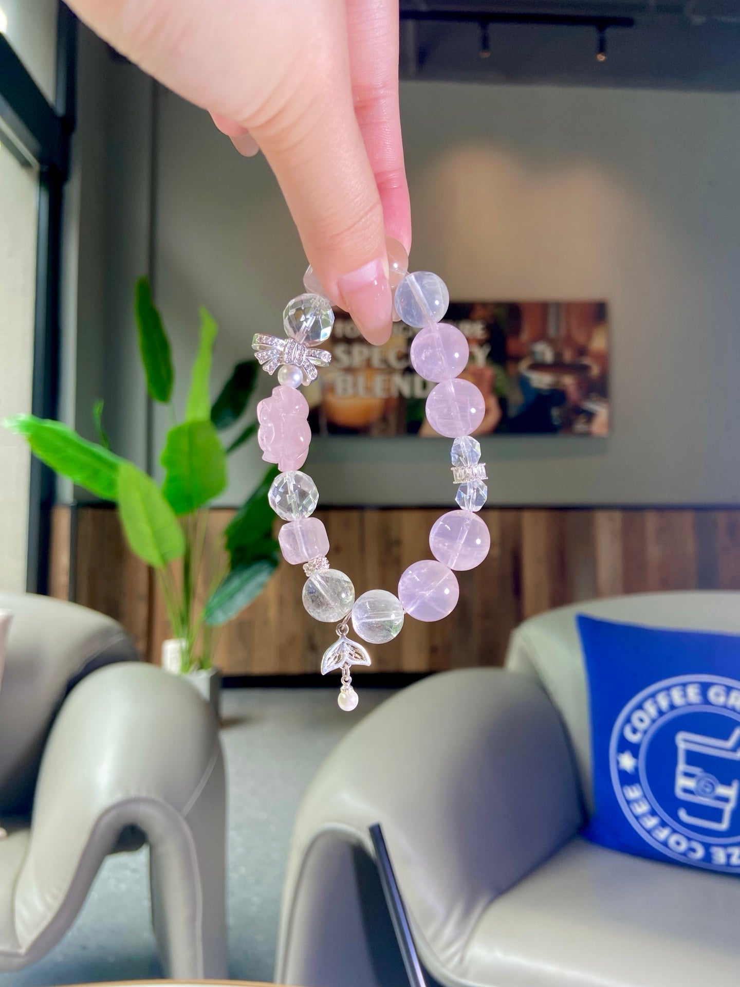 A perfect match: Clear Quartz (transparent, like fresh snow ❄️, pure and bright) and Rose Quartz (soft light pink, like blooming cherry blossoms)!