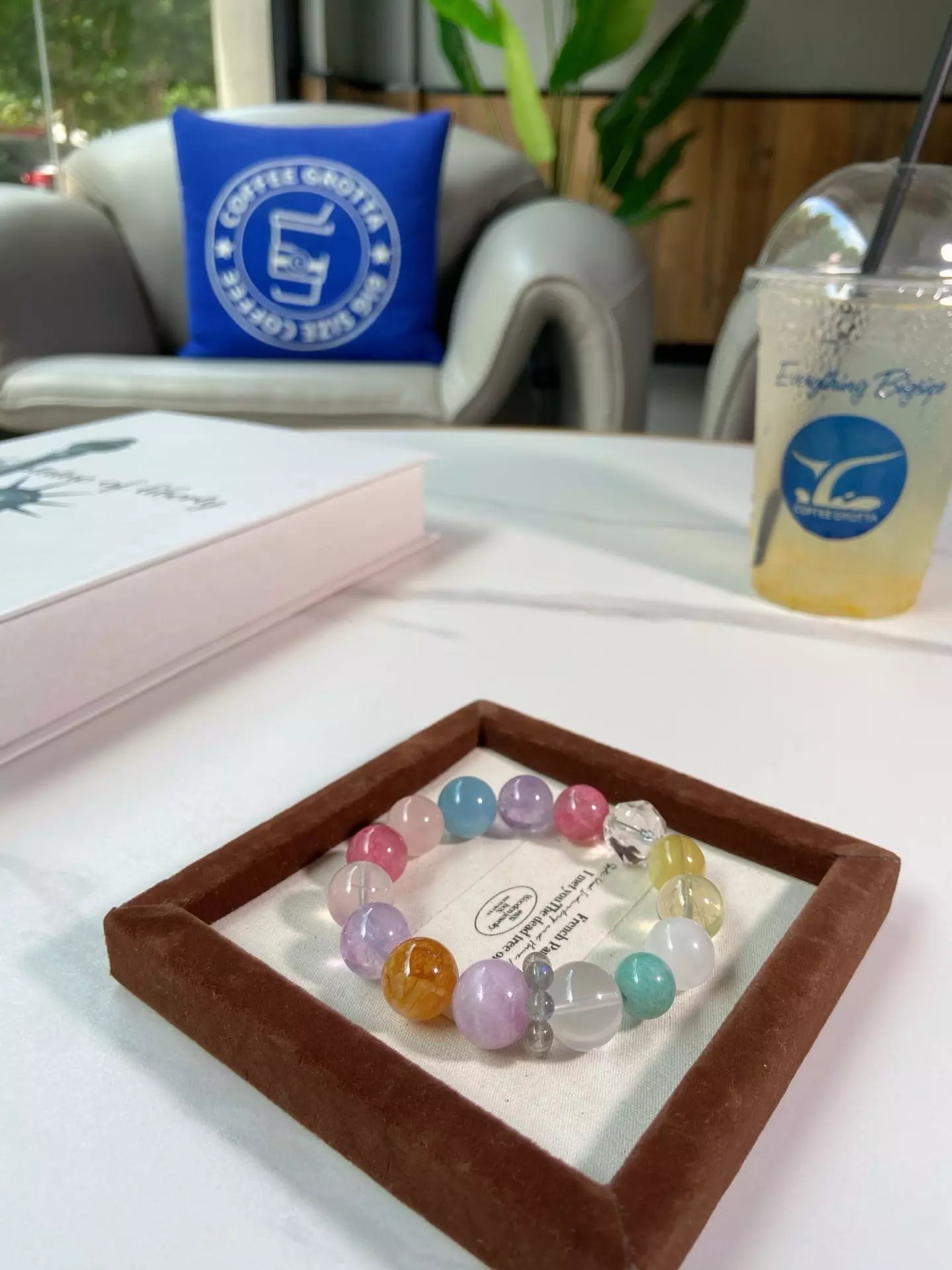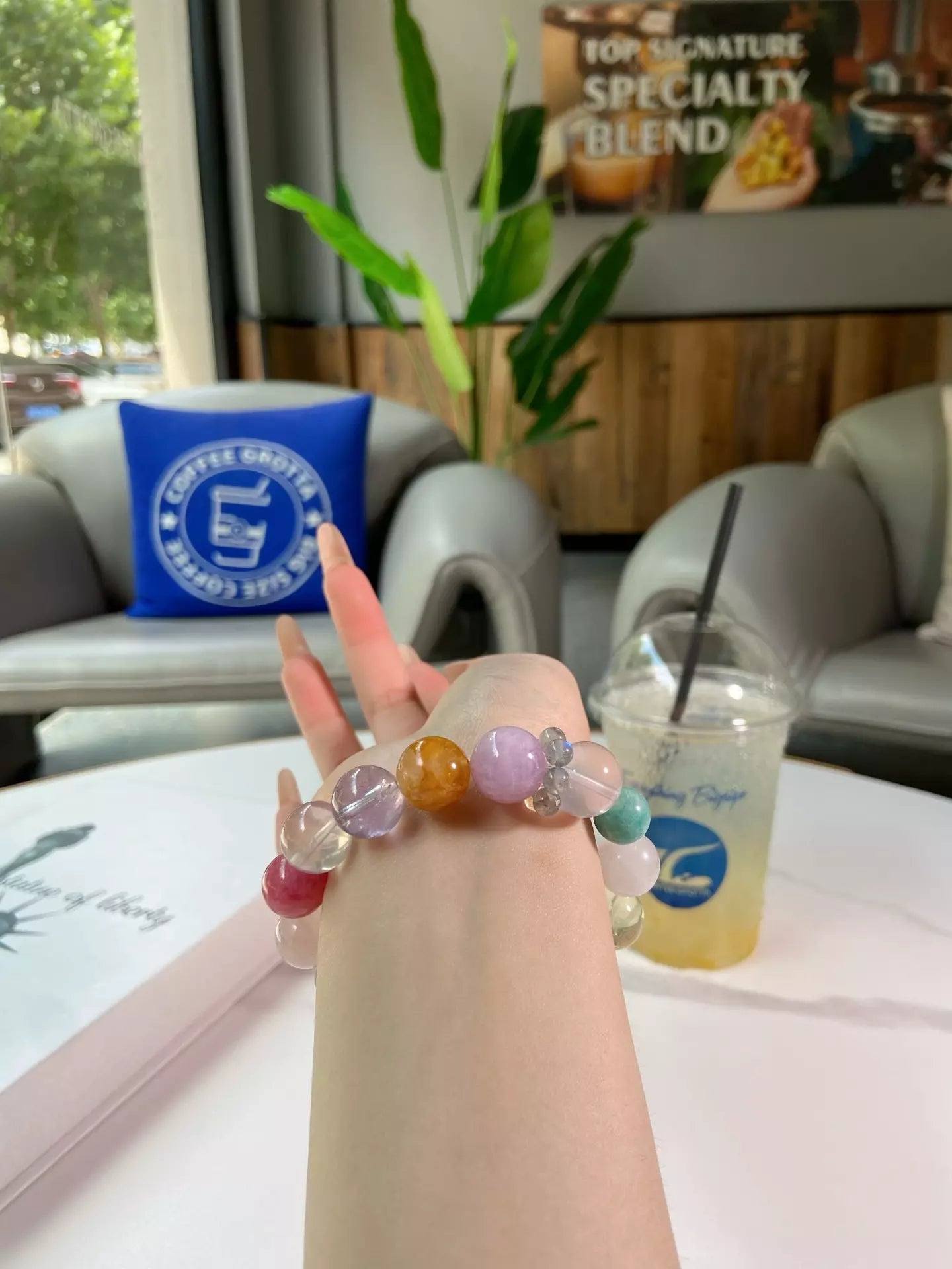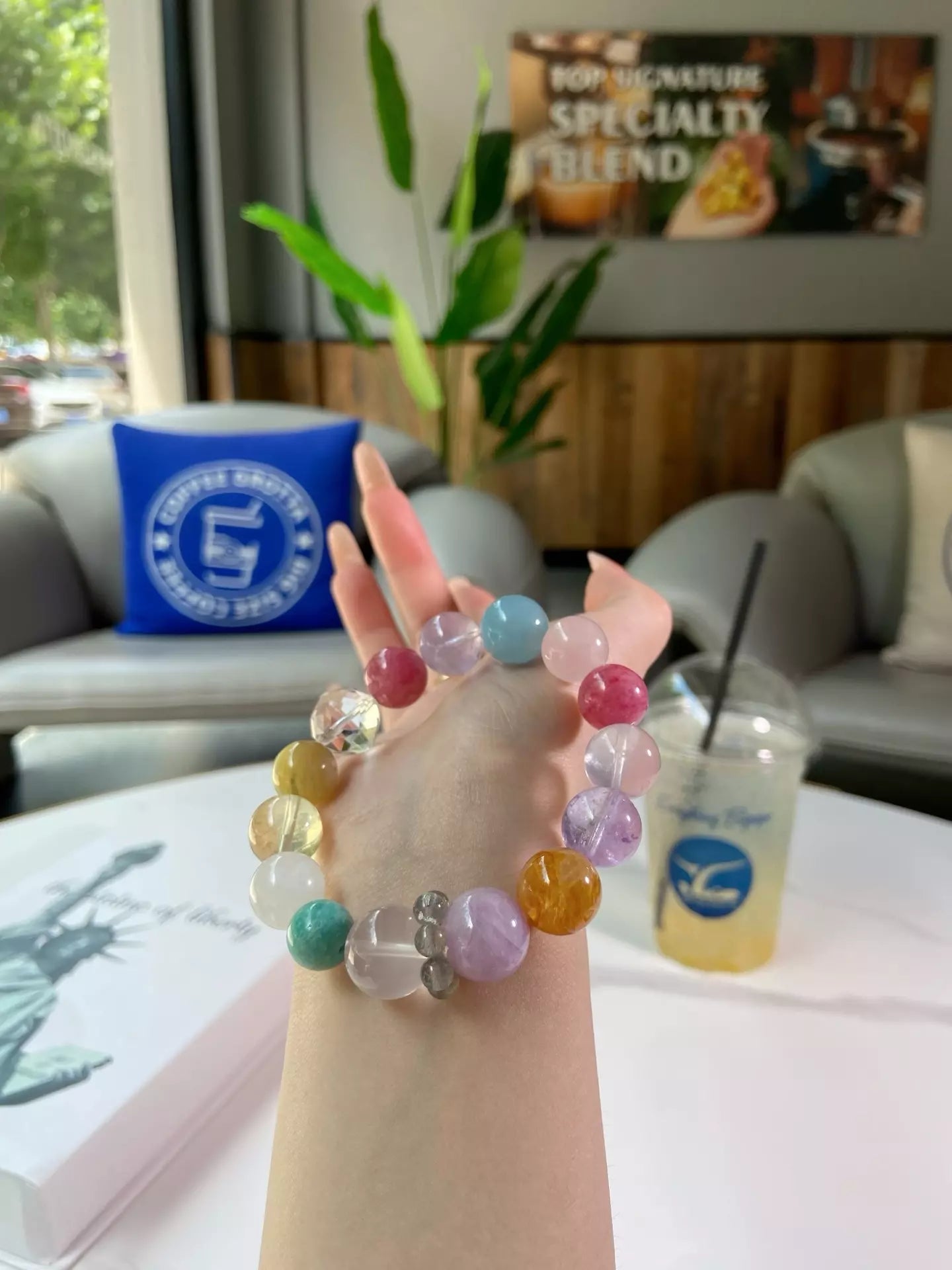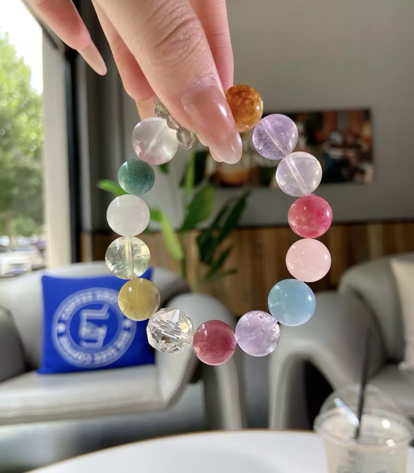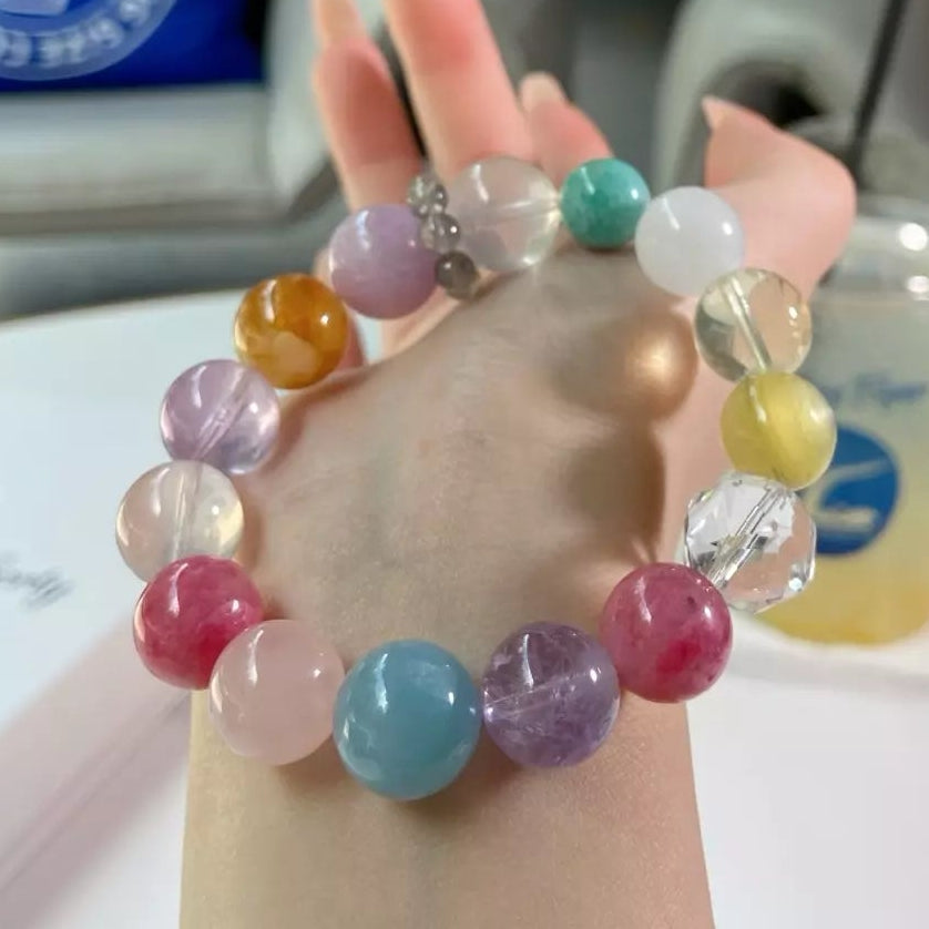 Dive into a magical blend of stardust & sweetness✨🌈! This vibrant multi-crystal piece overflows with blessings—Citrine + Yellow Lepidolite draw good fortune🍀, Rose Quartz + Rhodonite wrap you in love💖, and Aquamarine + Grey Moonstone soothe mood😌. Clear, pink, purple, blue, and yellow hues shimmer like frosted stardust—dreamy, uplifting, and full of charm. Wear daily to amplify joy, balance energy, and radiate a sparkling aura that attracts blessings wherever you go💎🌟!