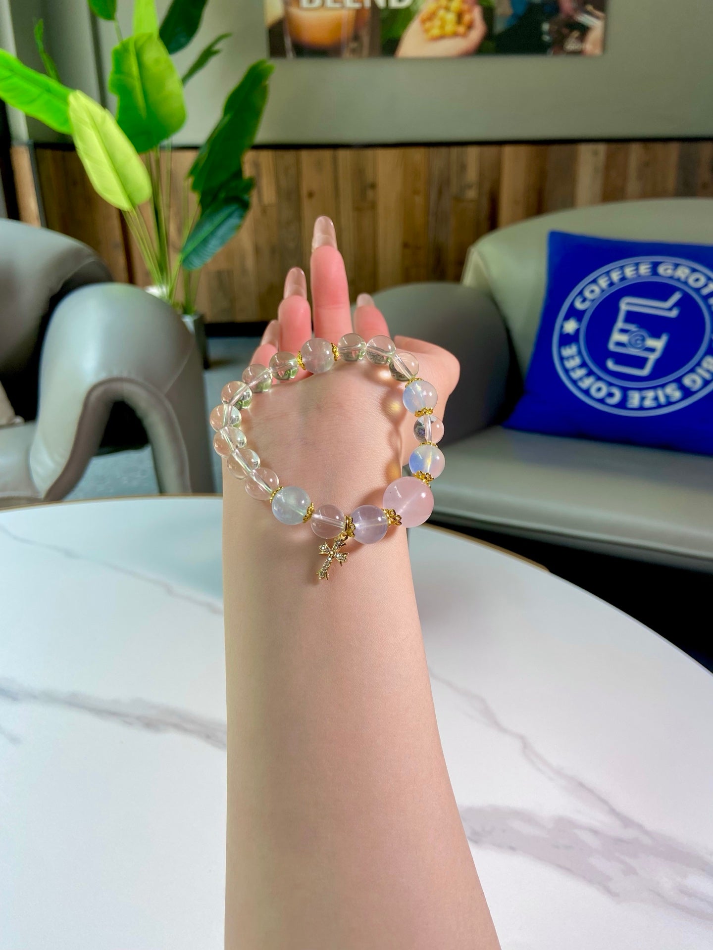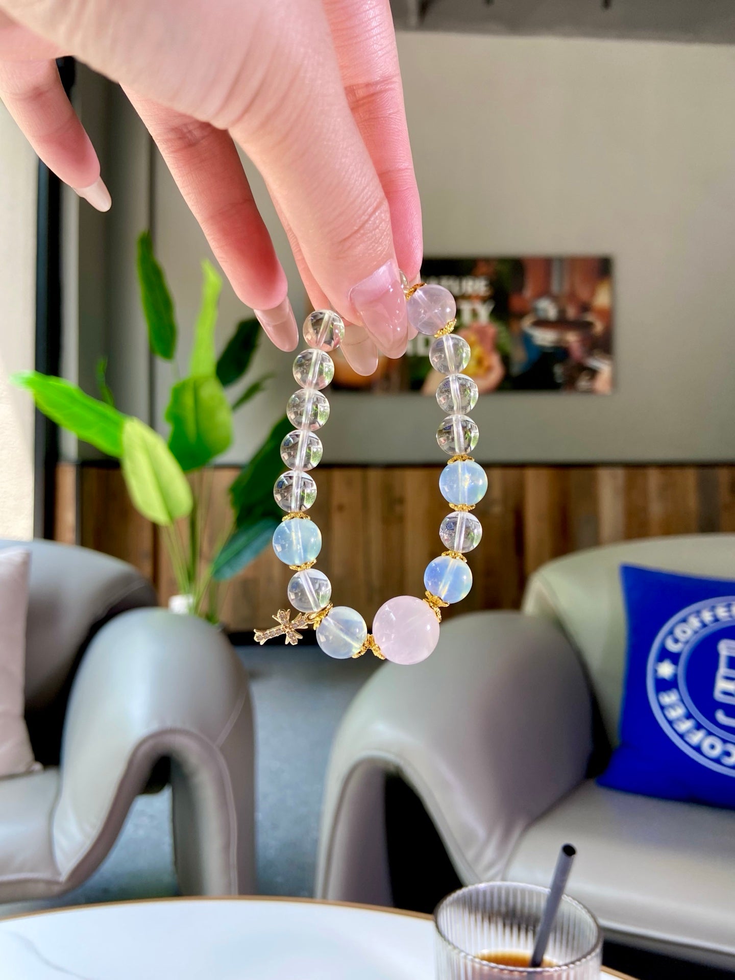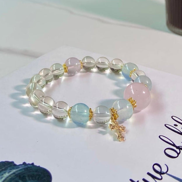 Polished to a luminous sheen, the light pink + light blue + transparent palette shimmers like a coastal sunset, blending warmth and serenity. More than an accessory, it’s a wearable slice of nature’s beauty — perfect for adding ethereal, vibrant charm to any outfit 🌟!