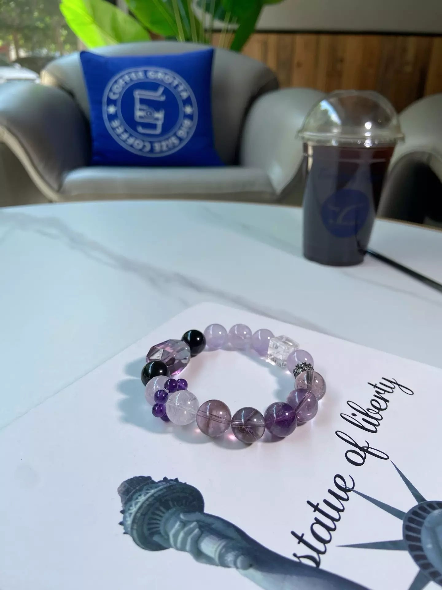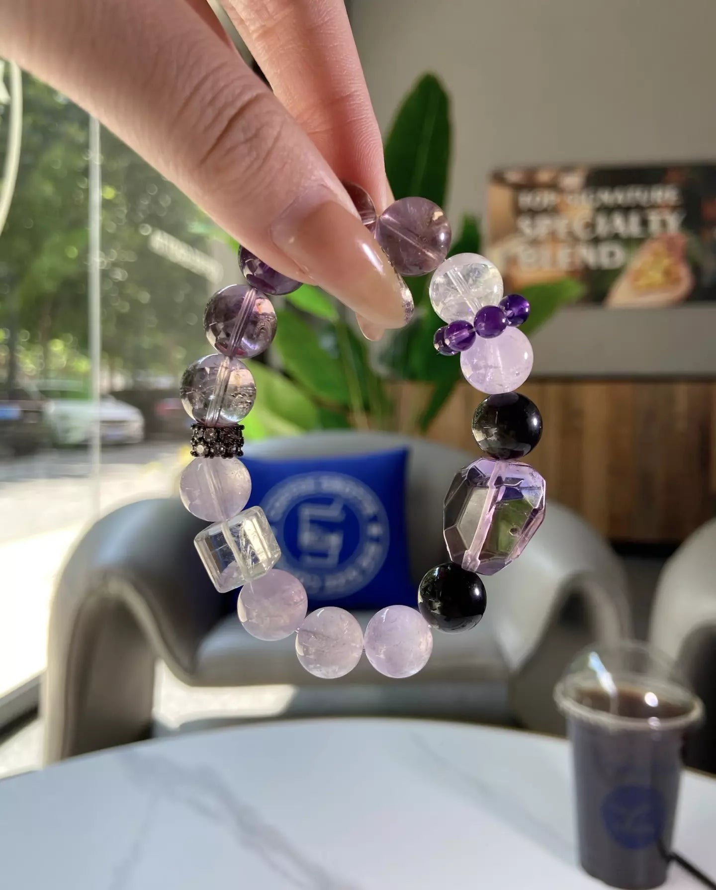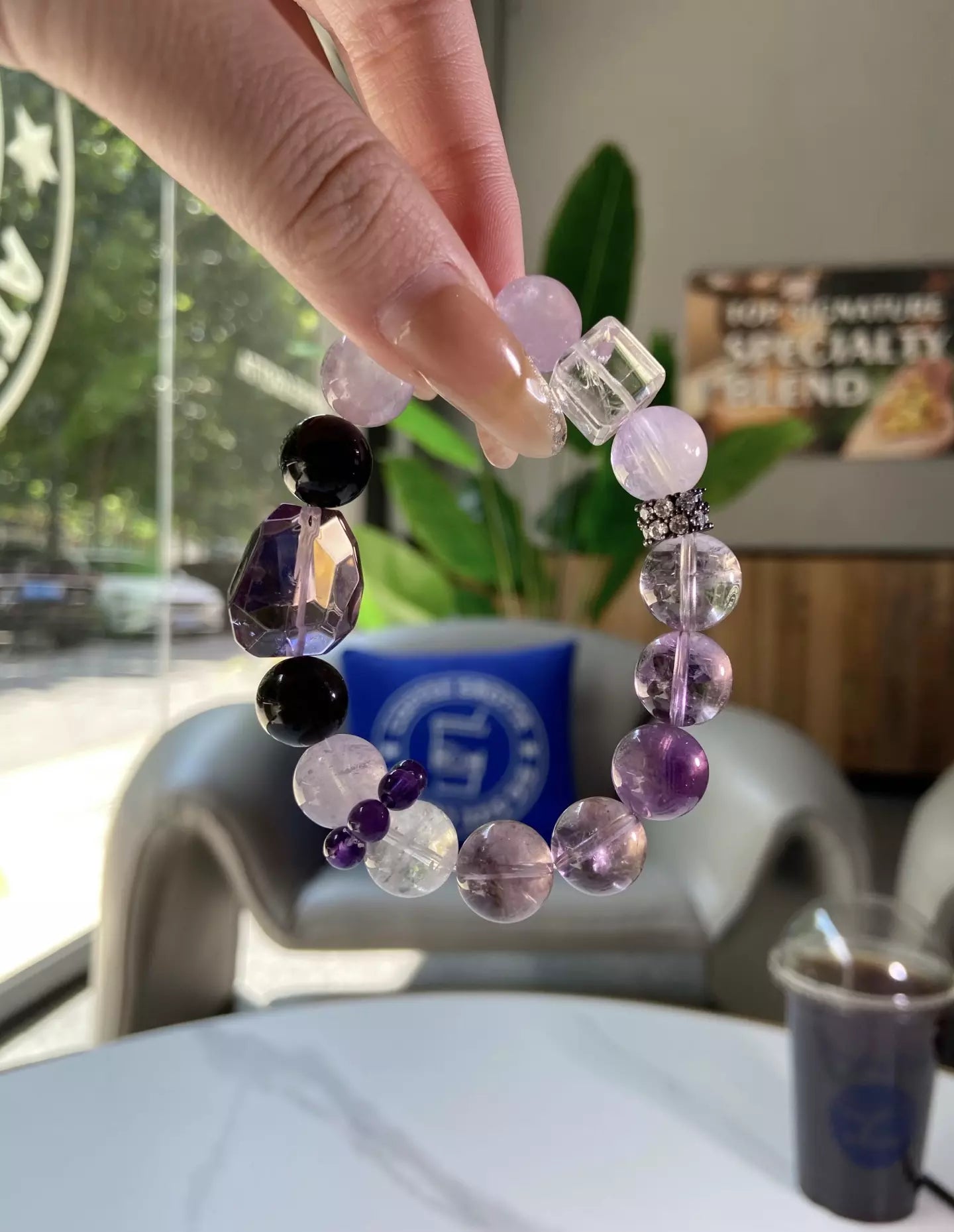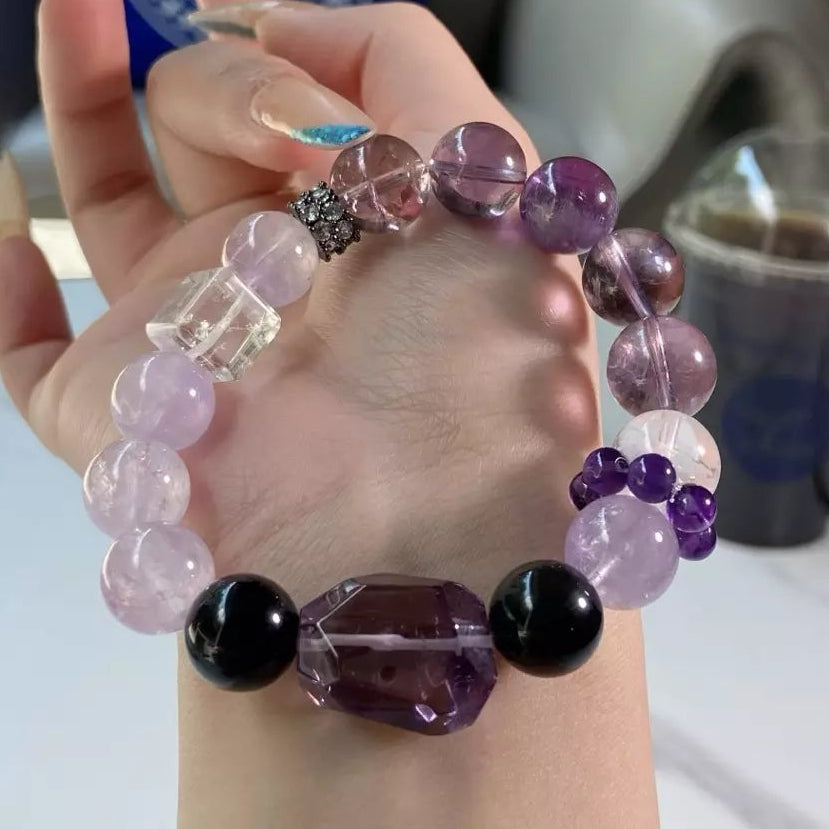 Immerse in the mystical, protective energy of this bracelet💎✨! Amethyst fuels your inner wisdom and courage, while wrapping your precious love in gentle care💞. Silver Obsidian acts as a sturdy shield to ward off negative vibes🛡️, and White Azeztulite purifies your aura for lasting peace. Its sleek purple-black-clear palette glows like a shield under the starry dome—wear daily to embrace serenity, bravery and sweet blessings💫!