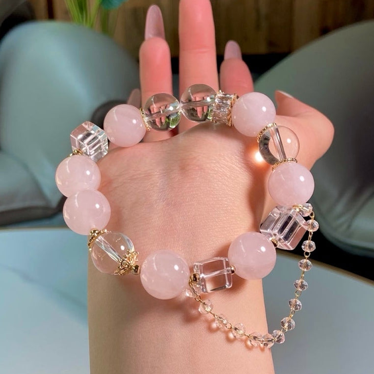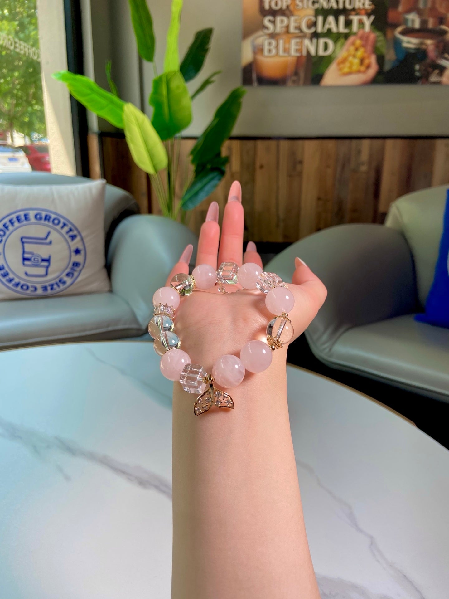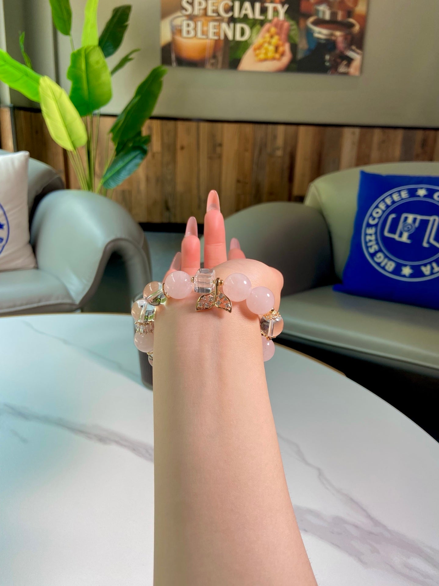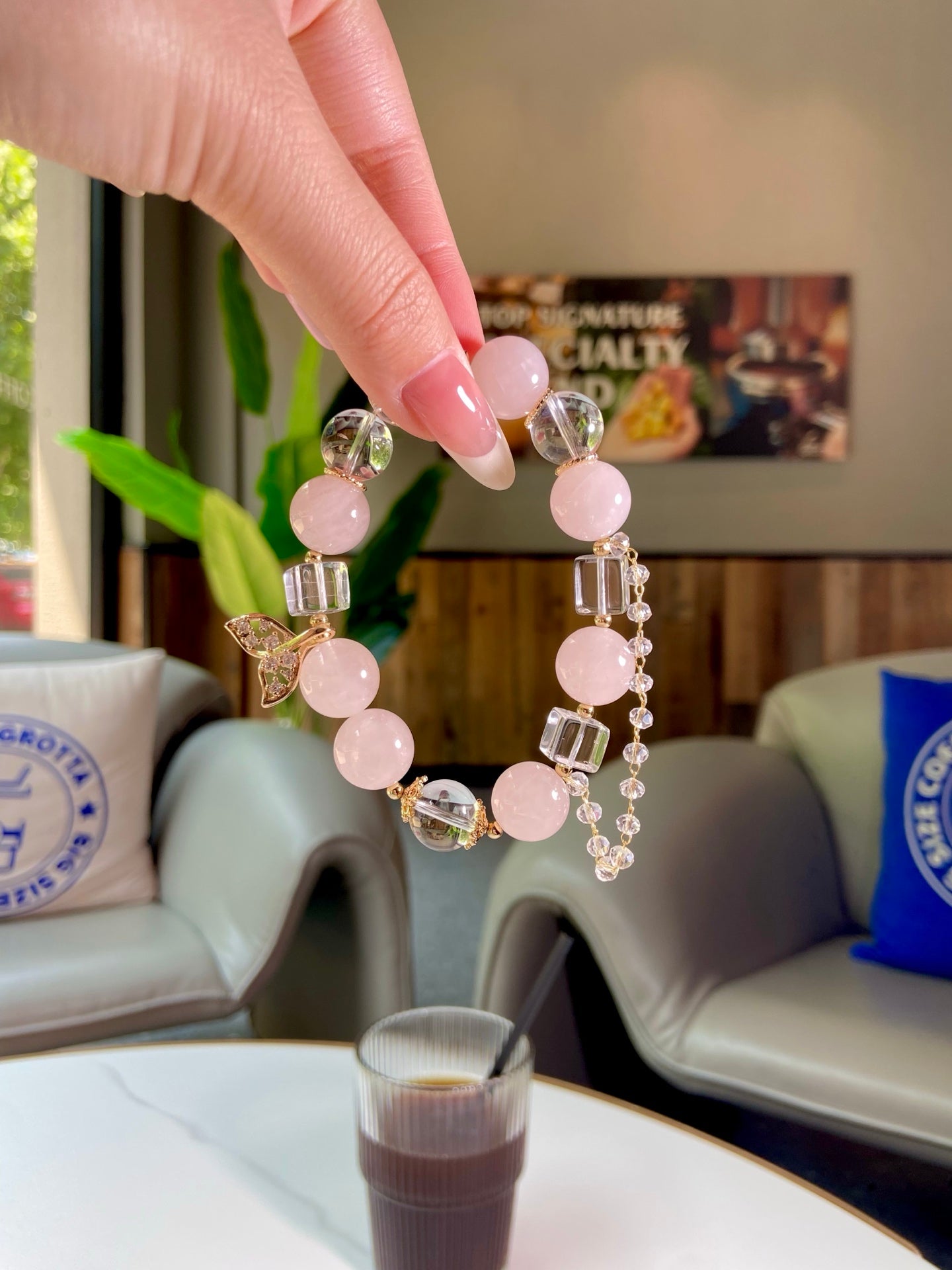 This exquisite piece pairs soft rose quartz with luminous clear quartz, embodying perfect dual harmony! Let rose quartz infuse your heart with warm loving vibes, foster sweet intimacy and guide you to embrace yourself fully. Clear quartz sharpens your focus, boosts memory, sweeps away negative energy and steadies fluctuating moods. With dreamy pink and crystal-clear hues, it’s a wearable symbol of balance that brings peace and warmth to every moment!
